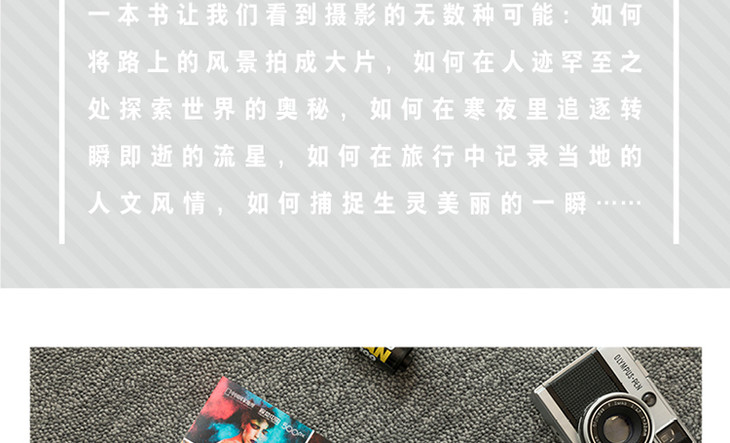 ² 一本书让我们看到摄影的无数种可能性:如何将路上的风景拍成大片,如何在人迹罕至之处探索世界的奥秘,如何在寒夜里追逐转瞬即逝的流星,如何在旅行中记录当地的人文风情,如何捕捉生灵极美的一瞬……