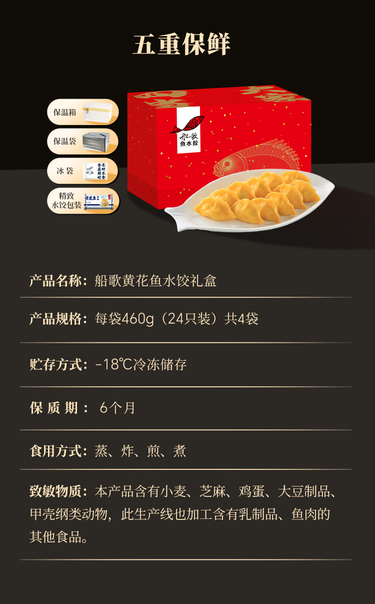 [家庭装礼盒]黄花鱼口味水饺礼盒-24颗每袋/460g*4【船歌鱼水饺】