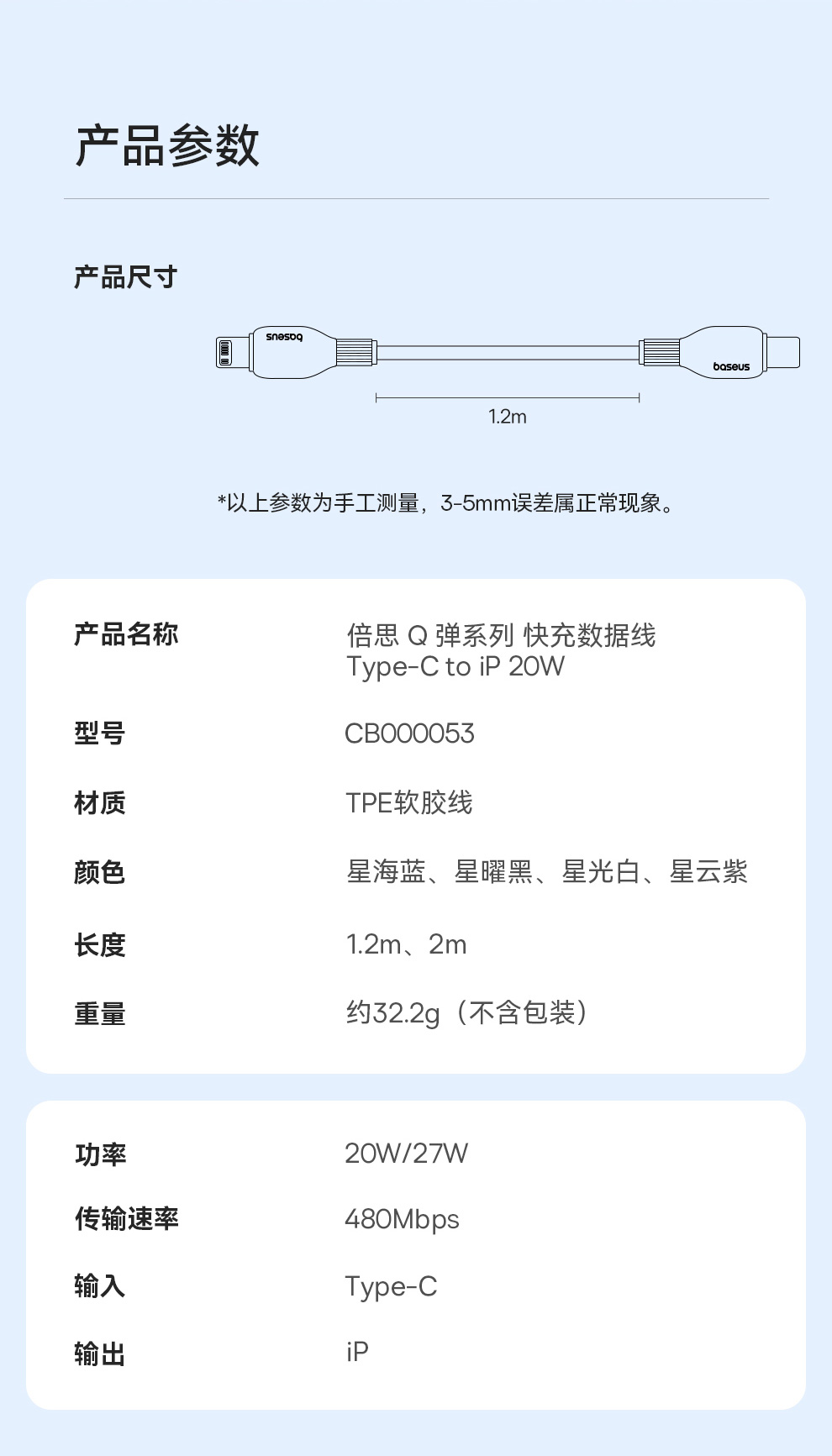 倍思 优胜系列快充数据线USB to Type-C 66W