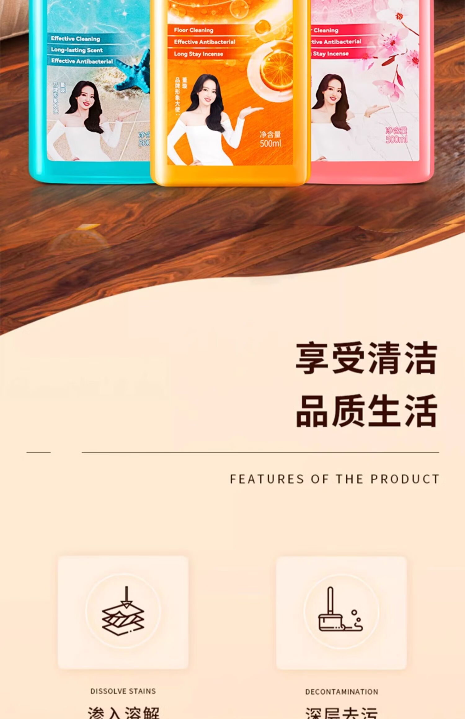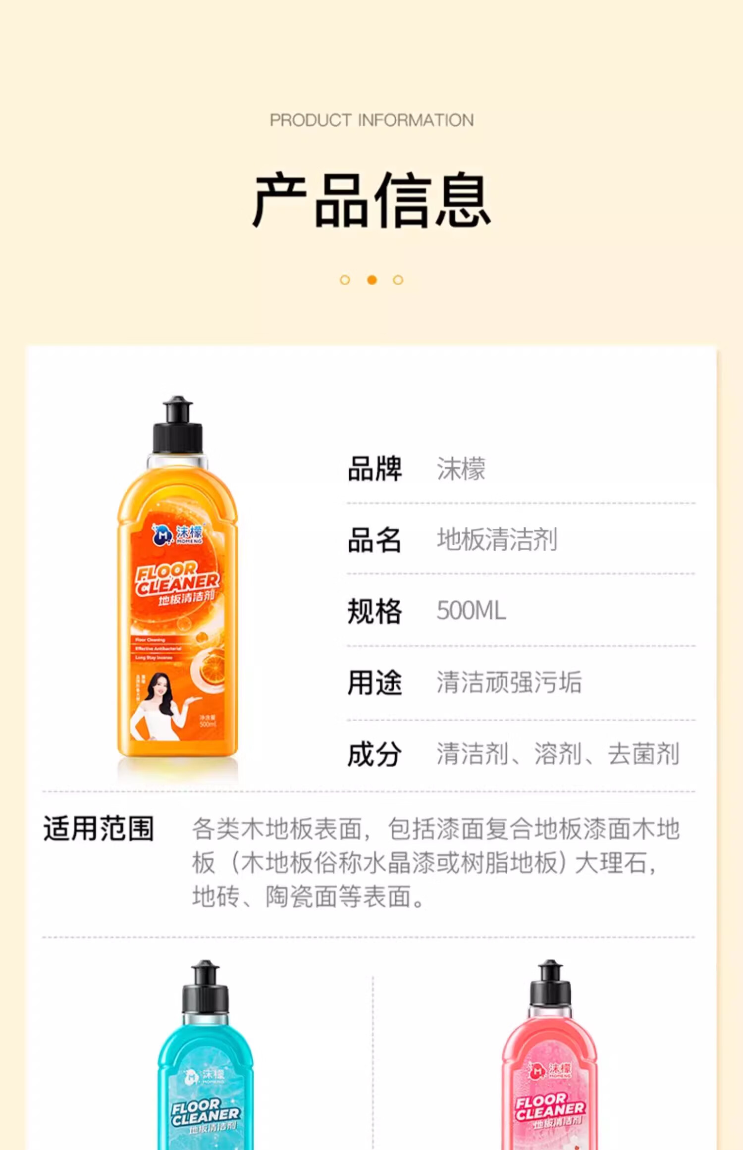 【积分兑换】沫檬 地板清洁剂500ml养护瓷砖清洗剂强力杀菌木地板大理石拖地液