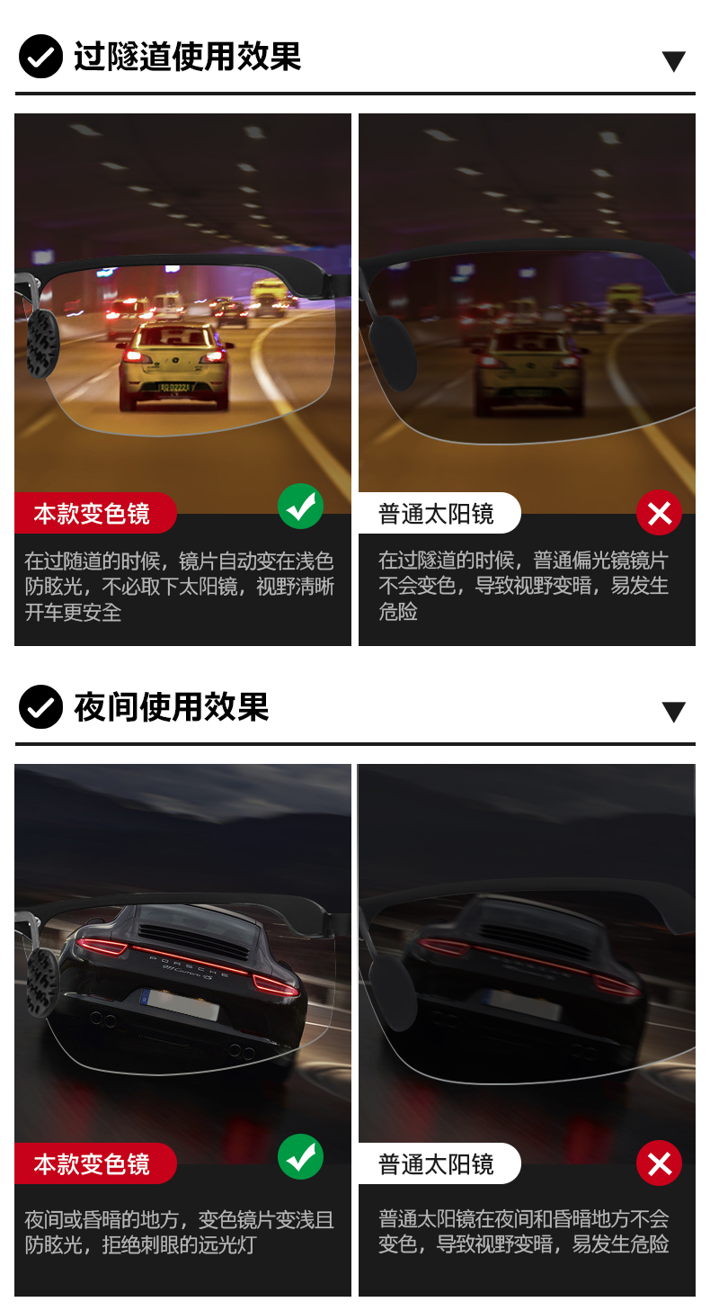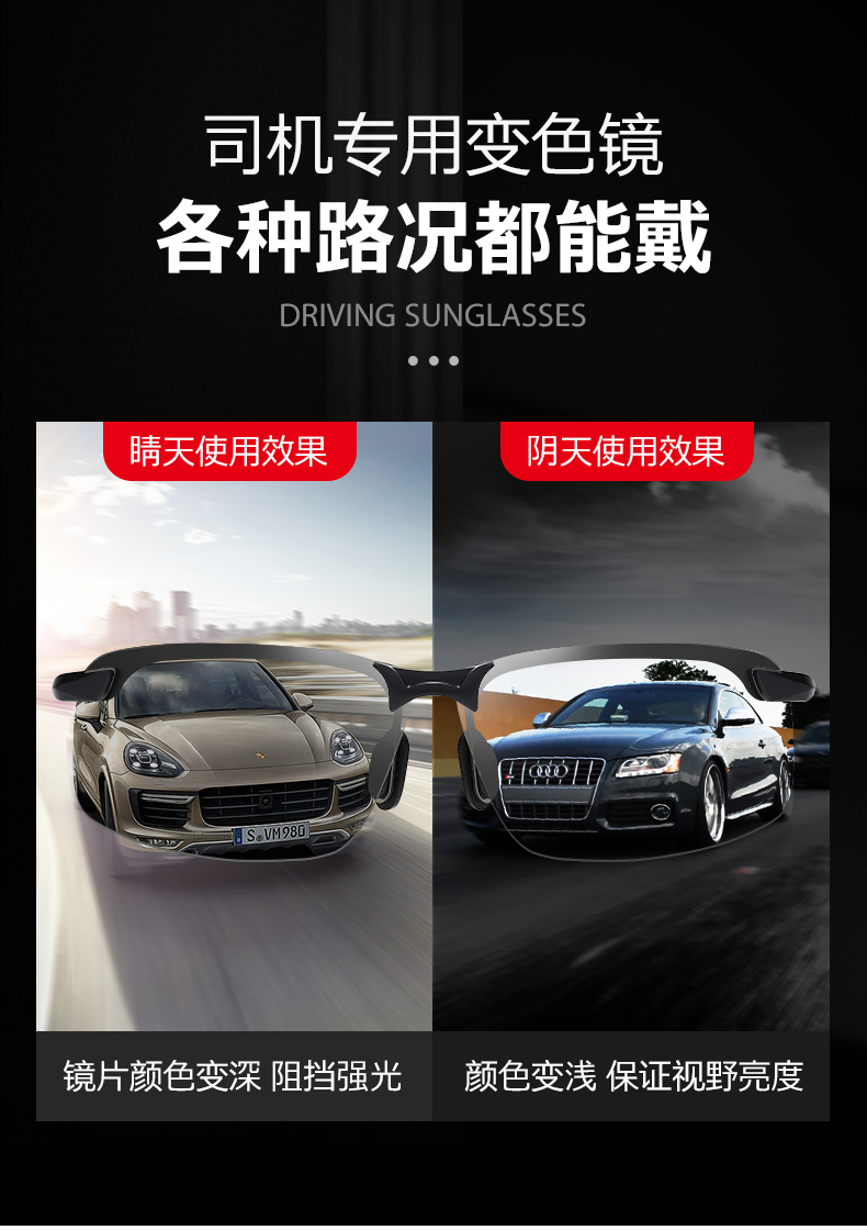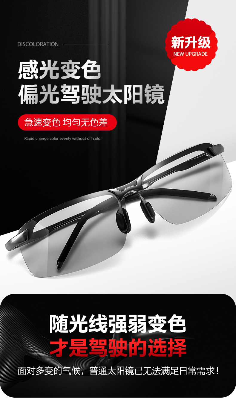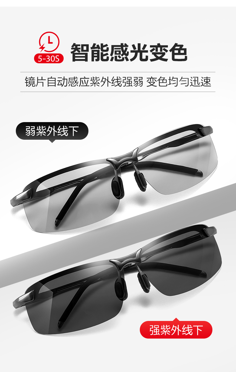 【日夜两用 智能变色】新升级智能感光变色太阳镜 男士开车专用眼镜 户外出行必备