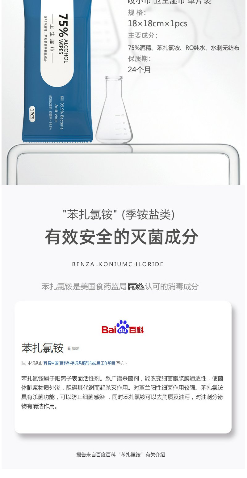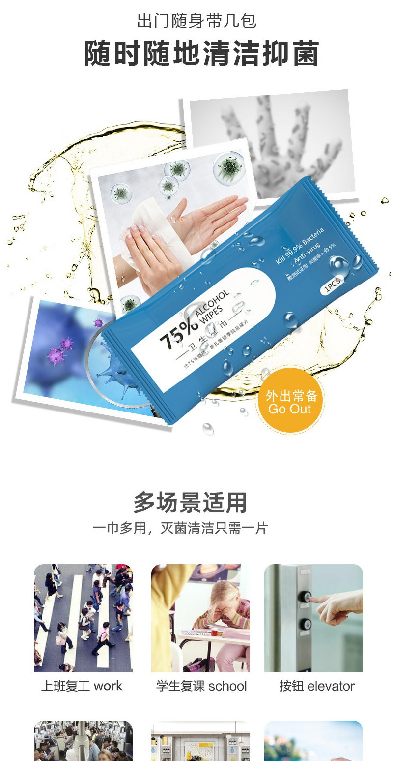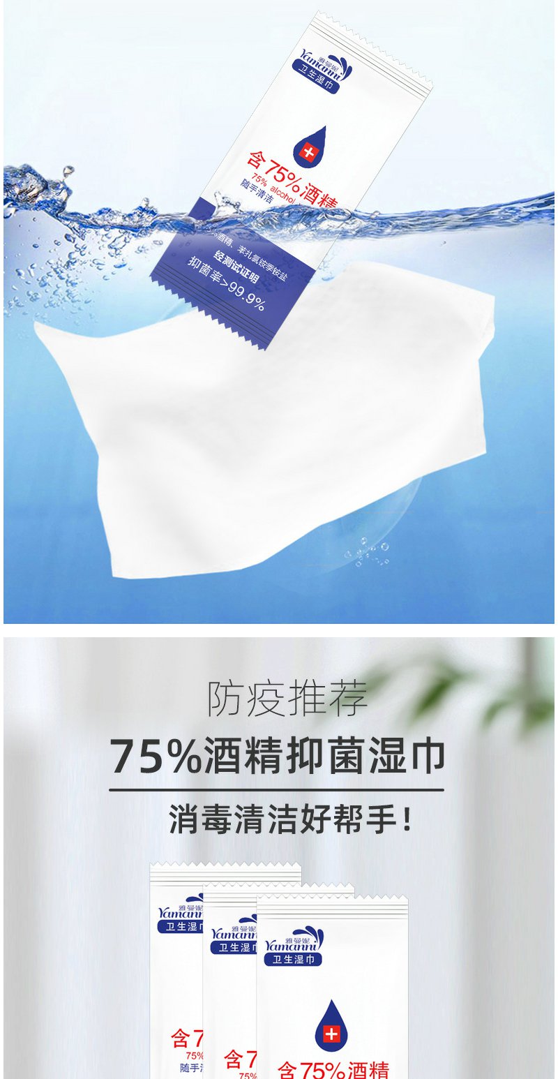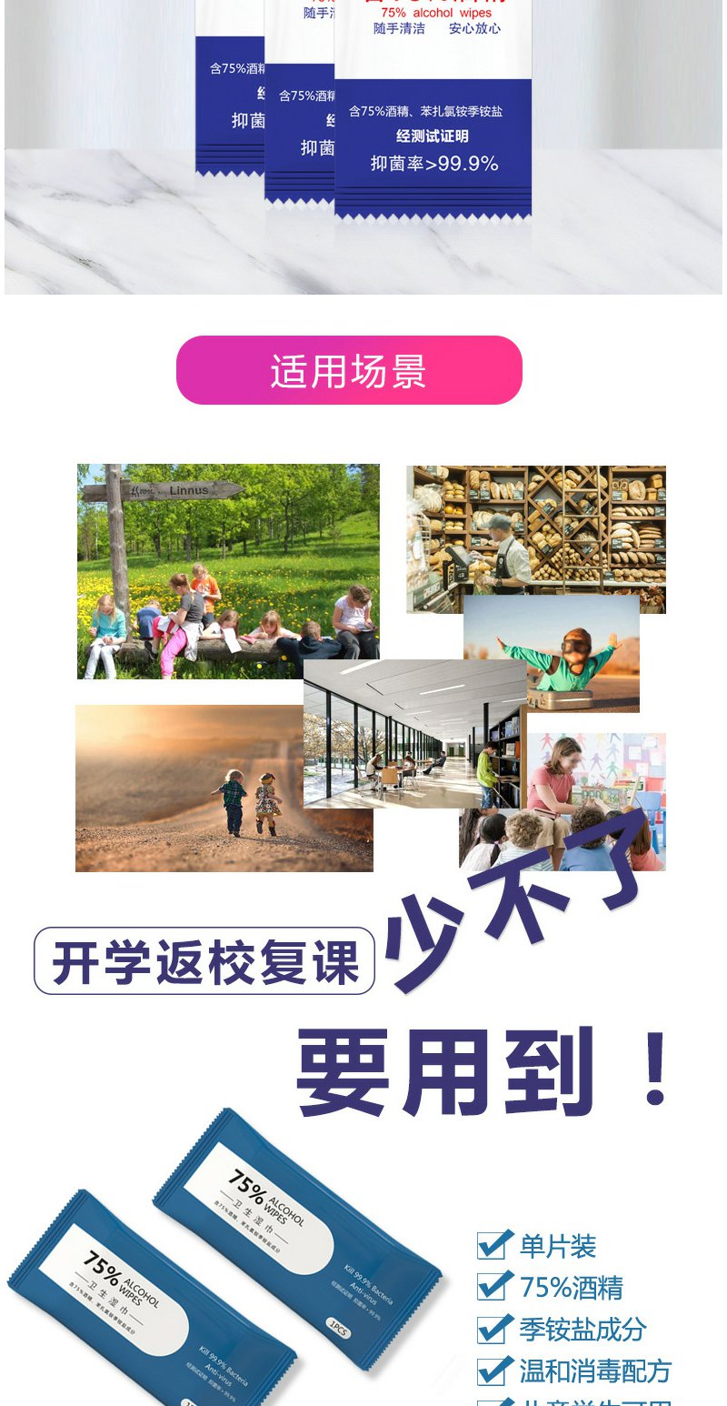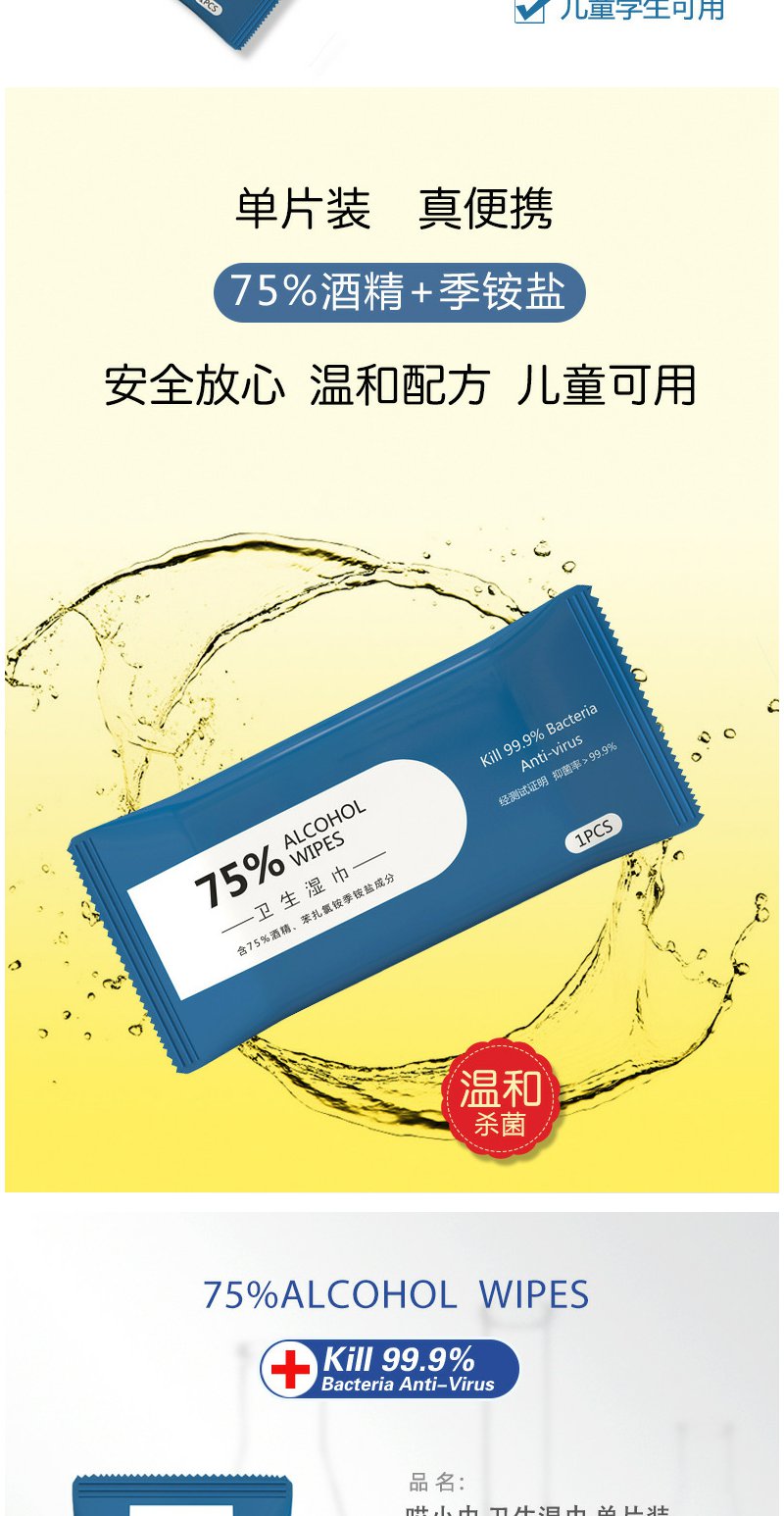 哎小巾 75%酒精湿巾儿童学生独立包装乙醇湿巾消毒单片装