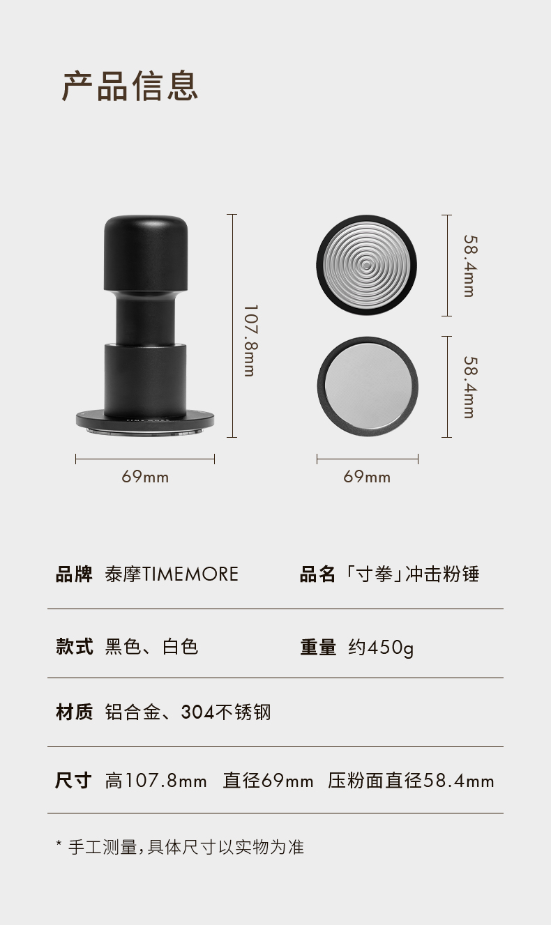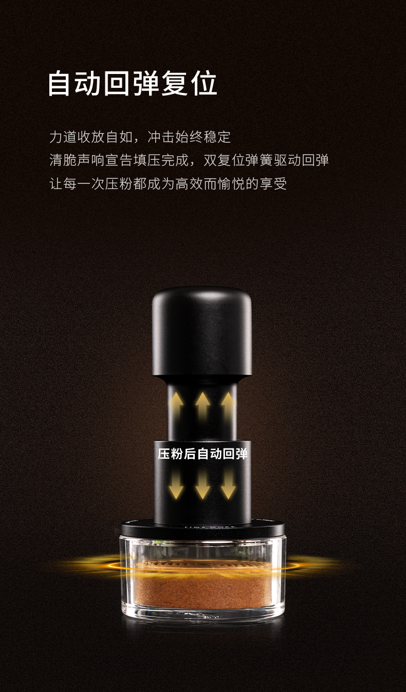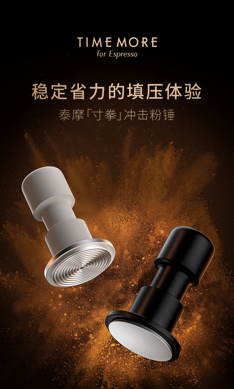 【新品】泰摩 寸拳冲击粉锤意式咖啡机手压粉锤58.4mm平底/螺纹底压粉器 省力回弹