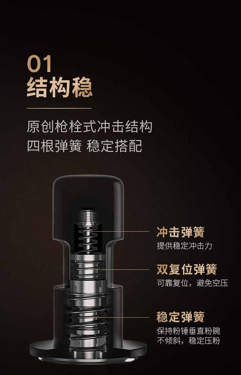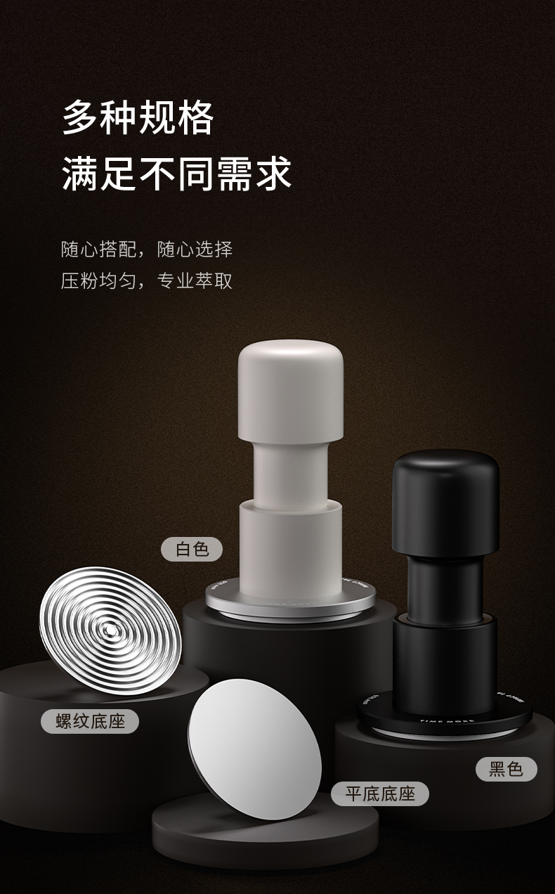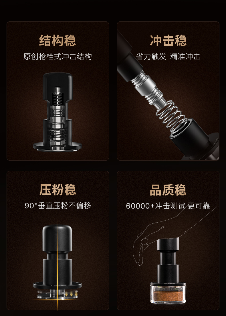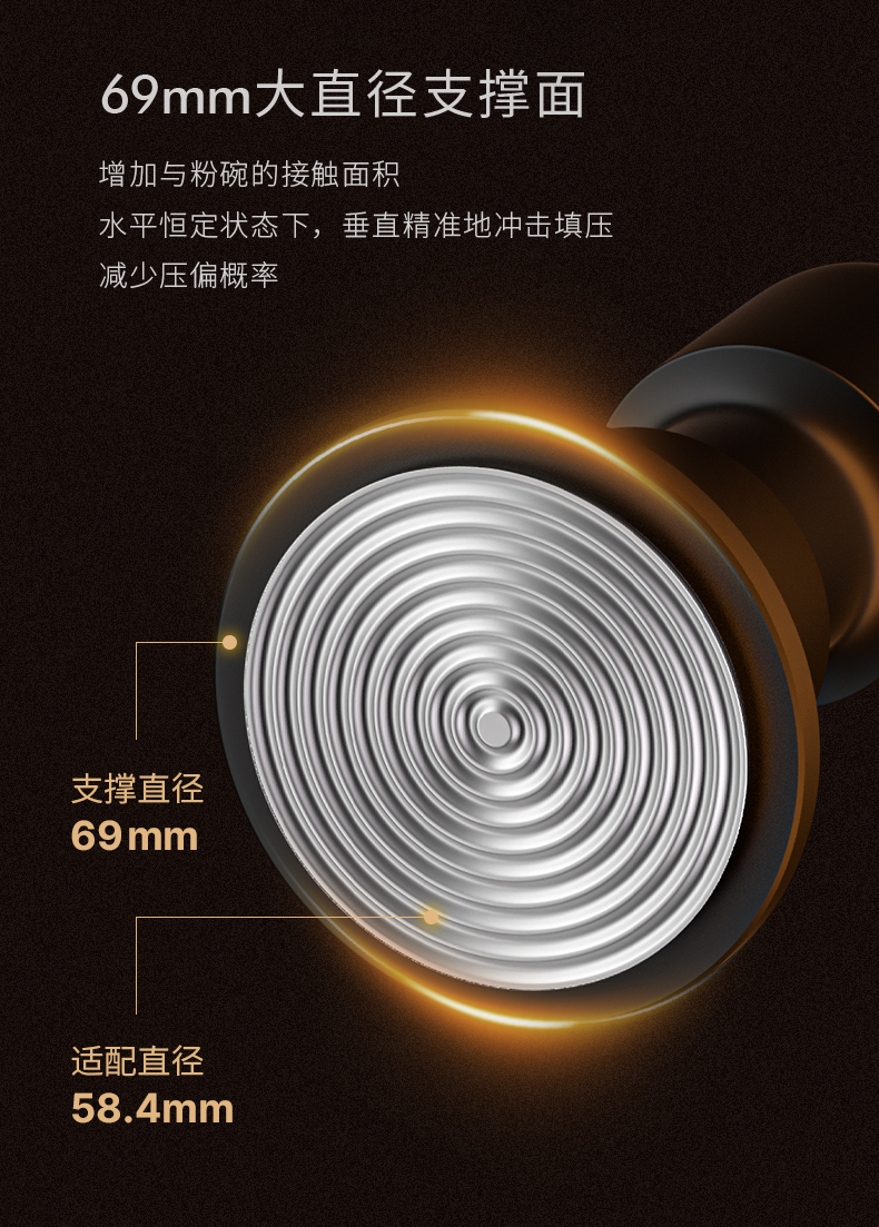 【新品】泰摩 寸拳冲击粉锤意式咖啡机手压粉锤58.4mm平底/螺纹底压粉器 省力回弹