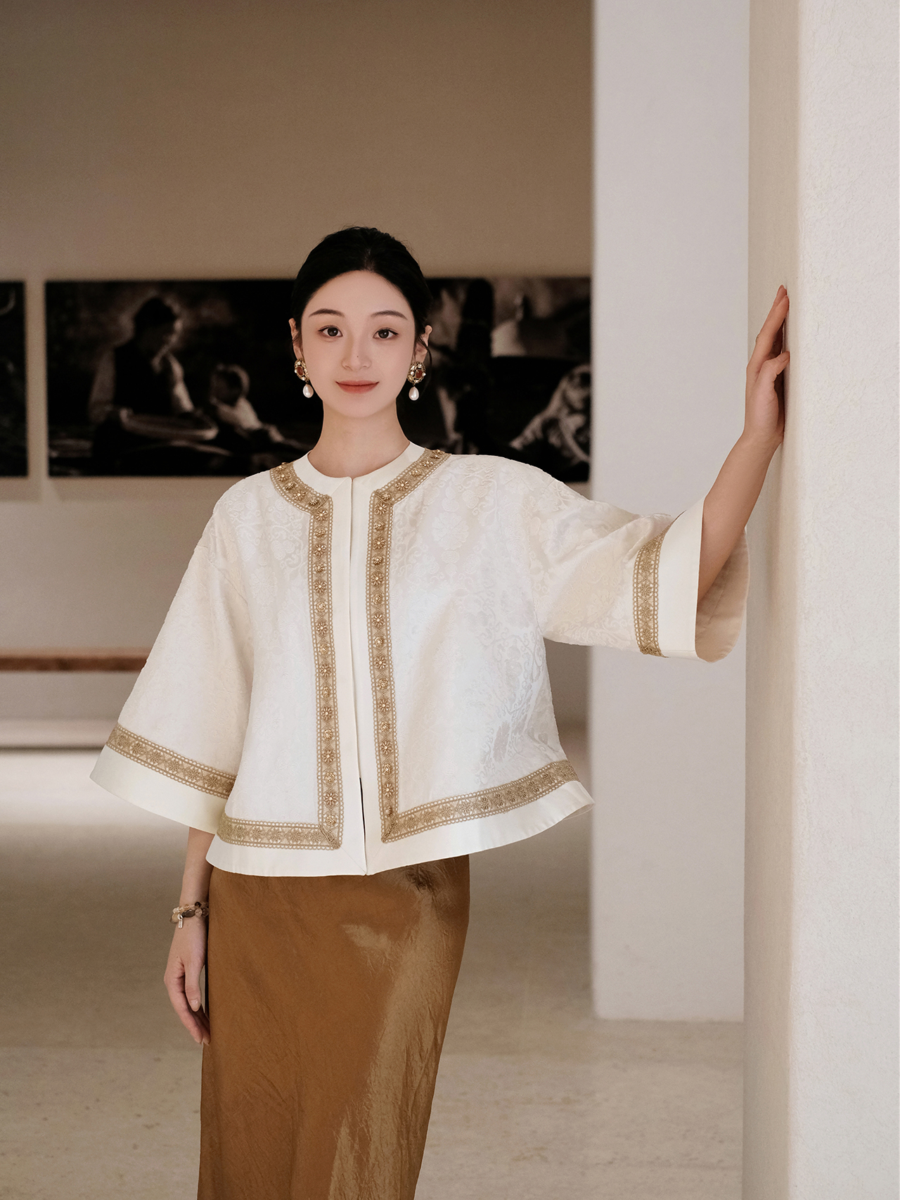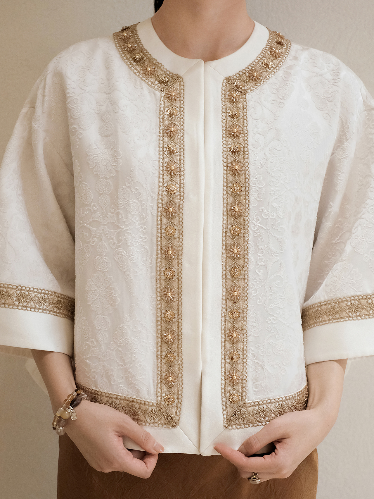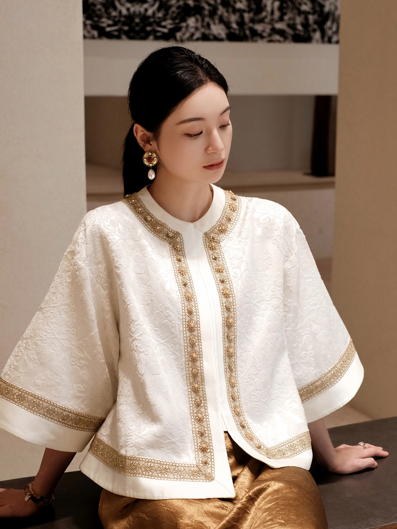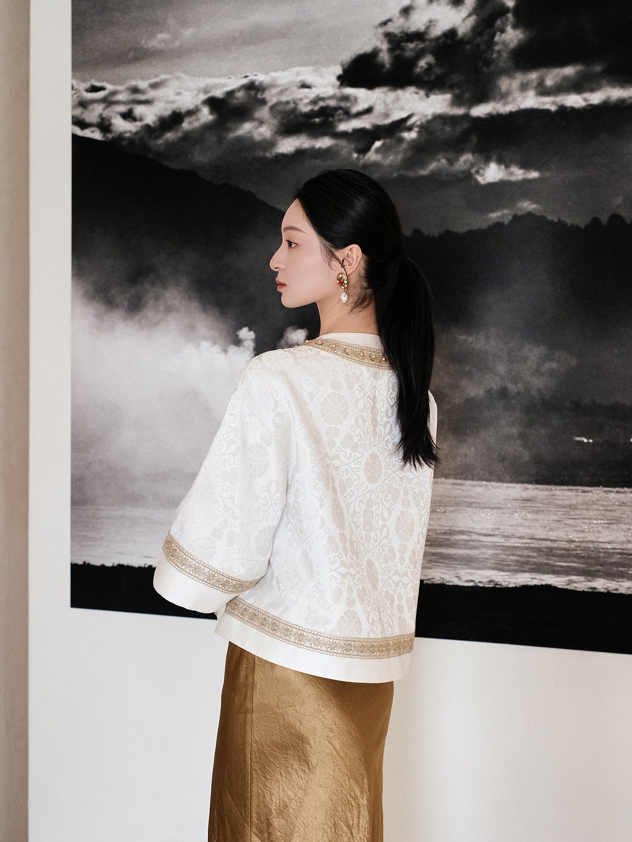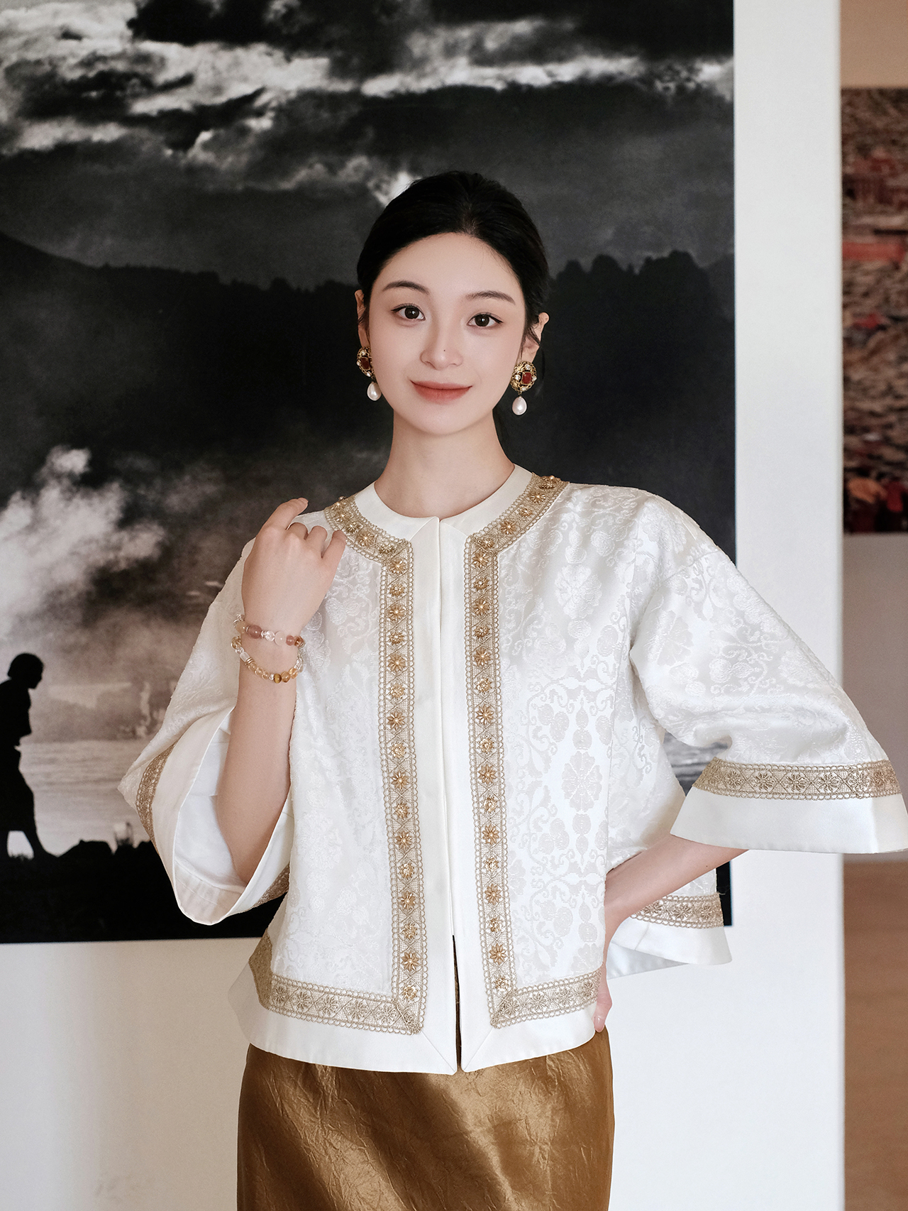 盛唐牡丹 | 时髦玉扣花香引蝶对襟女衬衫