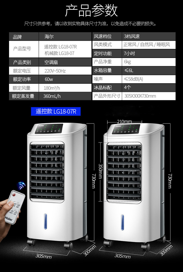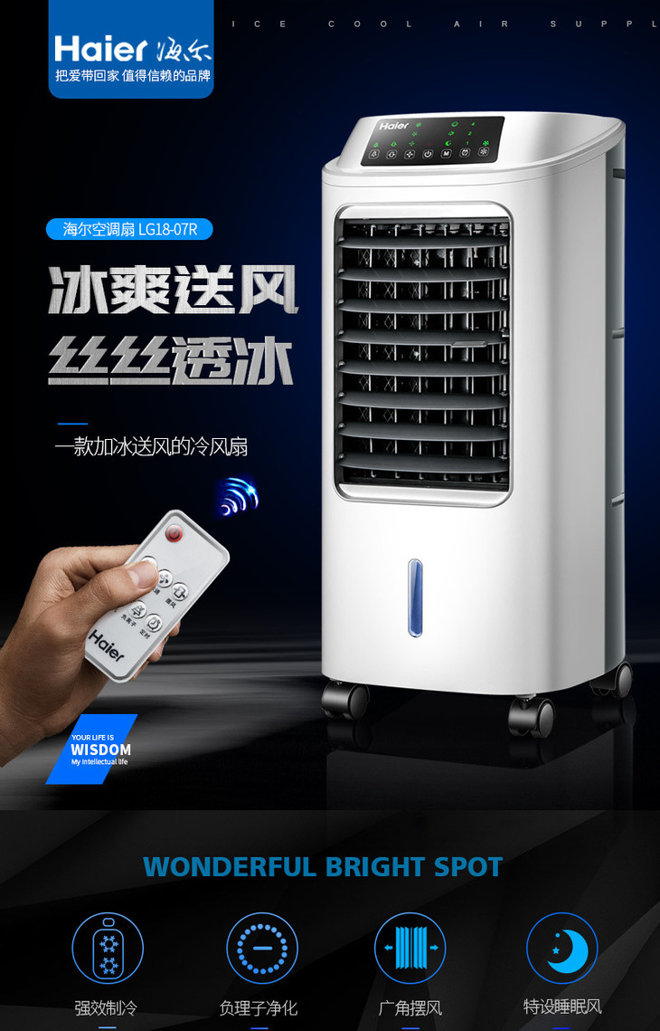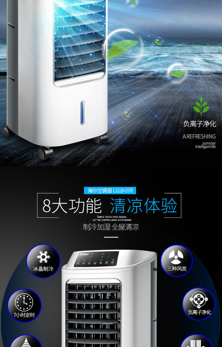 【家用电器】海尔调扇*海尔空调扇制冷风扇加湿单冷型水冷风机冷气扇家用制冷器空调机械