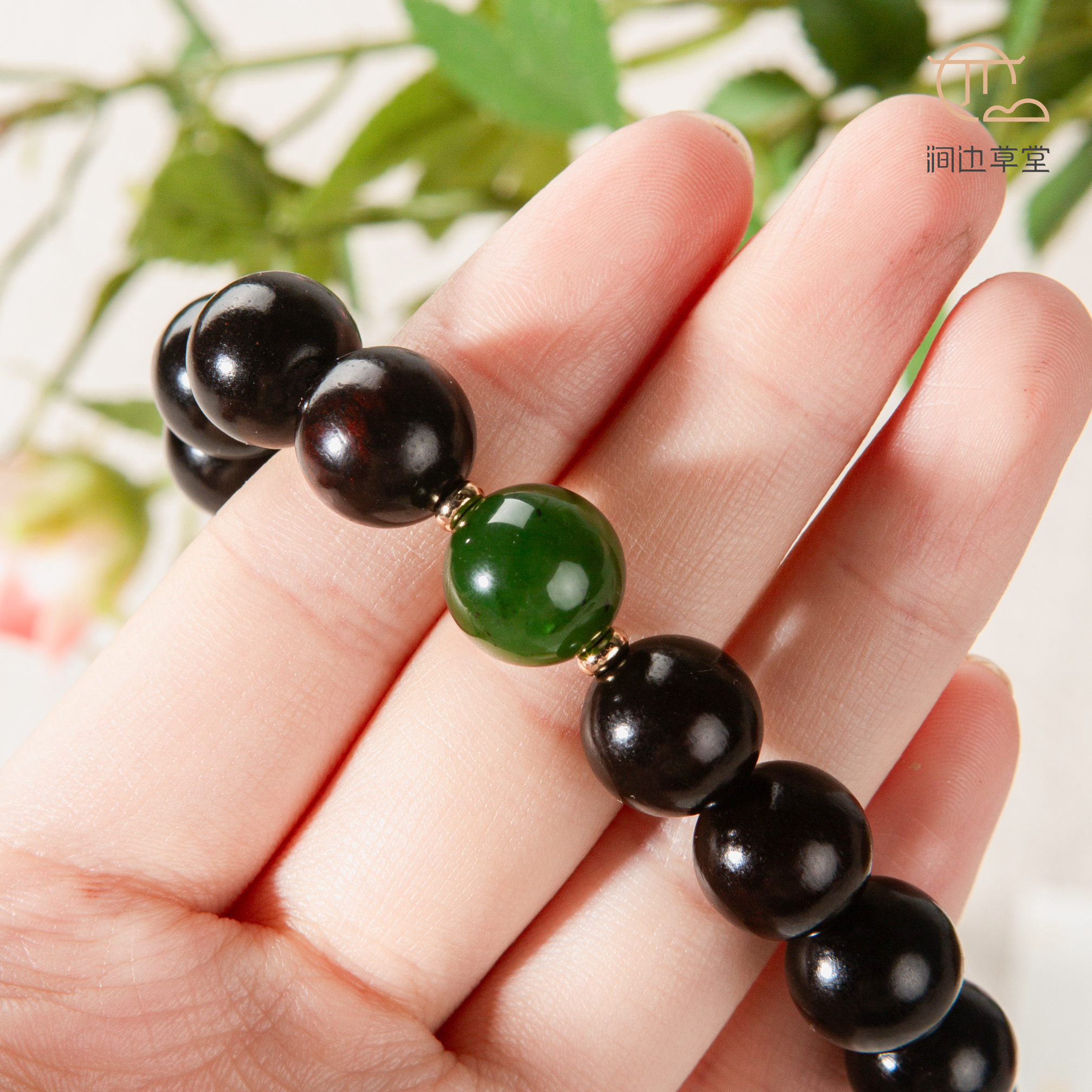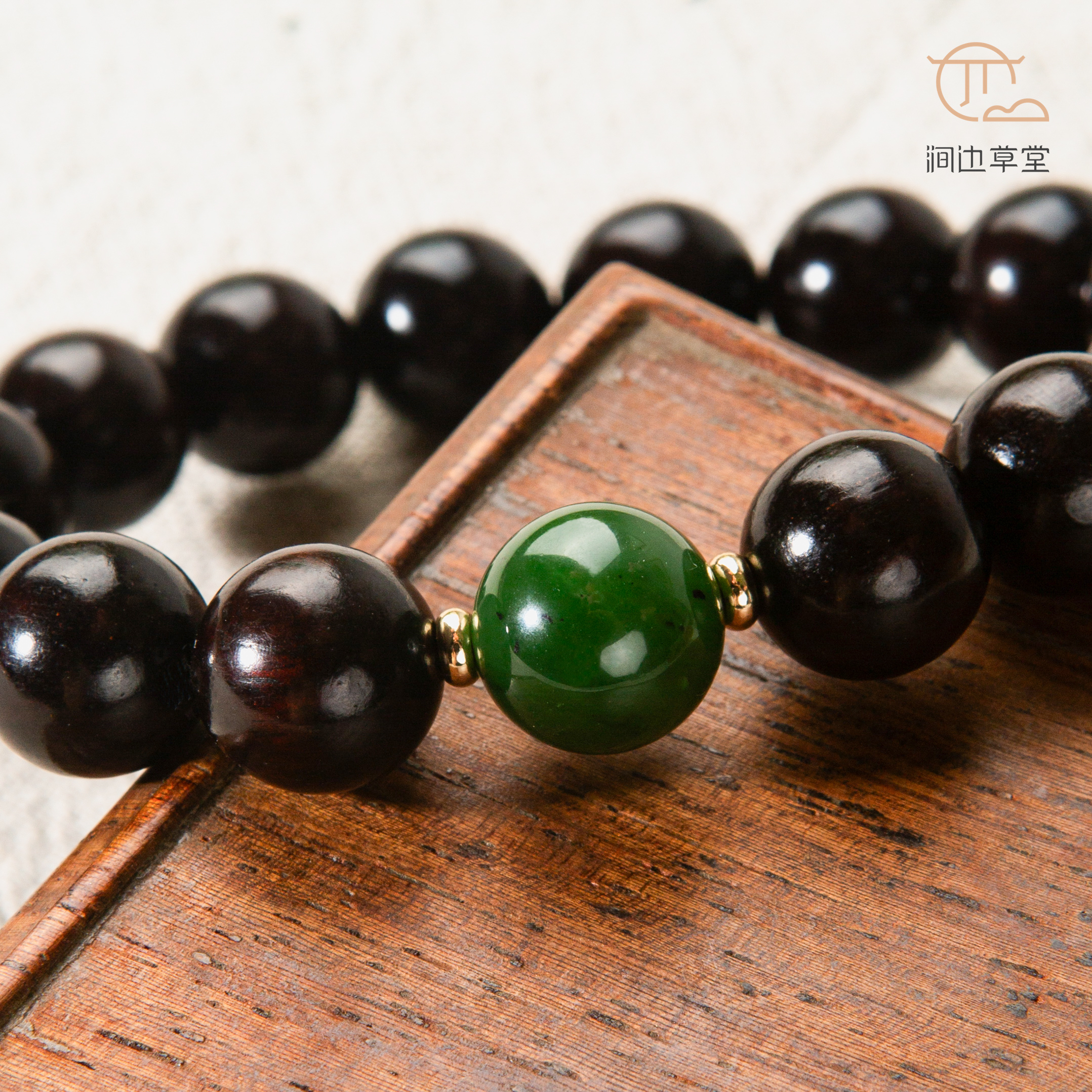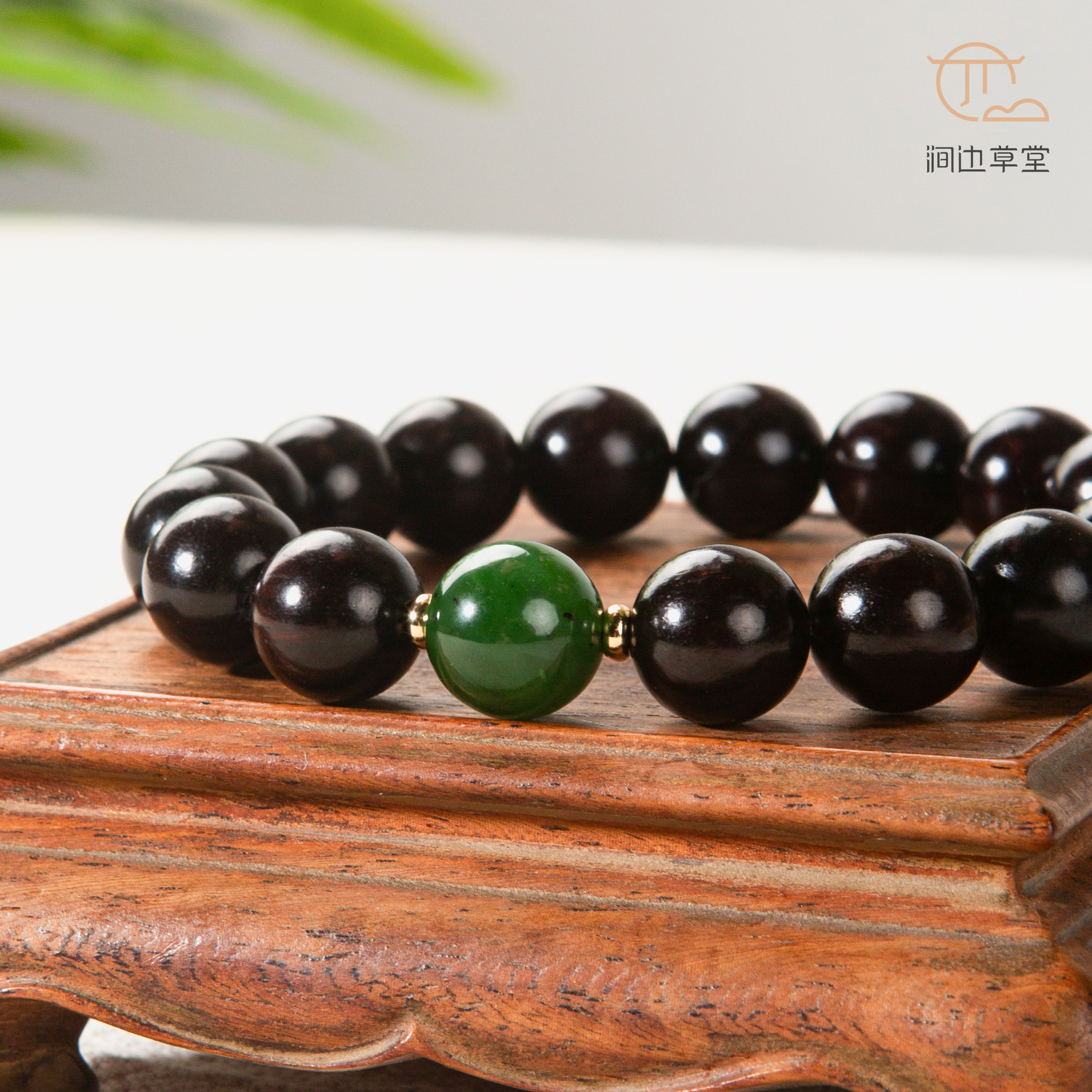 碧玉顶珠清代檀香紫檀家具老料制手串直径1.2cm