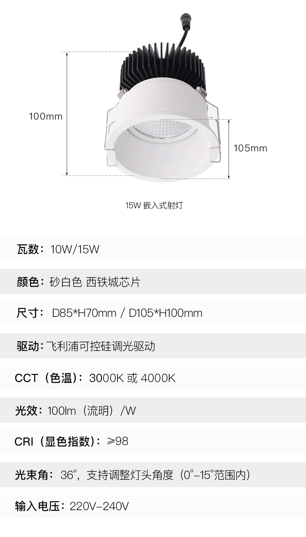 光束角:36°,支持调整灯头角度(0-15°范围内)