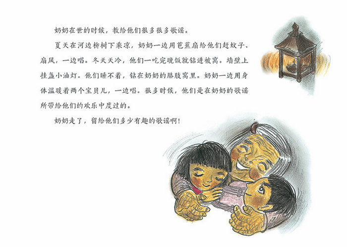 生活多明媚,多甜美可爱啊,有奶奶的日子阳光灿烂,绿柳依依,河水潺潺,到处是歌,到处都是奶奶的歌谣: