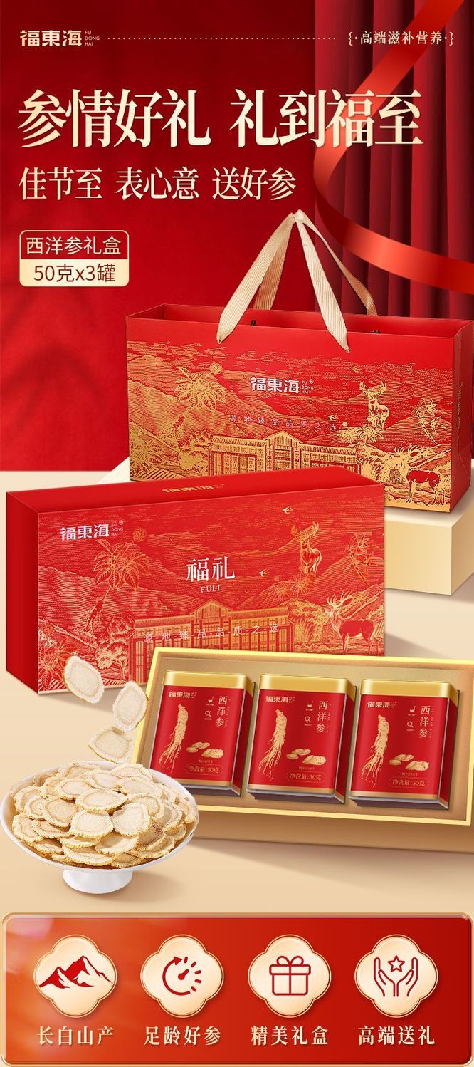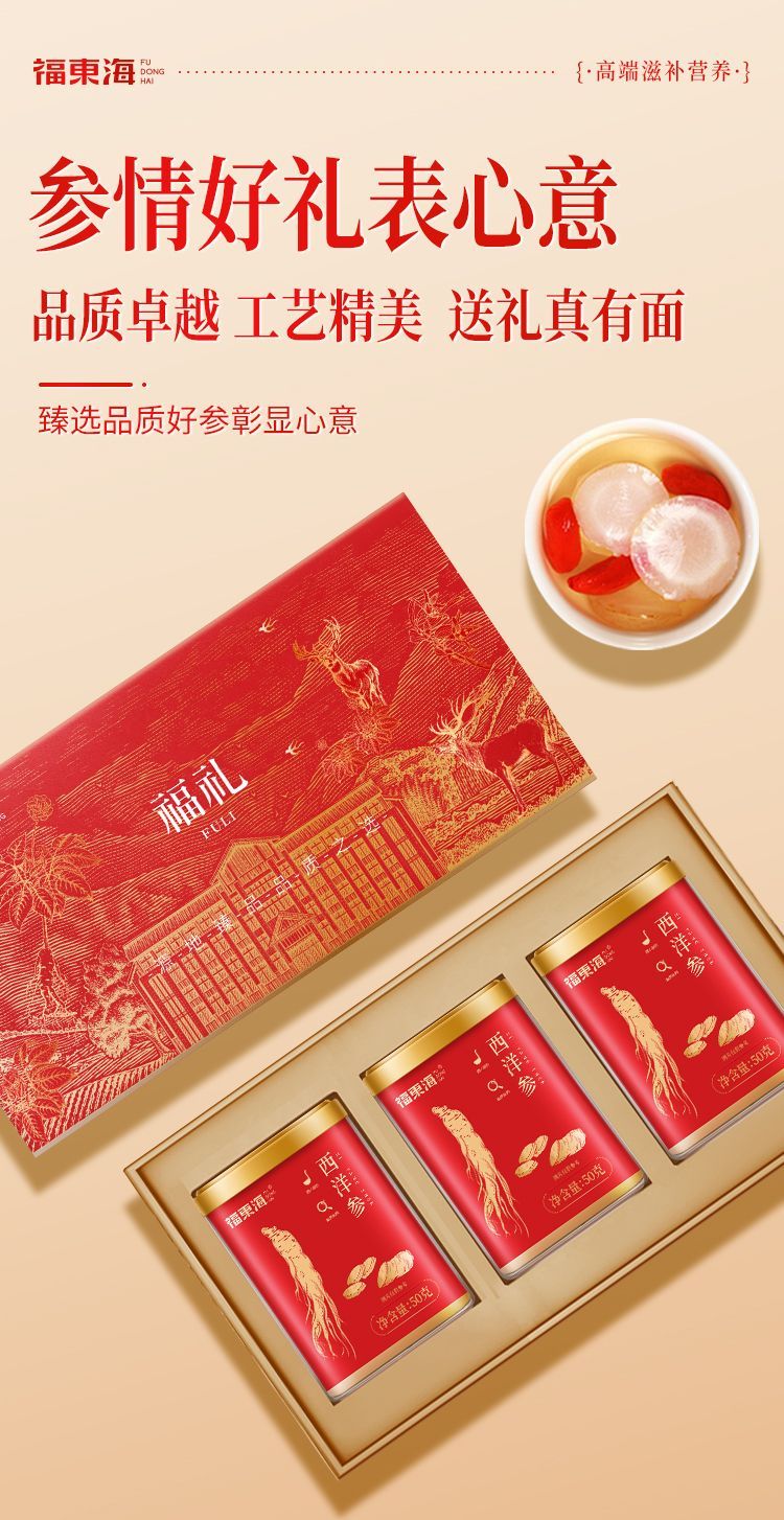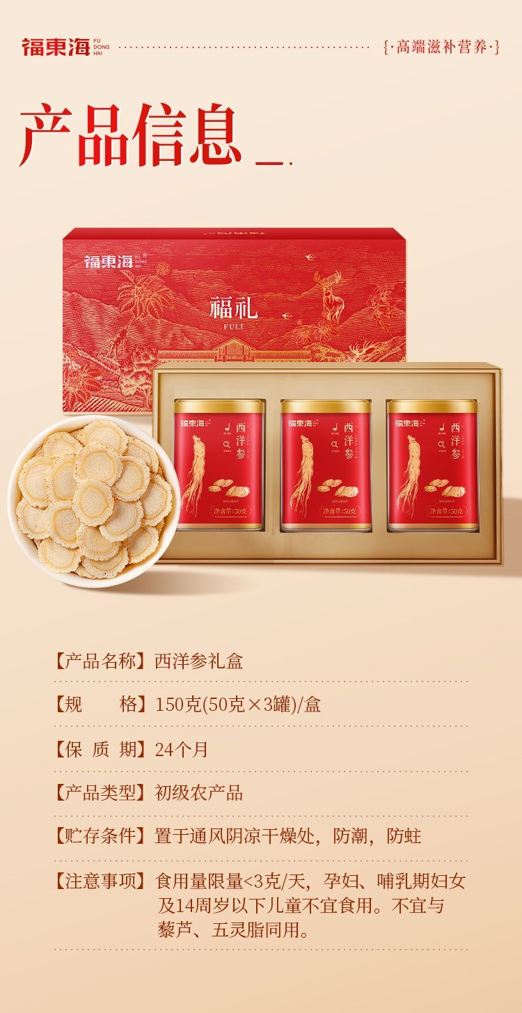 福东海 西洋参片150克(50克x3罐)/盒