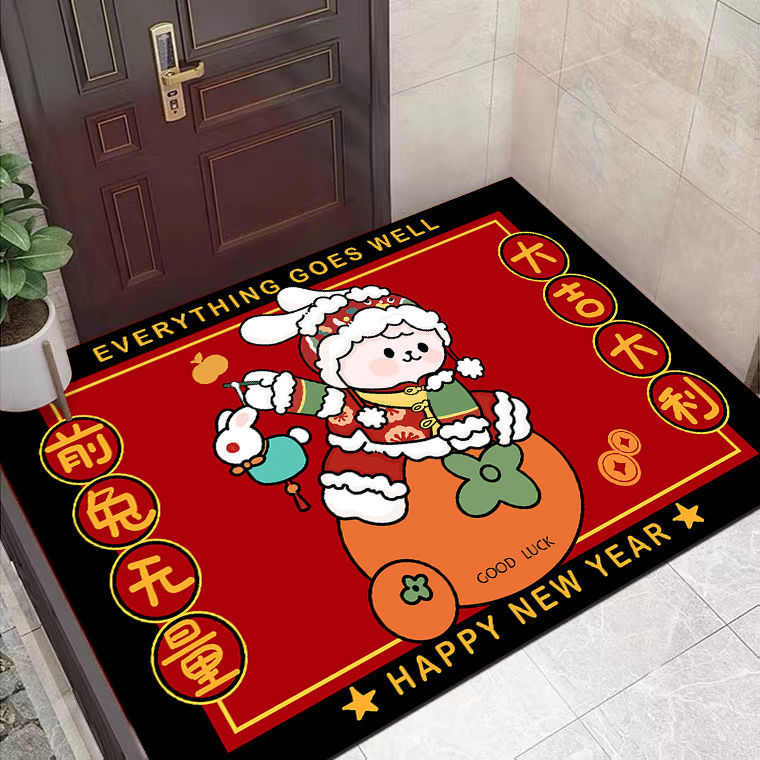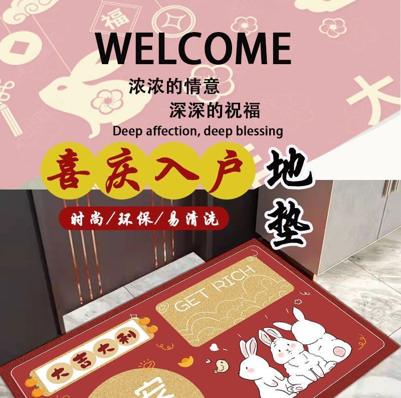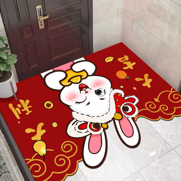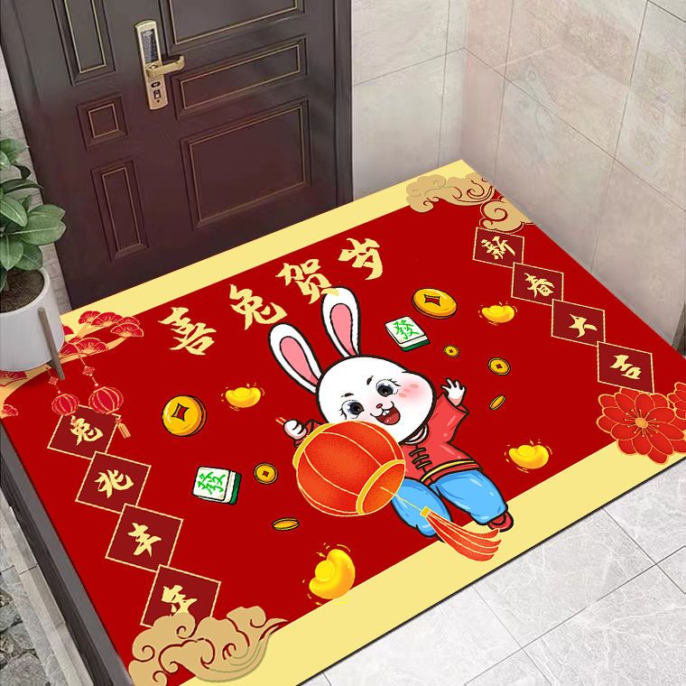 红地垫进门口入户门垫兔年新年卧室脚垫家用卫生间地毯浴室防滑垫