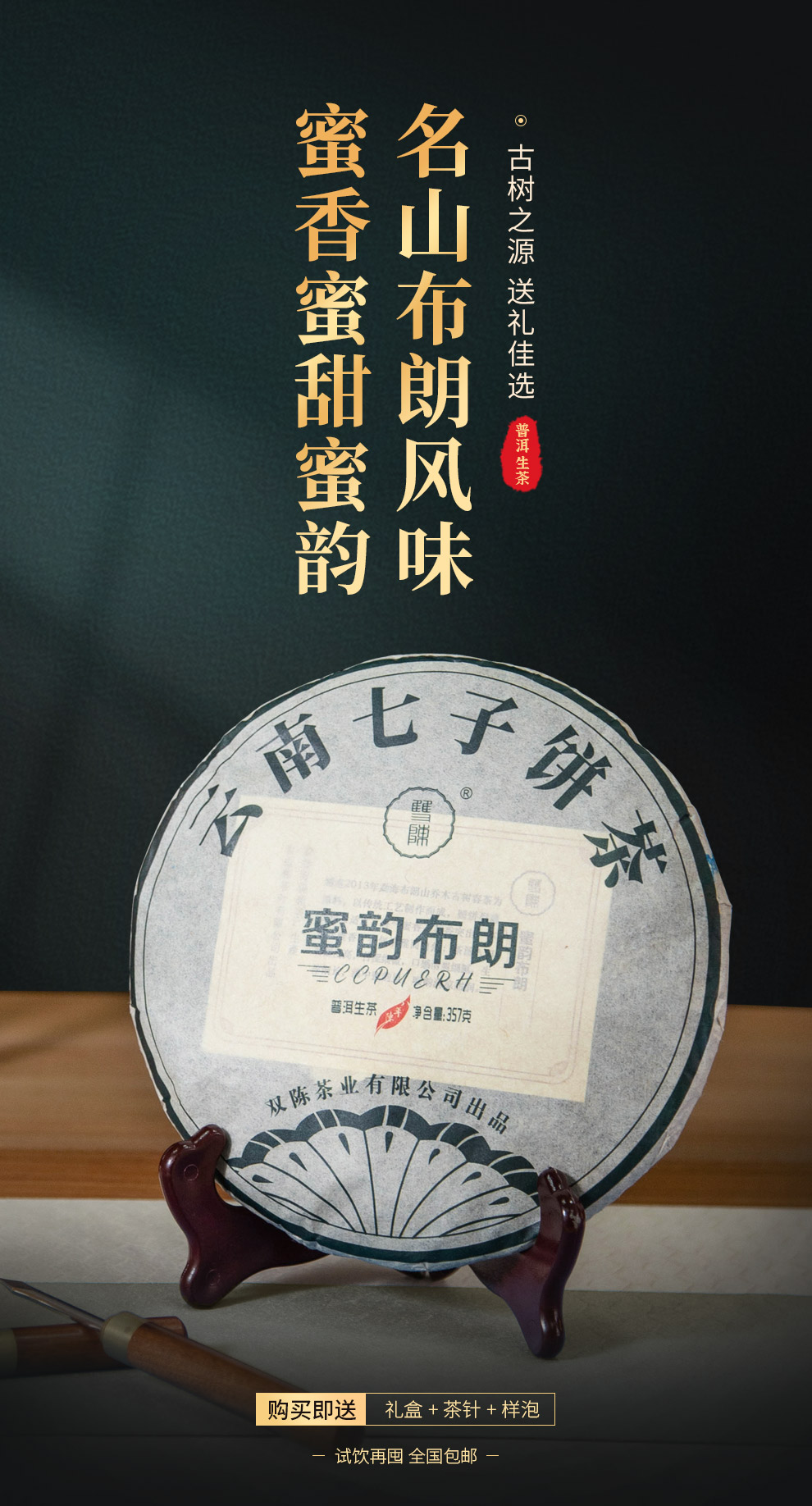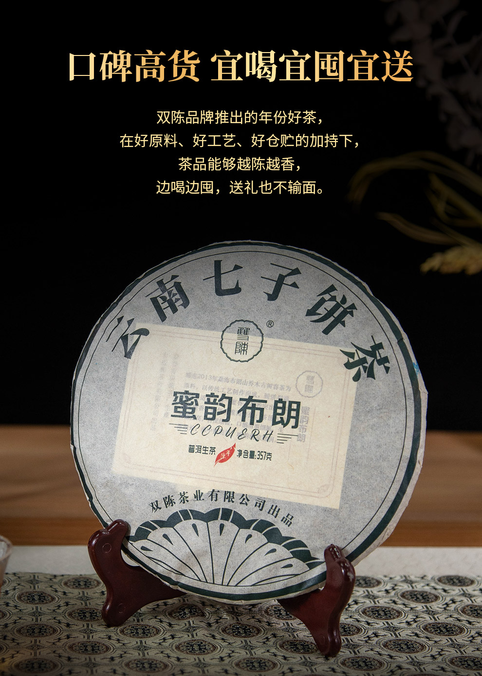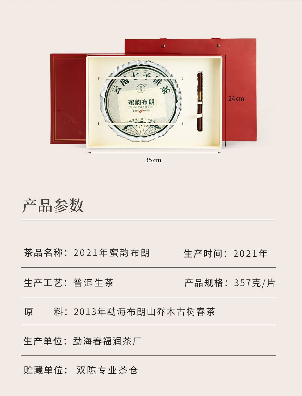 2021年蜜韵布朗357克/饼普洱生茶2013年古树春料七子饼茶干仓老茶
