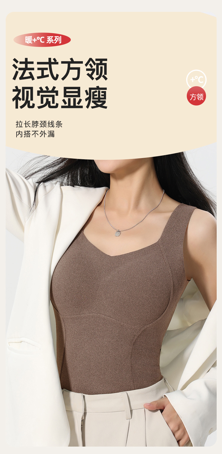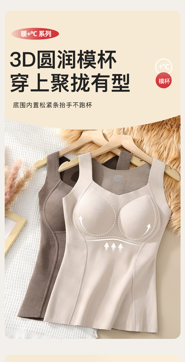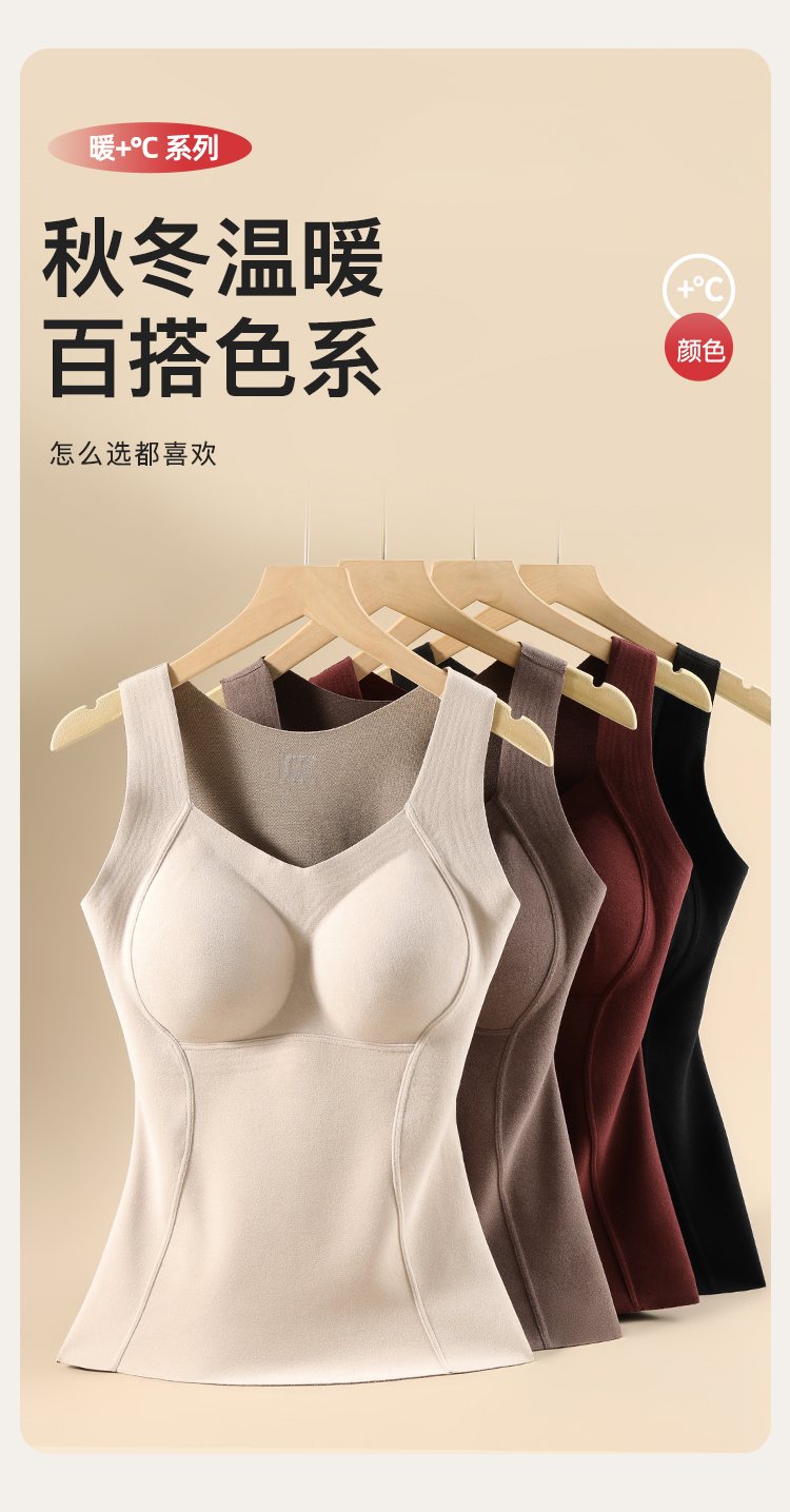 【带胸垫保暖背心】含石墨烯秋冬免穿文胸女士保暖内衣修身显瘦8867磨绒背心