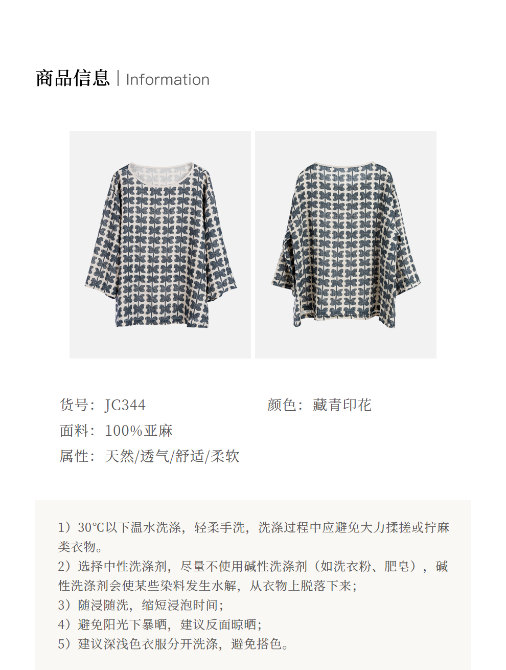 * 绽放旅行女装344朵/藏青色花朵印花复古文艺短袖宽松亚麻t恤小衫