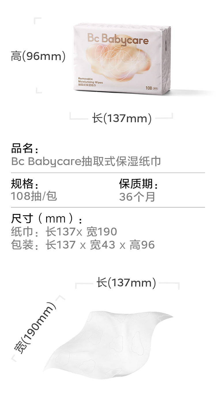 [屁侠推荐]babycare婴儿云柔巾 保湿亲肤 比棉花更柔软 新生儿超柔纸巾 108抽*6包