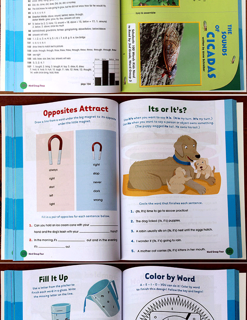 学乐《100单词》系列给孩子提供这种实践。每本书有近500幅全彩图片。练习册有如下特点: