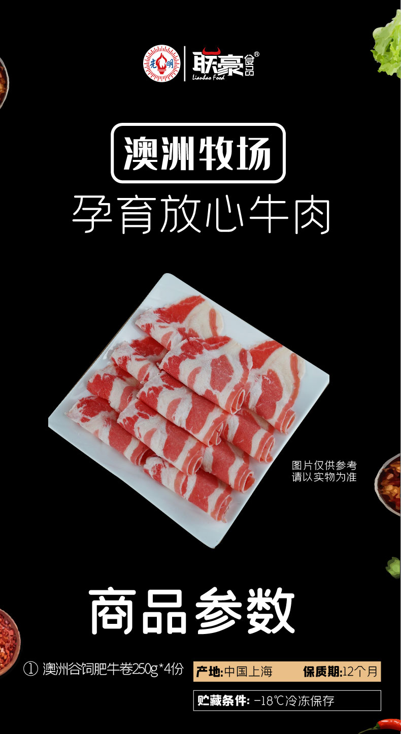 联豪食品澳洲谷饲肥牛卷250g4份【仅限集团兑换 单拍不发货勿拍!】