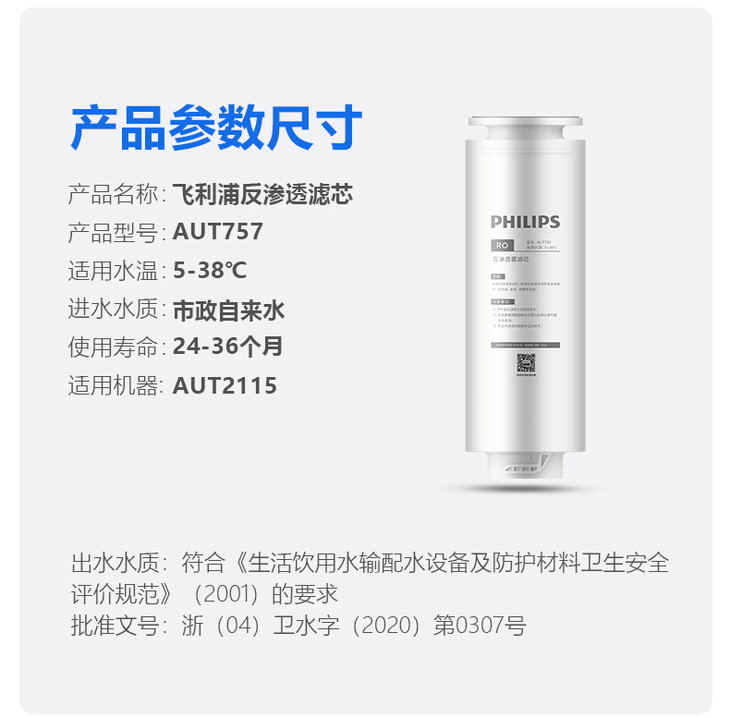 飞利浦(PHILIPS)Mask双鱼座系列厨下净水器滤芯AUT757(RO)500G 适用:AUT2115 AUT2116