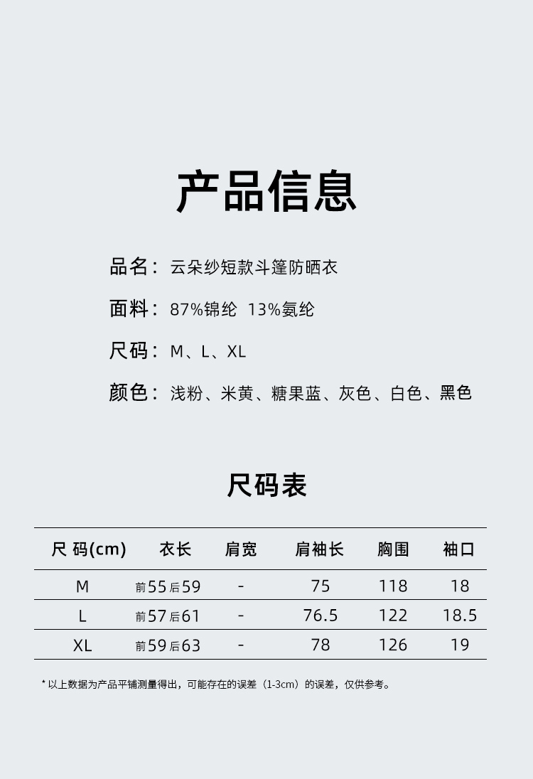 weyo 夏季新款女云朵纱插肩短款斗篷防晒衣冰爽凉感防晒S31301、S31303