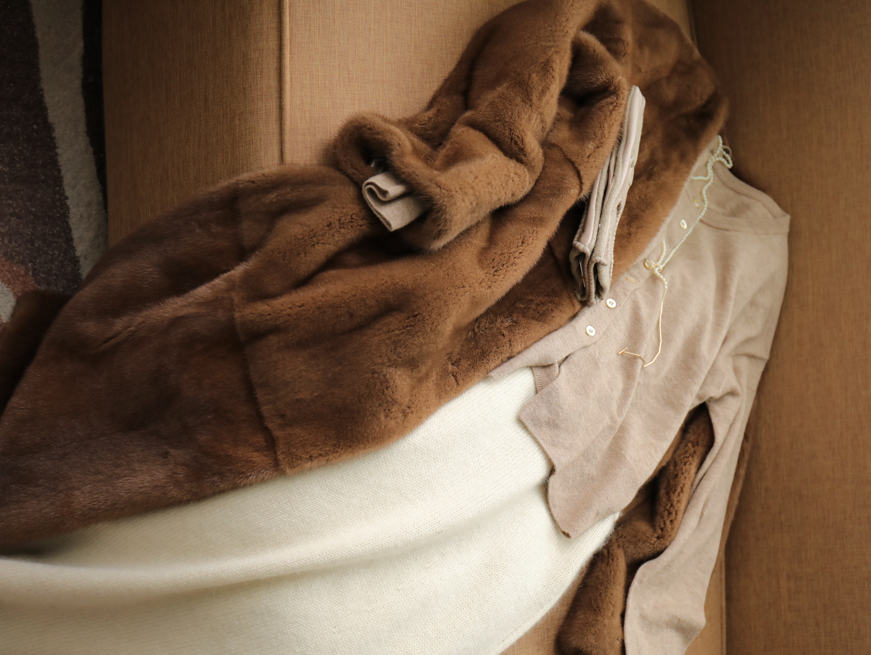 LA PISCINE FUR HOODED BOMBER 毛皮连帽飞行夹克