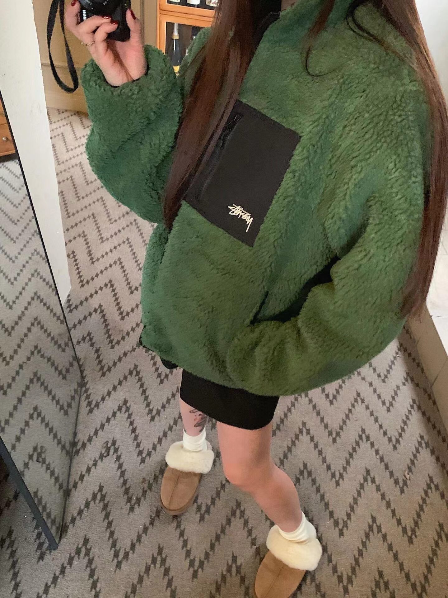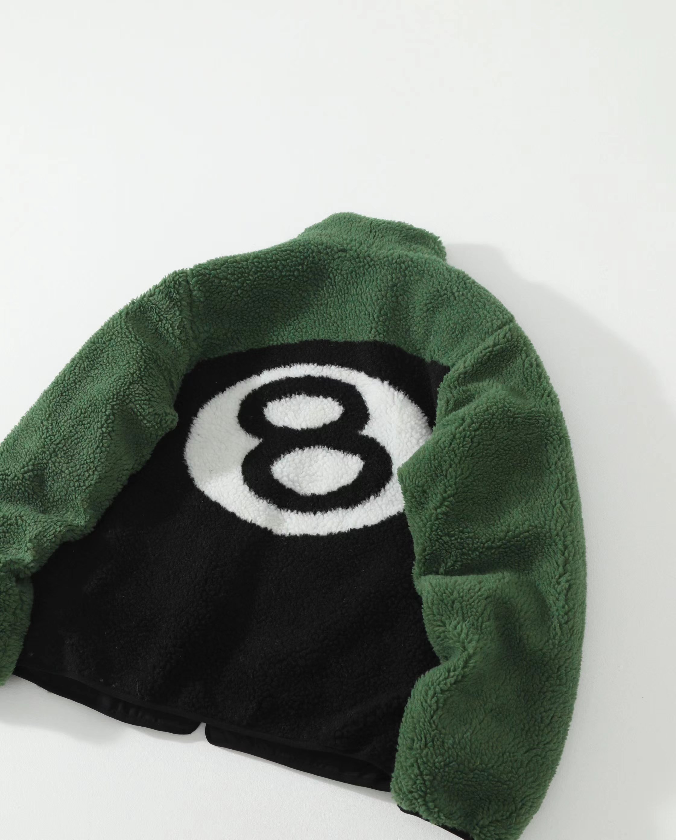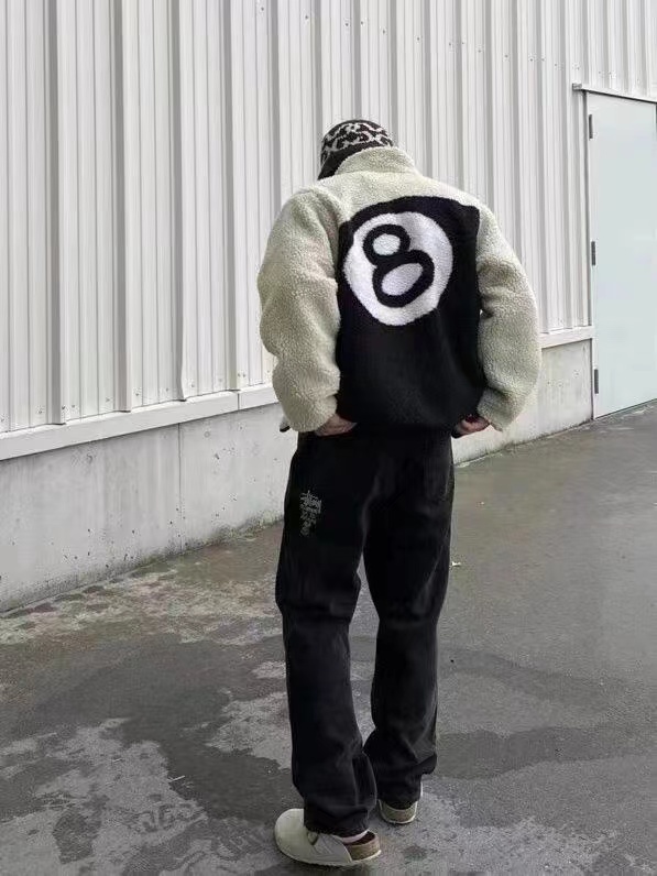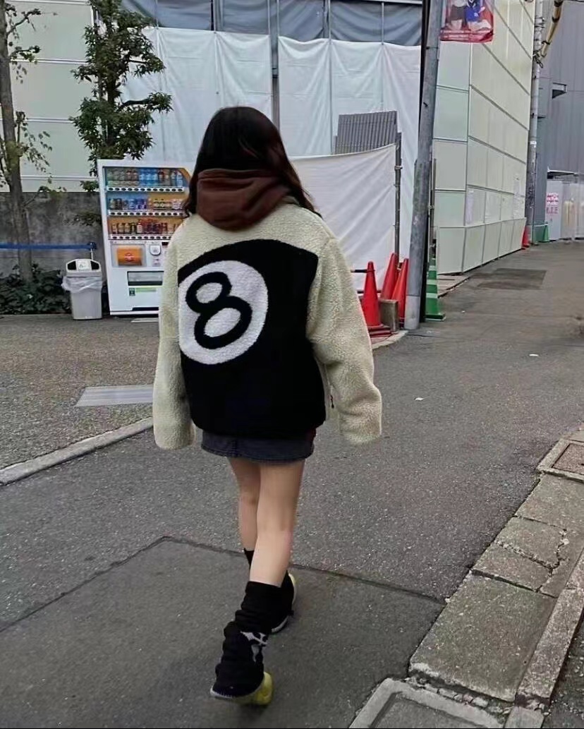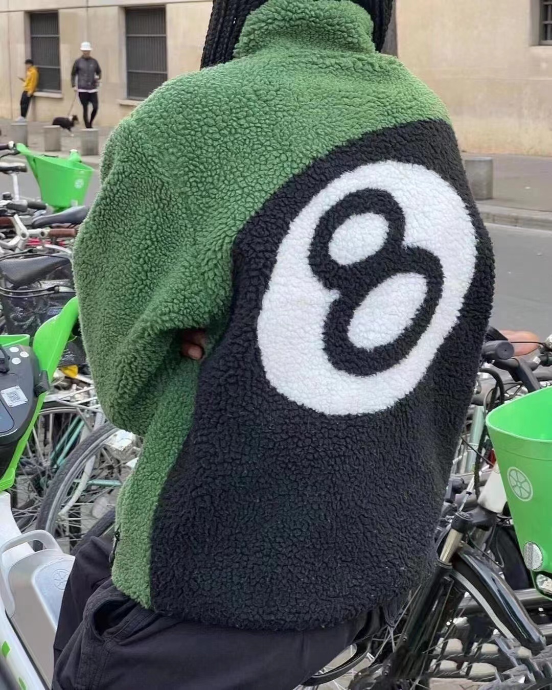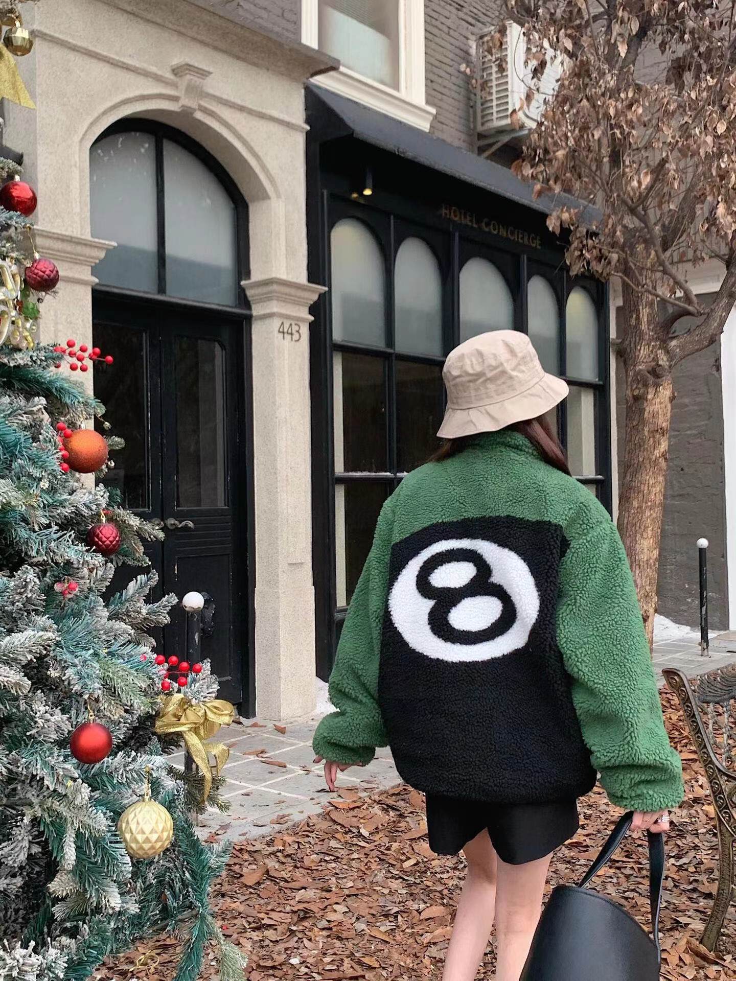 双面穿 摇粒绒正反两面穿夹克外套 男女同款 秋冬季值得入手乘风破浪,为潮流传播创造了崭新的舞台。高版本秋冬新款户外双面穿羊羔毛黑8台球印花外套,满足日常穿着的舒适版型,衣服采用了双面可穿的设计,一面为厚实的羊羔绒材质,一面为高密度的梭织面料,羊羔绒面手感柔软蓬松,胸口黑色梭织布竖拉链表袋贴合日常实用,白色的草写字母刺绣点缀辨识度,后背大面积拼色,采用了精典的黑8台球印花,潮流感爆棚;反面则是高密度梭织面料,有一定的抗风防泼水功能,胸口同样白色的字母刺绣和全黑的衣服相撞,倍感清晰,全身拉链头抽绳等配件充满了户外运动风格,两面多种穿着体验,兼具城市街头和户外运动的气质