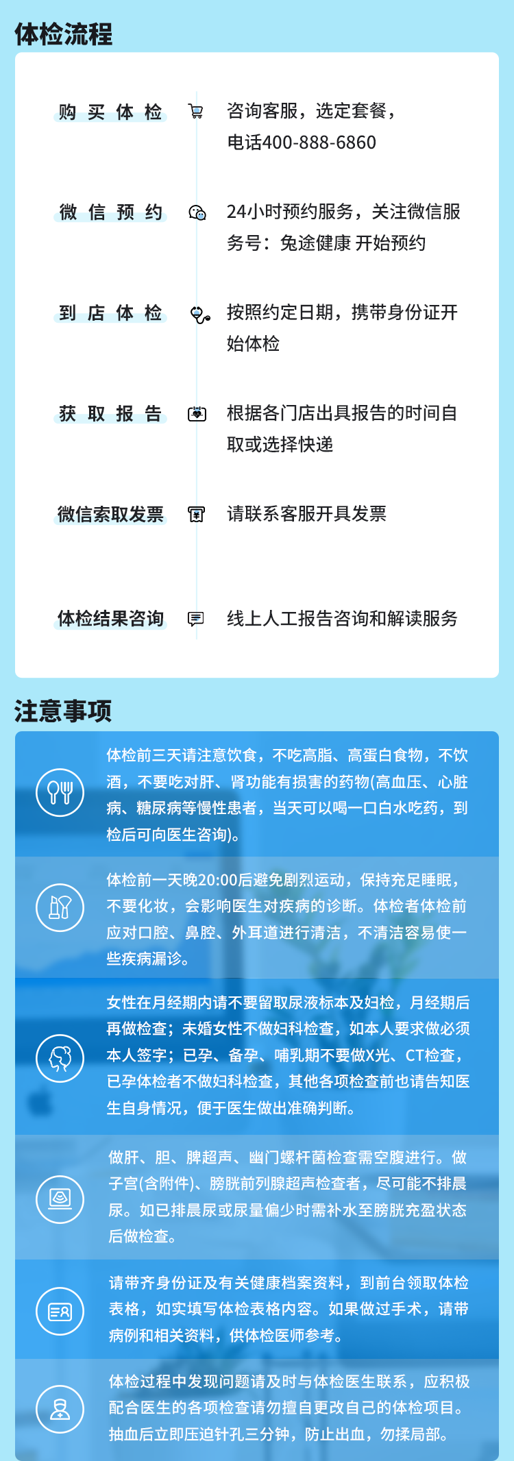 兔途通过互联网一键办理北京各类体检业务!解决百姓去医院办事检查过程繁琐、等候时间过长等实际问题。除了到医院检查,其他预约、填表、登记、缴费、查询、甚至寄送报告…..均可通过兔途在线网络办理!