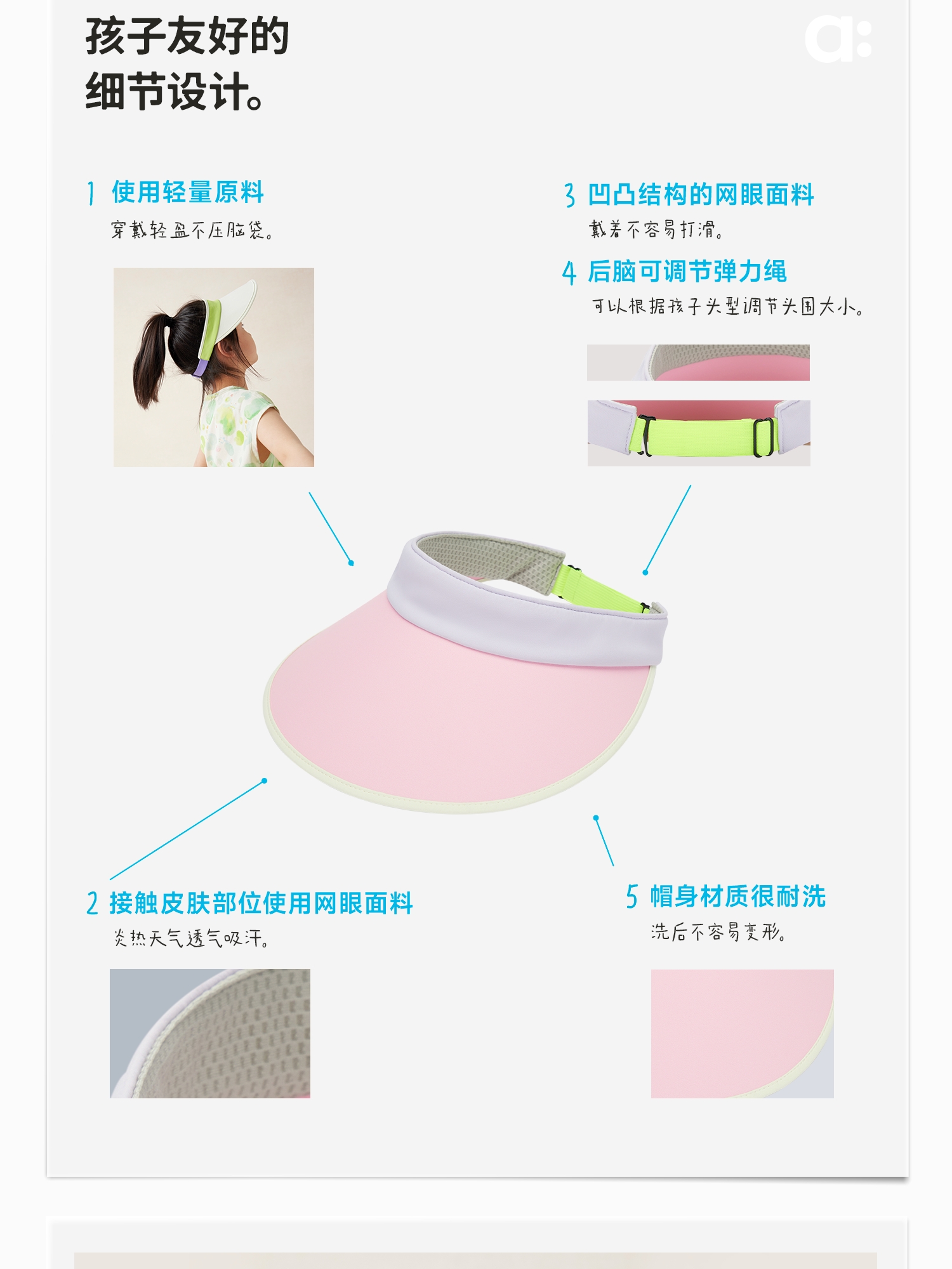 【夏Vol.2-玩水系列】幼岚「轻顶防晒帽」穿戴轻便可调节24夏款儿童帽子ZY