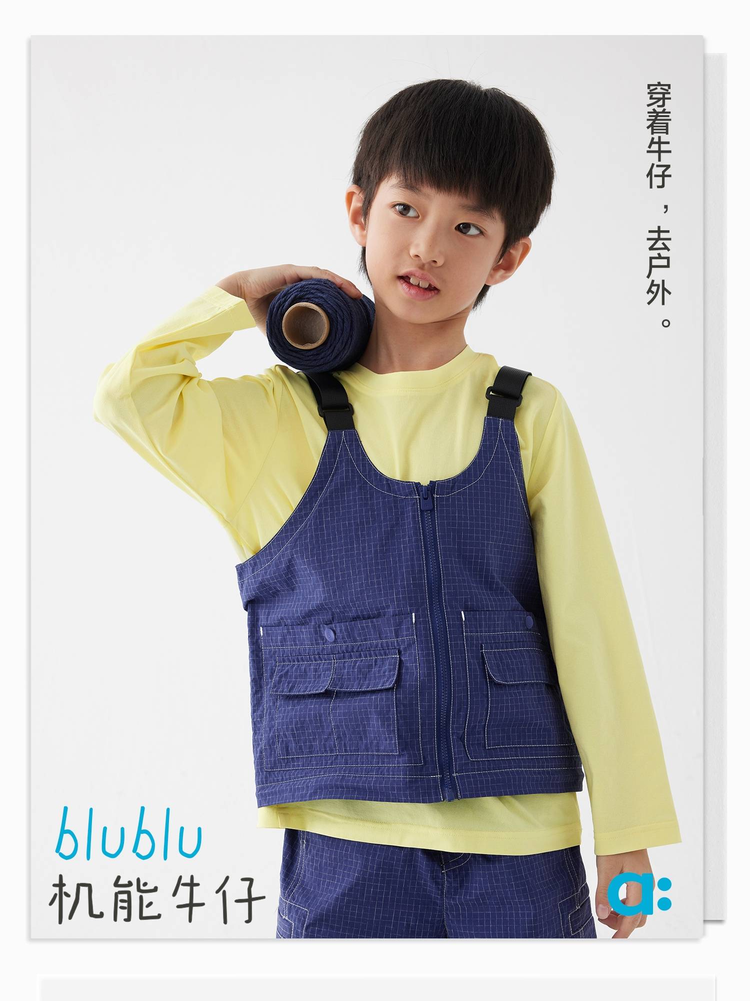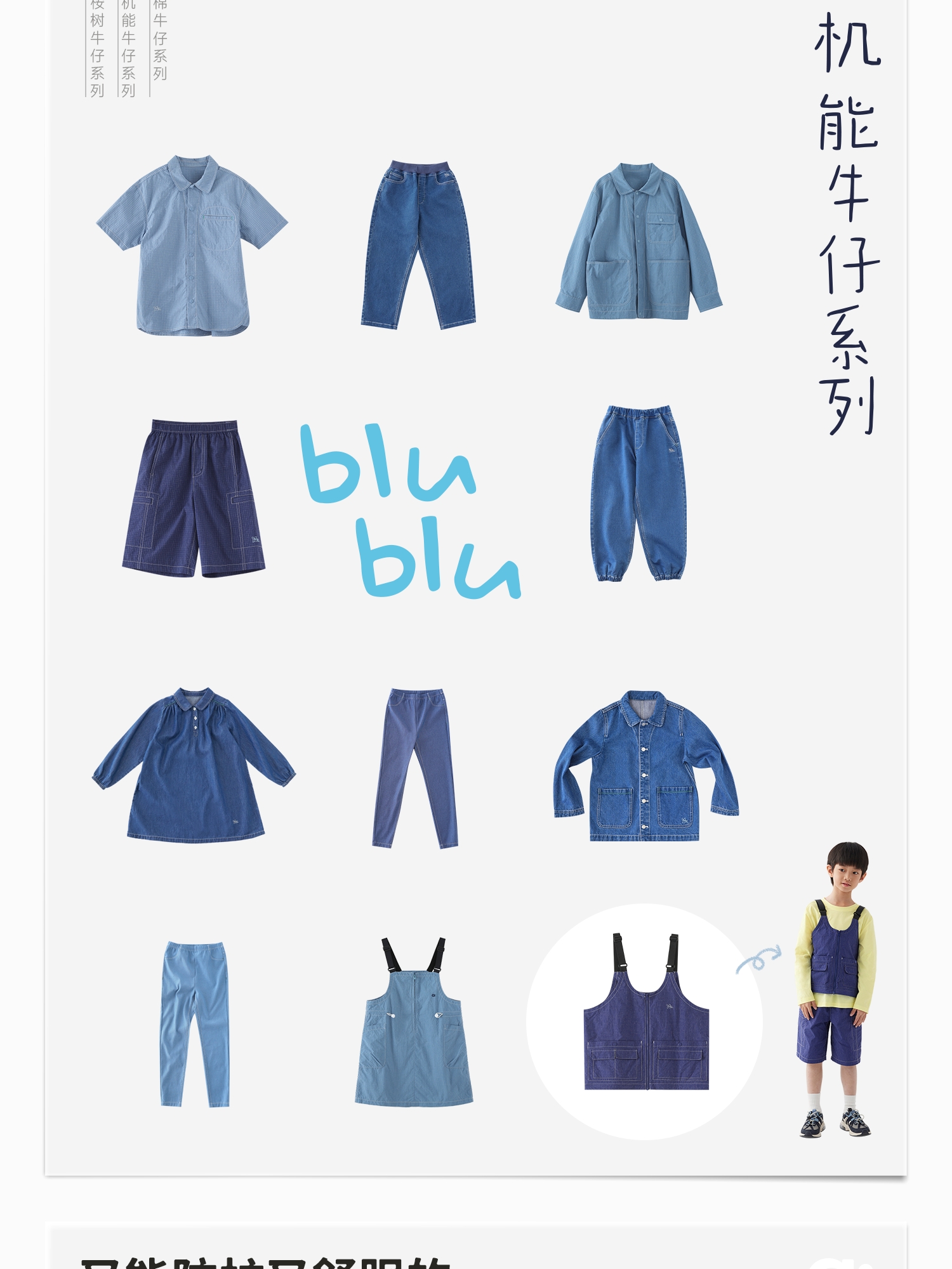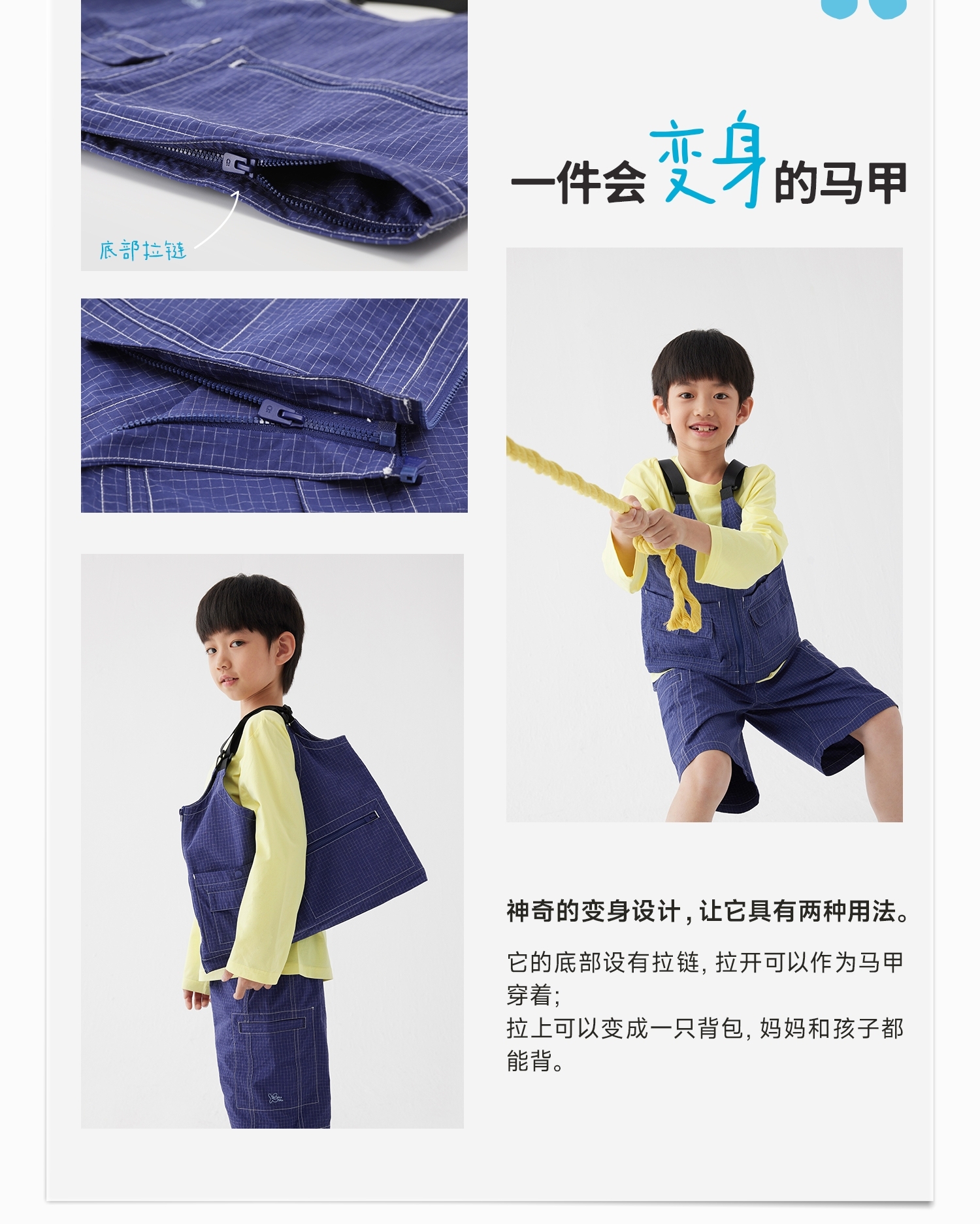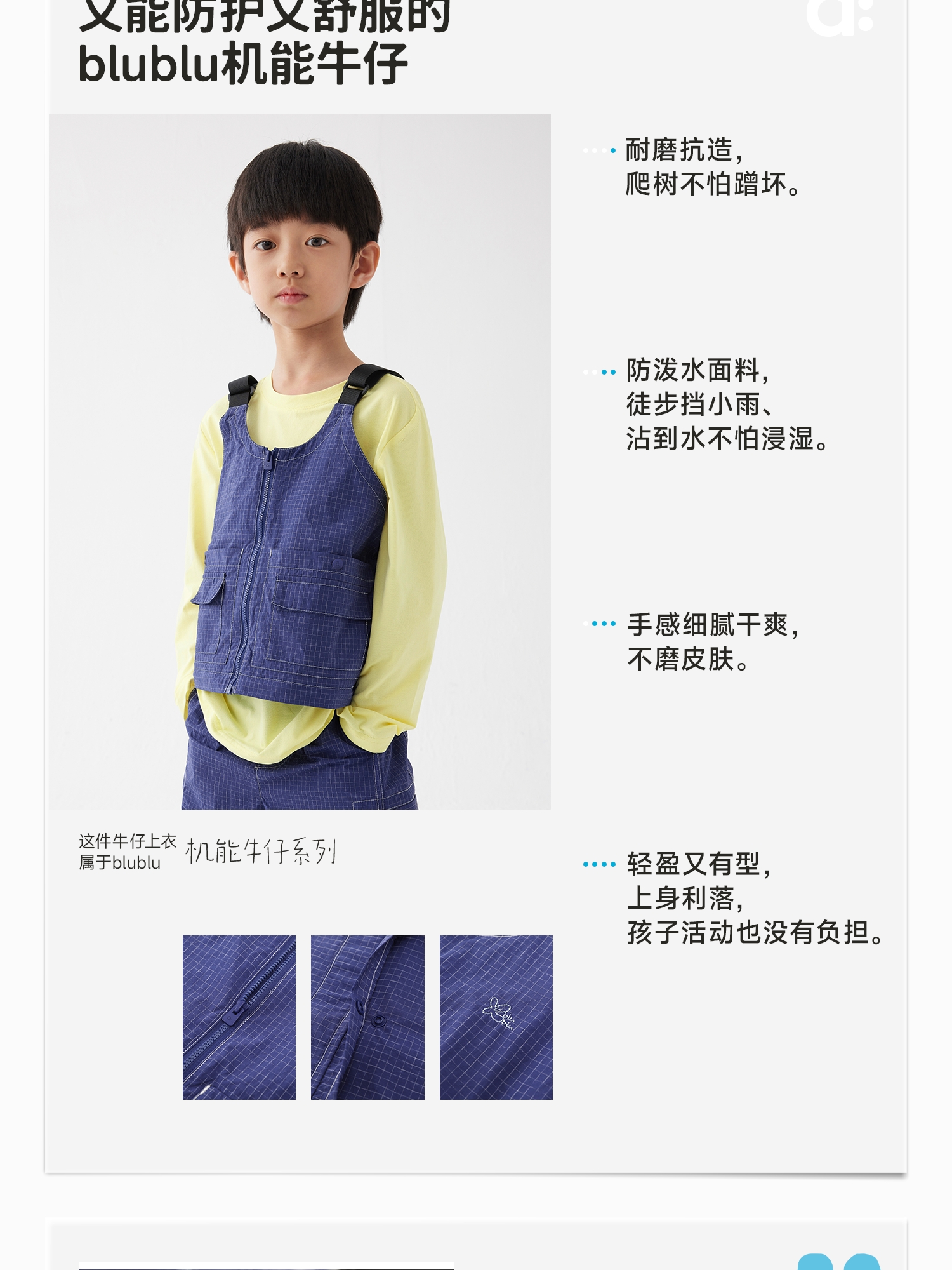 【好友特惠】幼岚耐磨抗造blublu机能牛仔变身马甲24春季新款儿童男女童马甲ZY