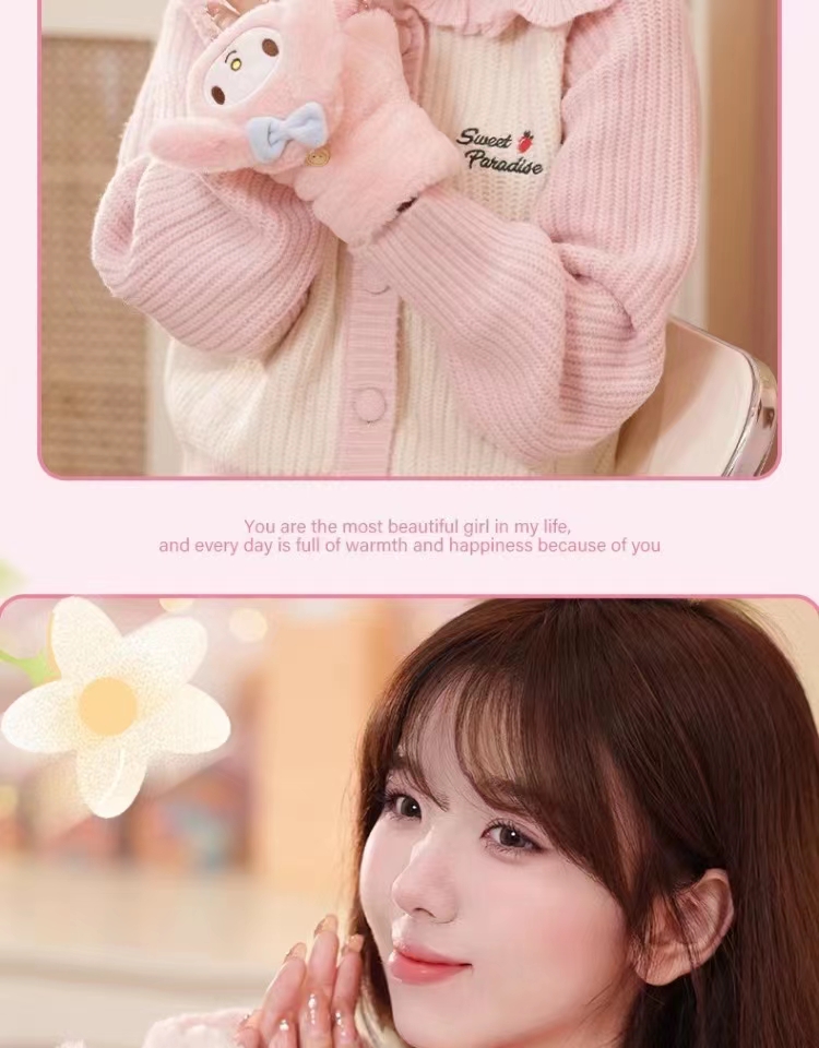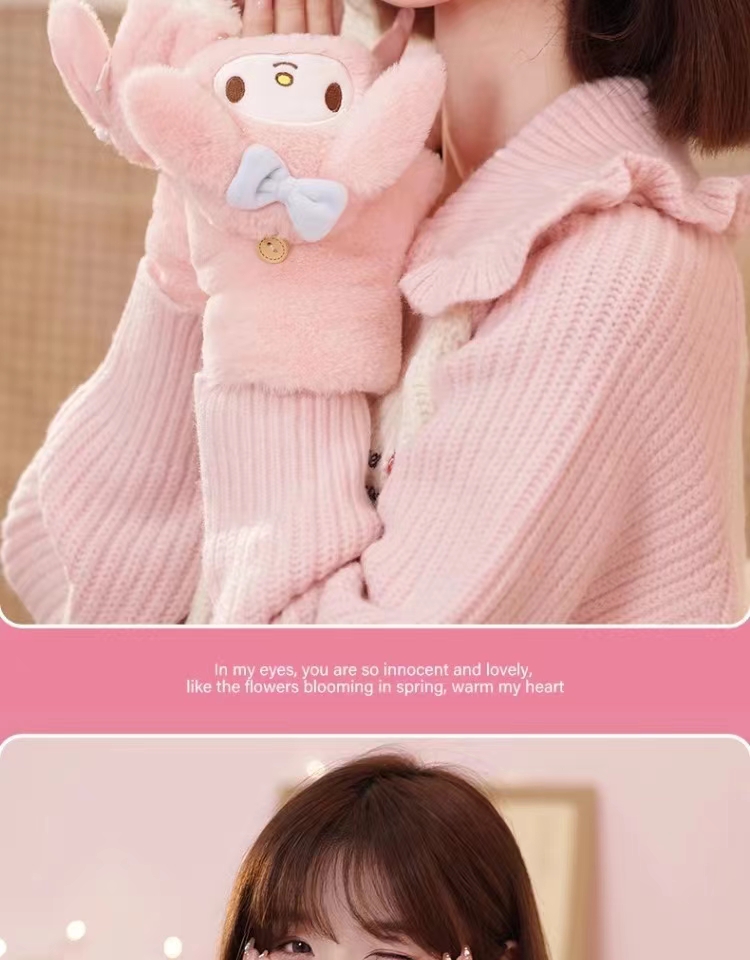 9楼母婴生活馆 【三丽鸥正版联名】保暖翻盖手套卡通加绒冬季骑行保暖 活动价:39元