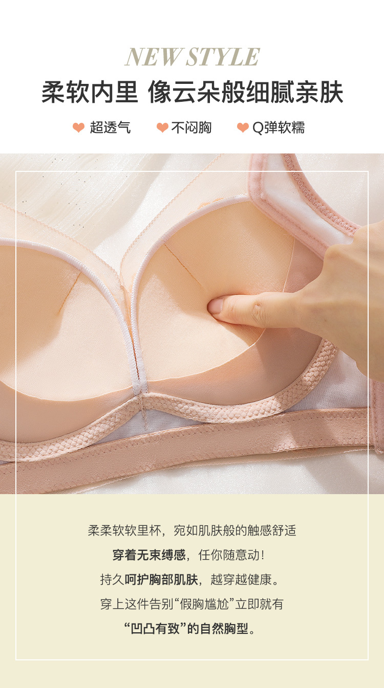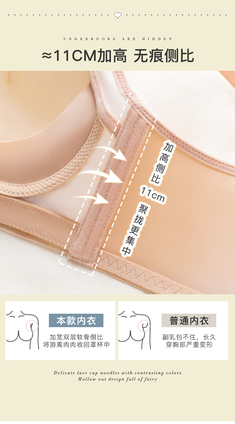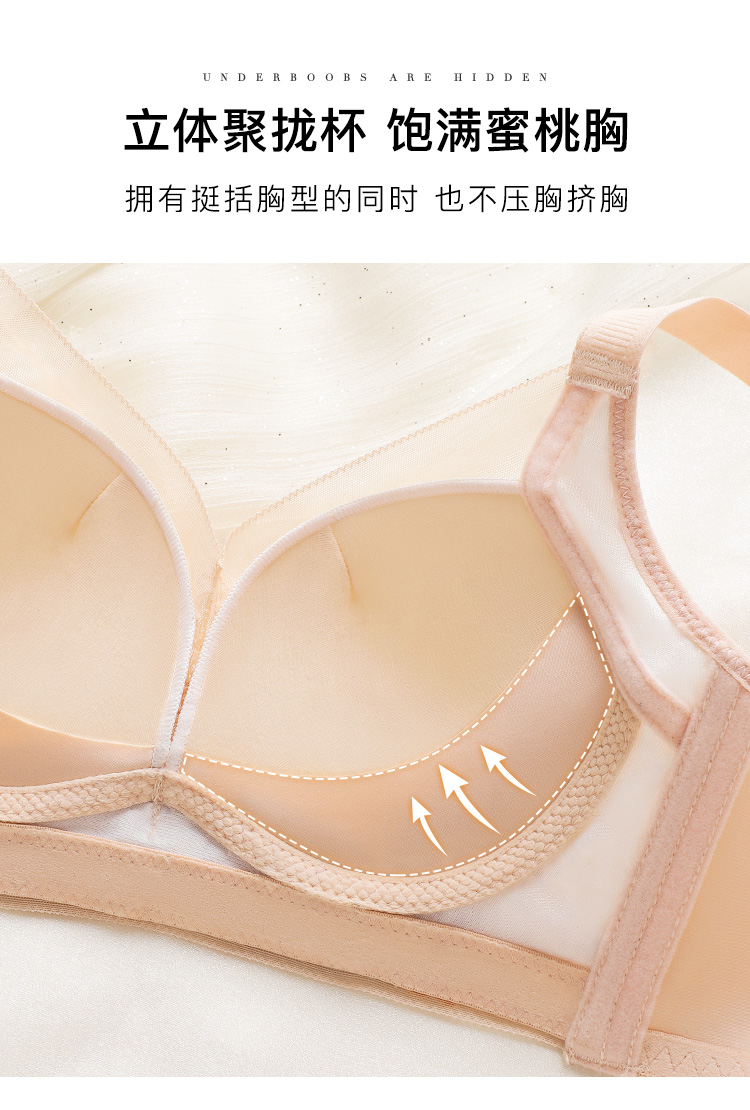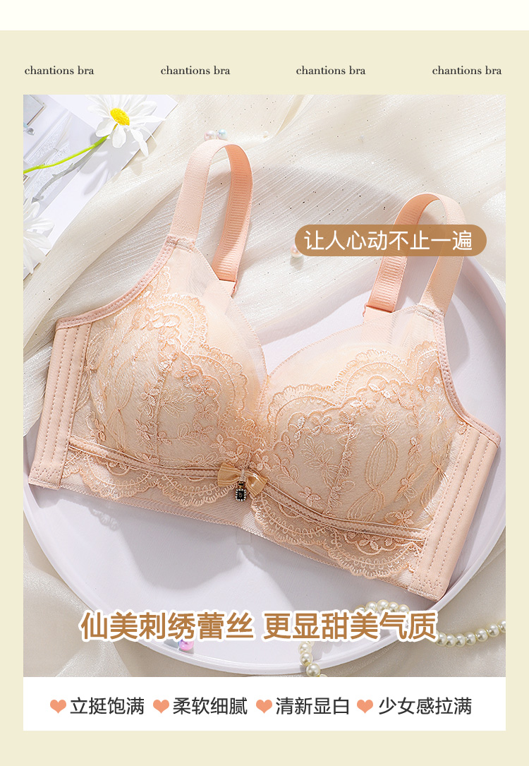 【小胸聚拢刺绣蕾丝】内衣女舒适无钢圈聚拢调整型上托美背文胸罩花底如画
