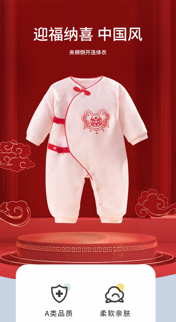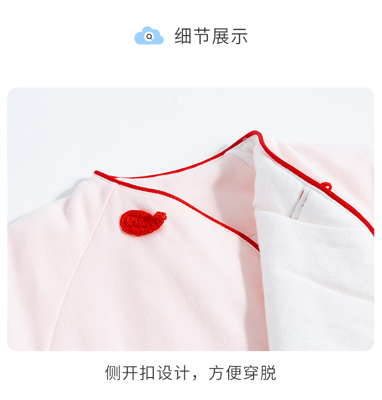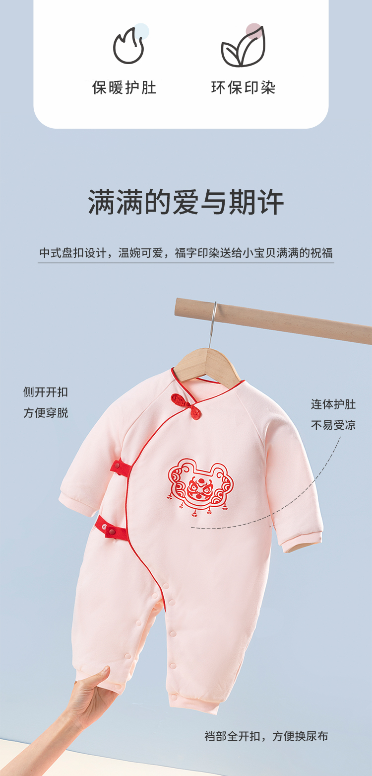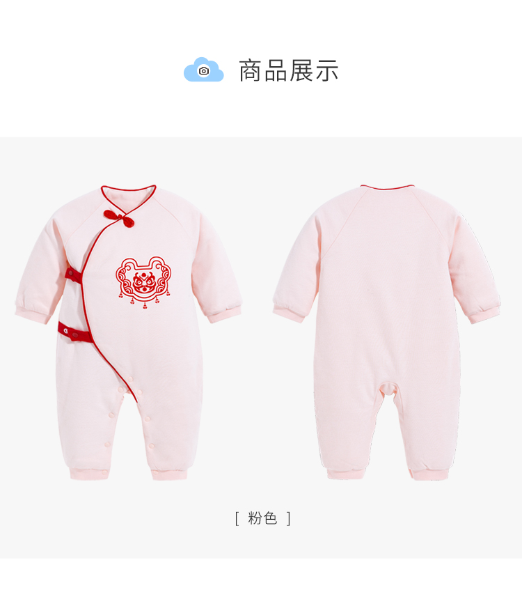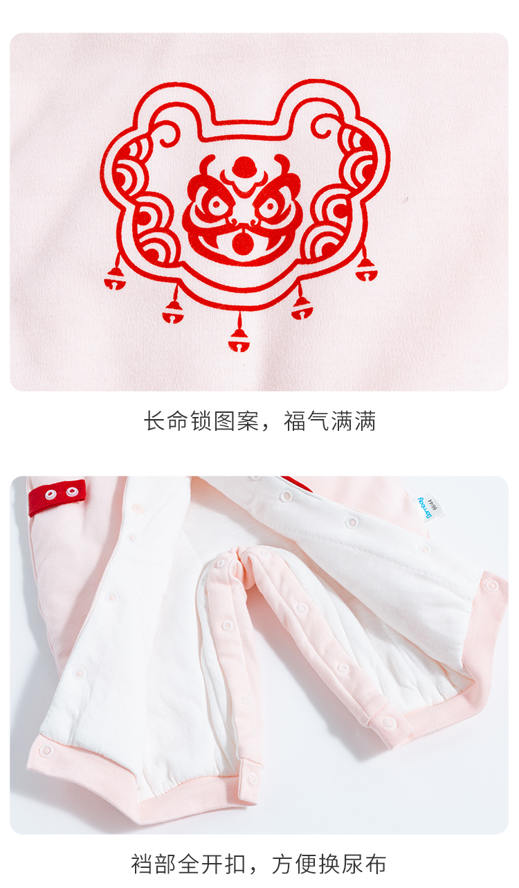 贝贝怡童装秋冬新生儿夹棉侧开连体衣女宝宝传统中国风满月可爱连体衣224L2011