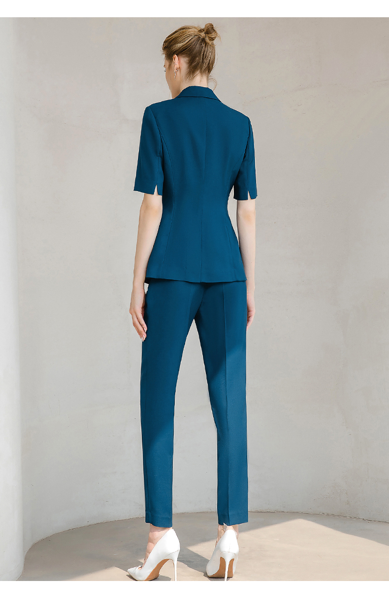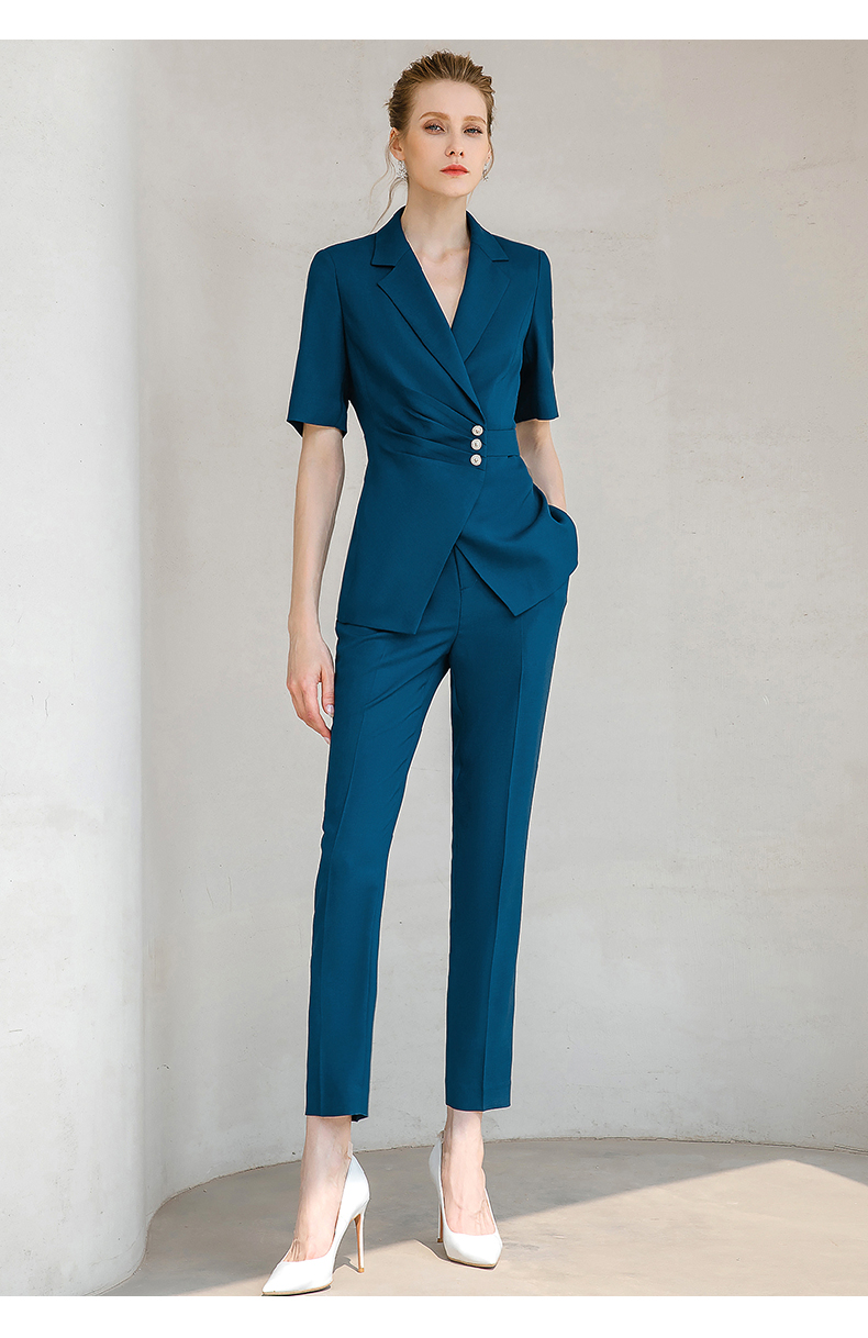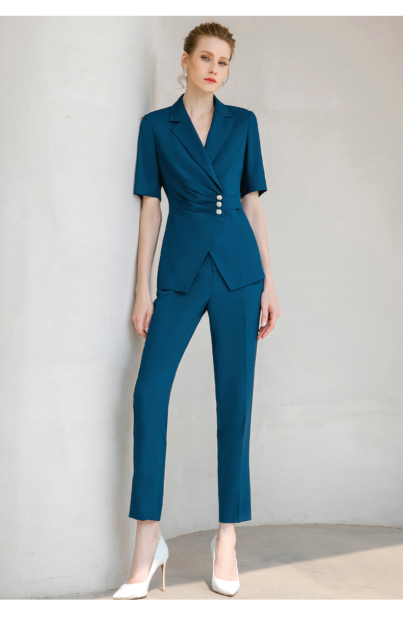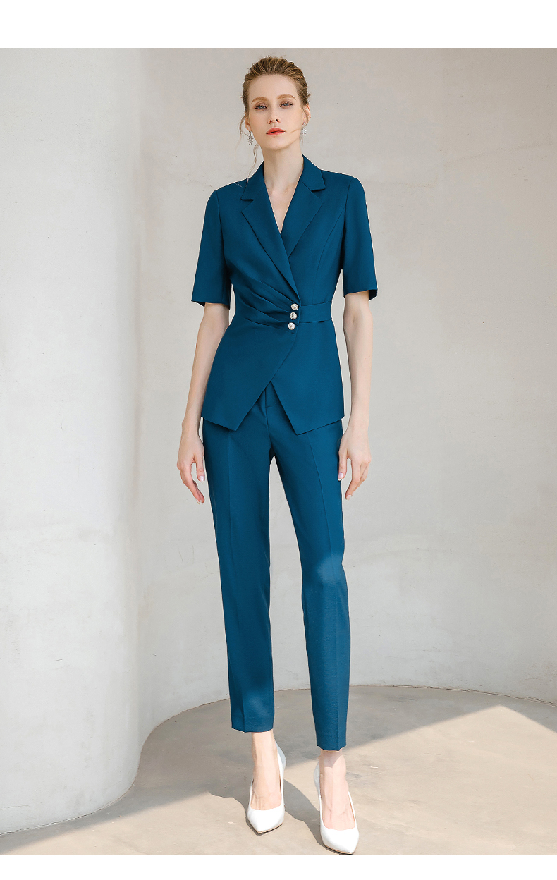 2023年夏季新款高端蓝色西装套装女套裤气质时尚职业装正装西服