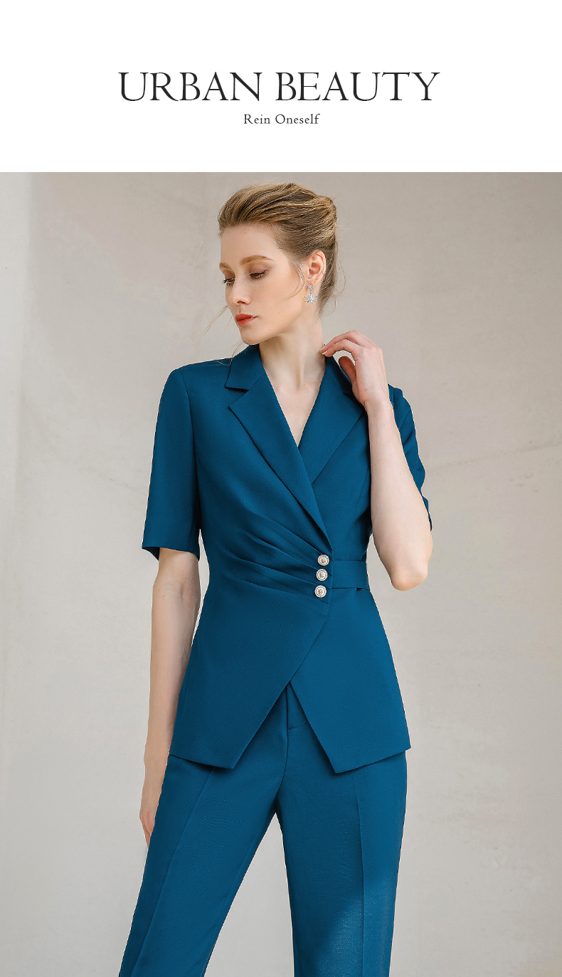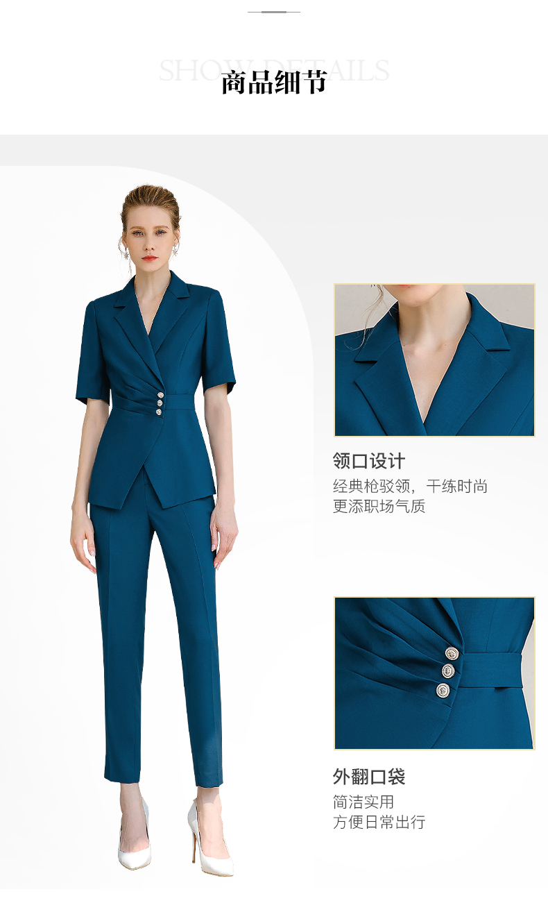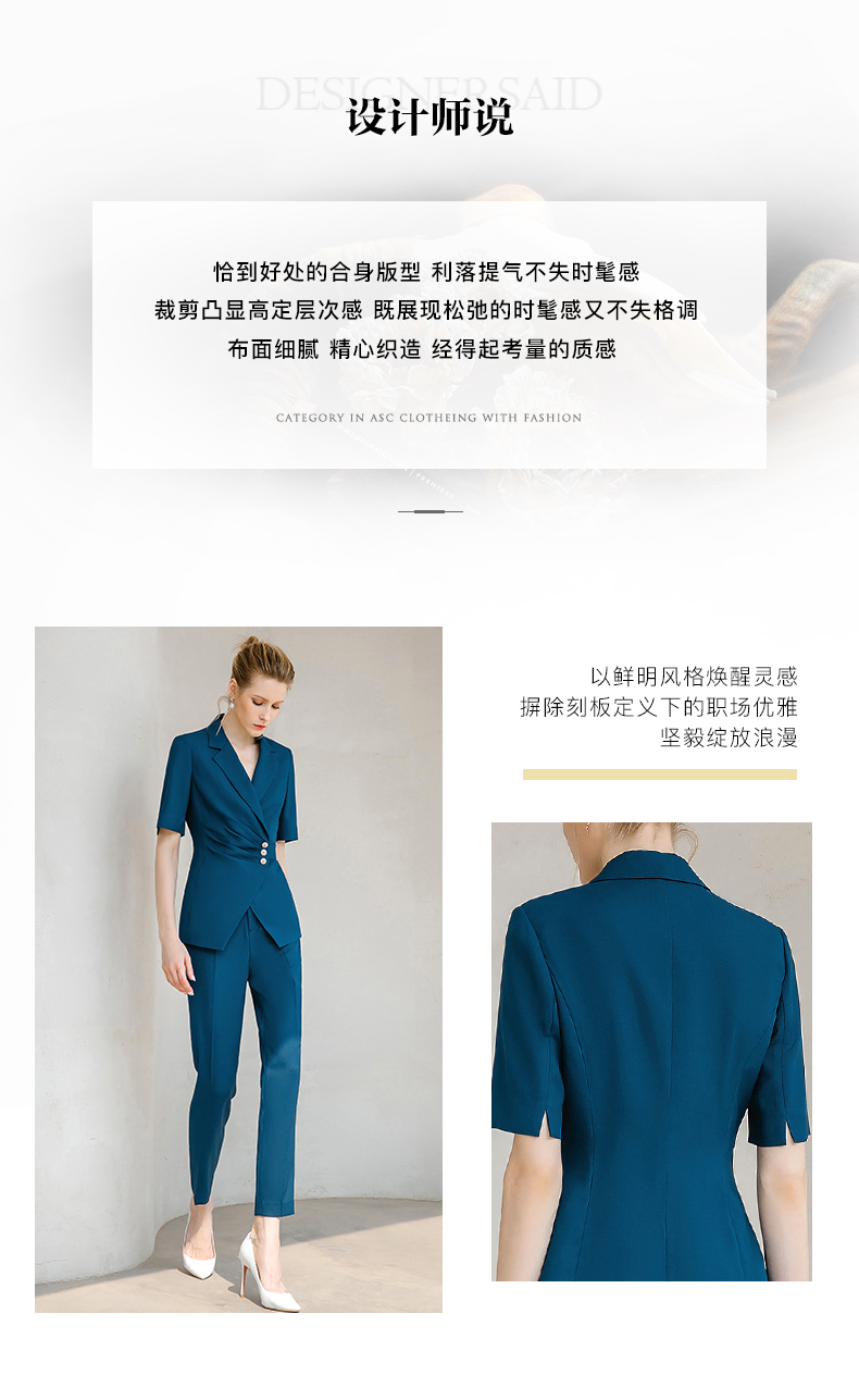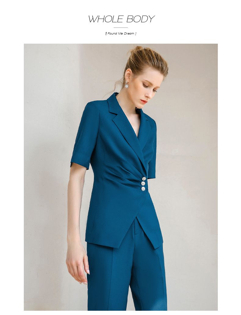 2023年夏季新款高端蓝色西装套装女套裤气质时尚职业装正装西服