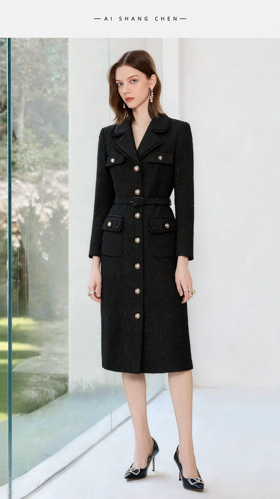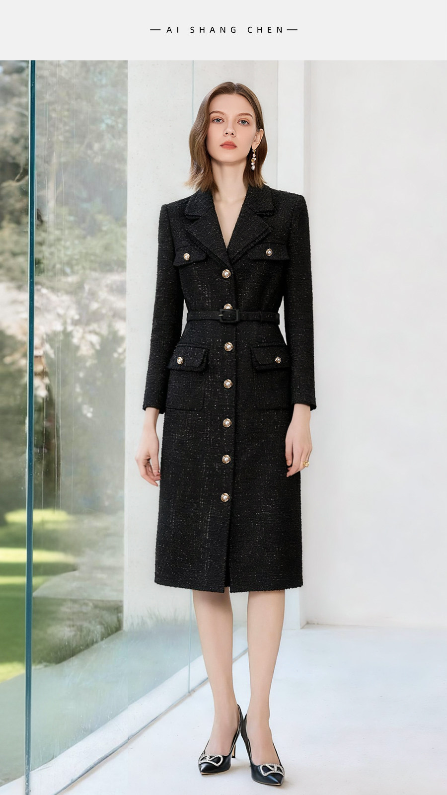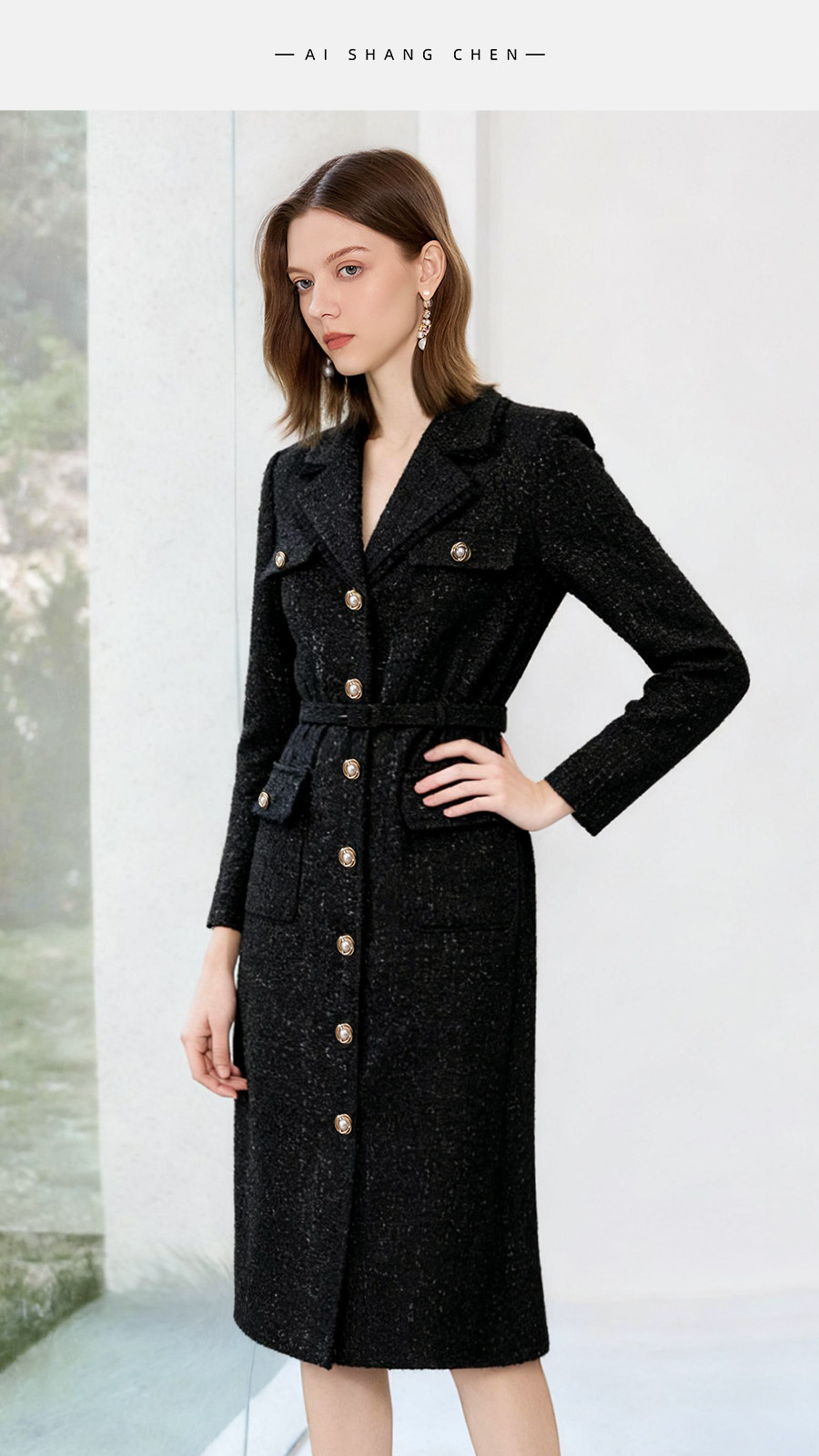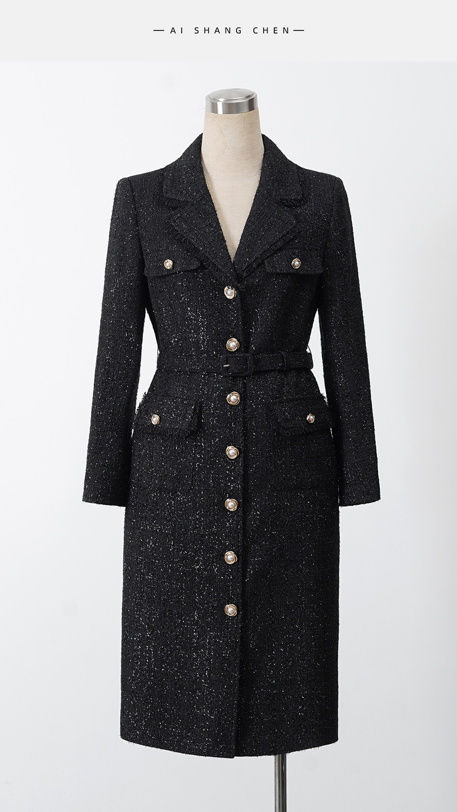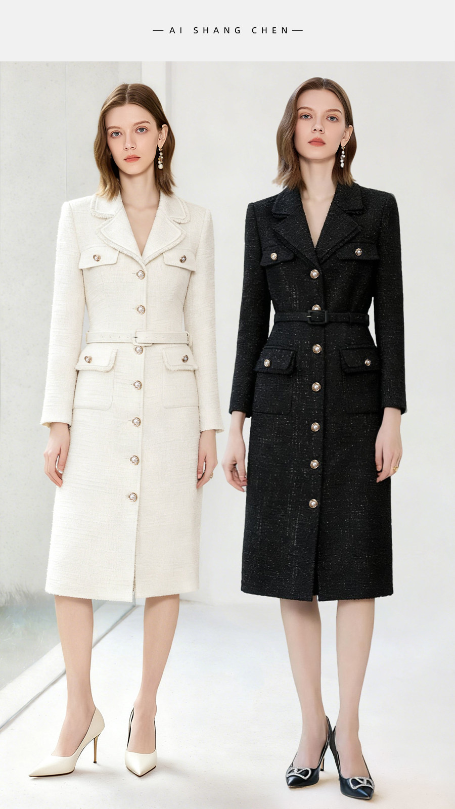 艾尚臣粗花呢小香风连衣裙女高级感老钱风西装裙显瘦通勤法式裙子