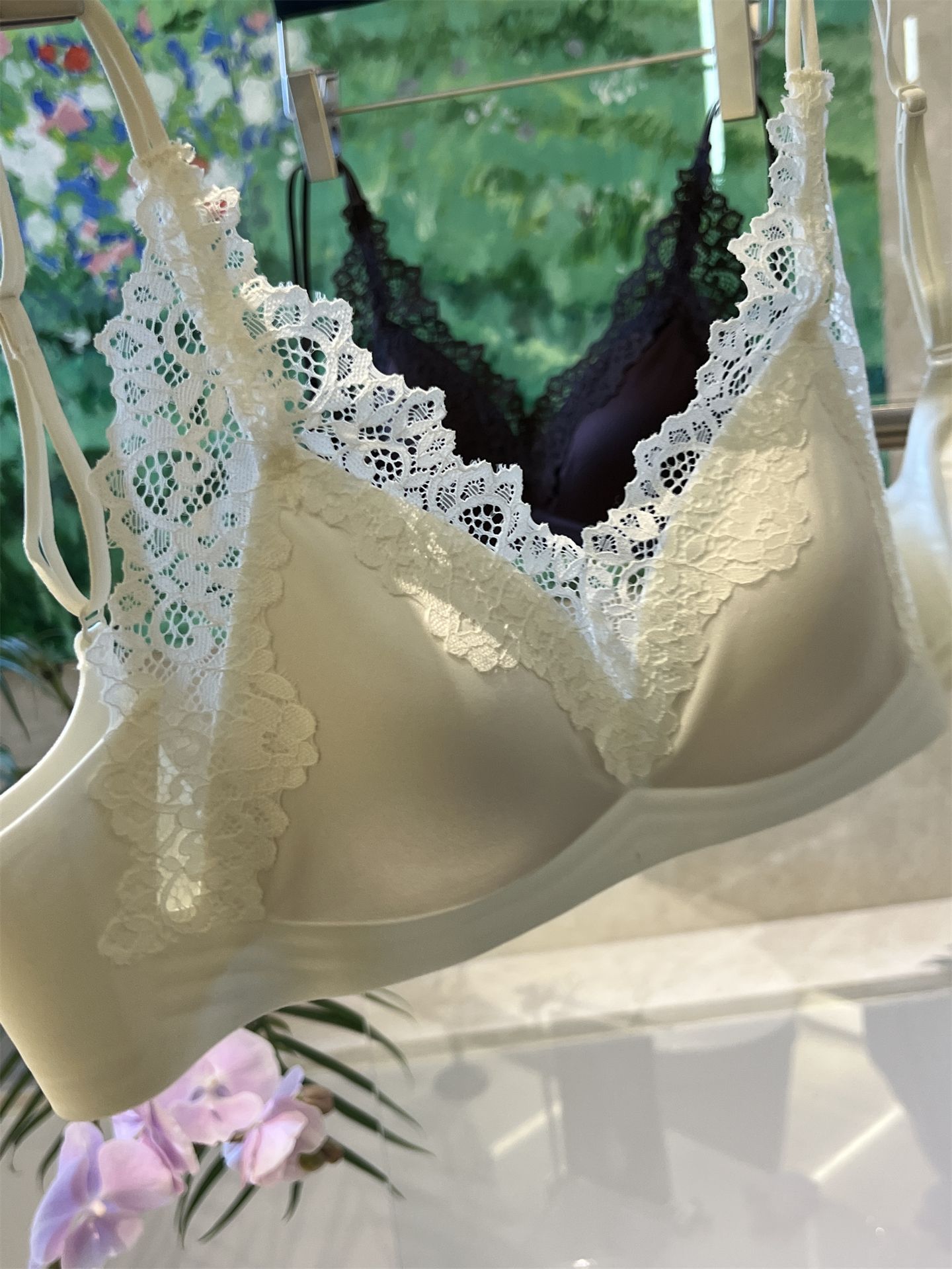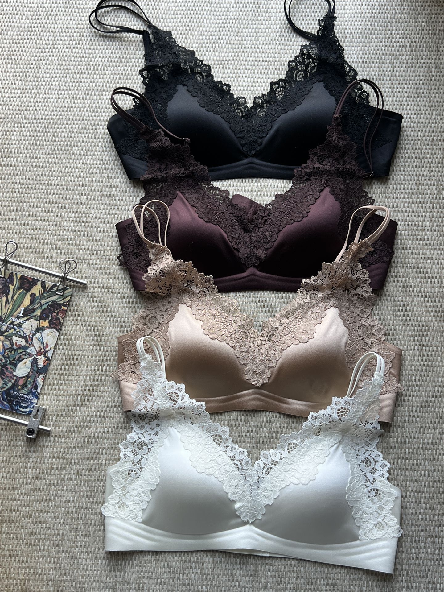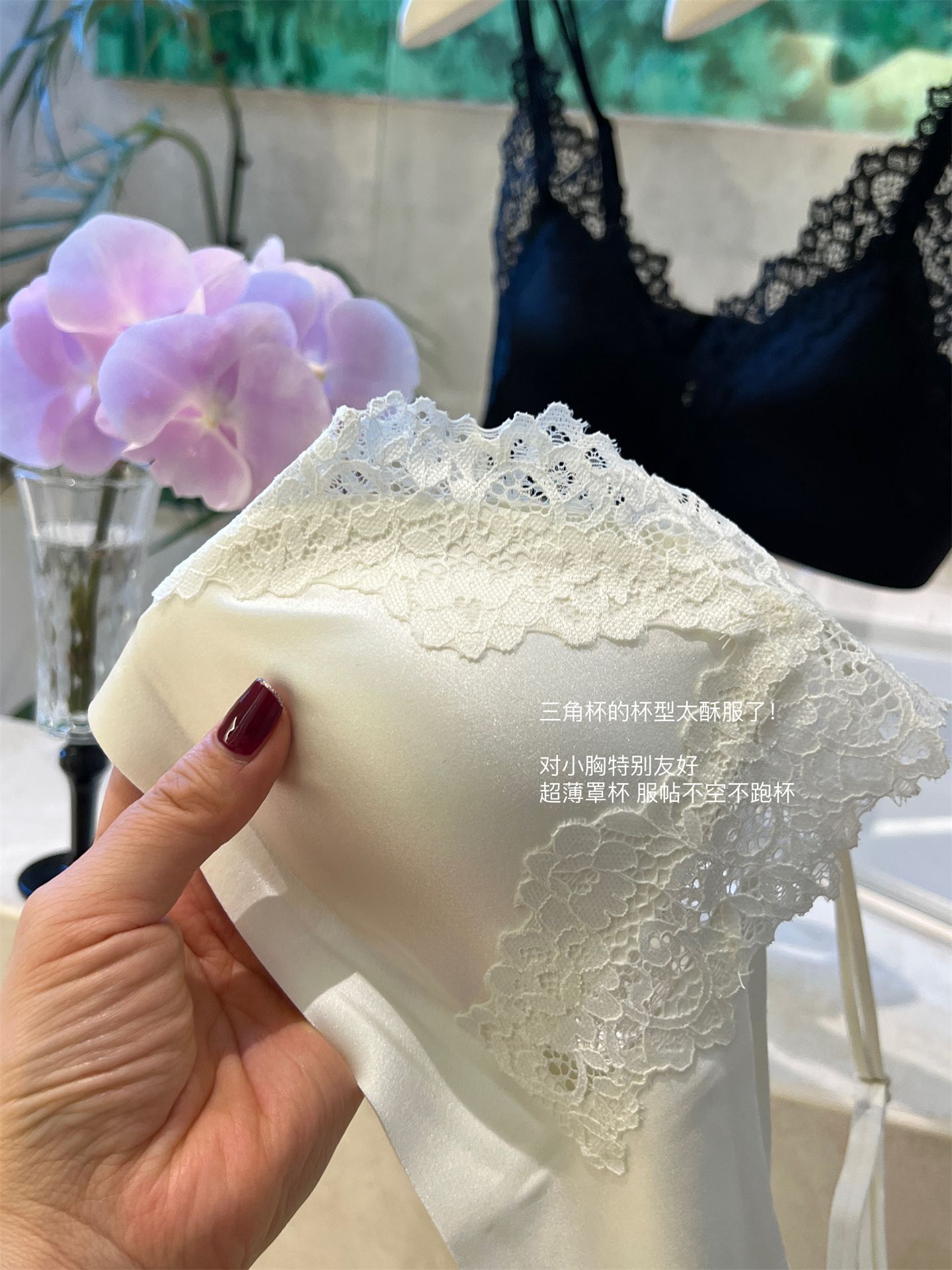 蕾丝法式~高级缎面感三角杯内衣优雅薄款大胸显小 无钢圈舒适轻盈春夏新款