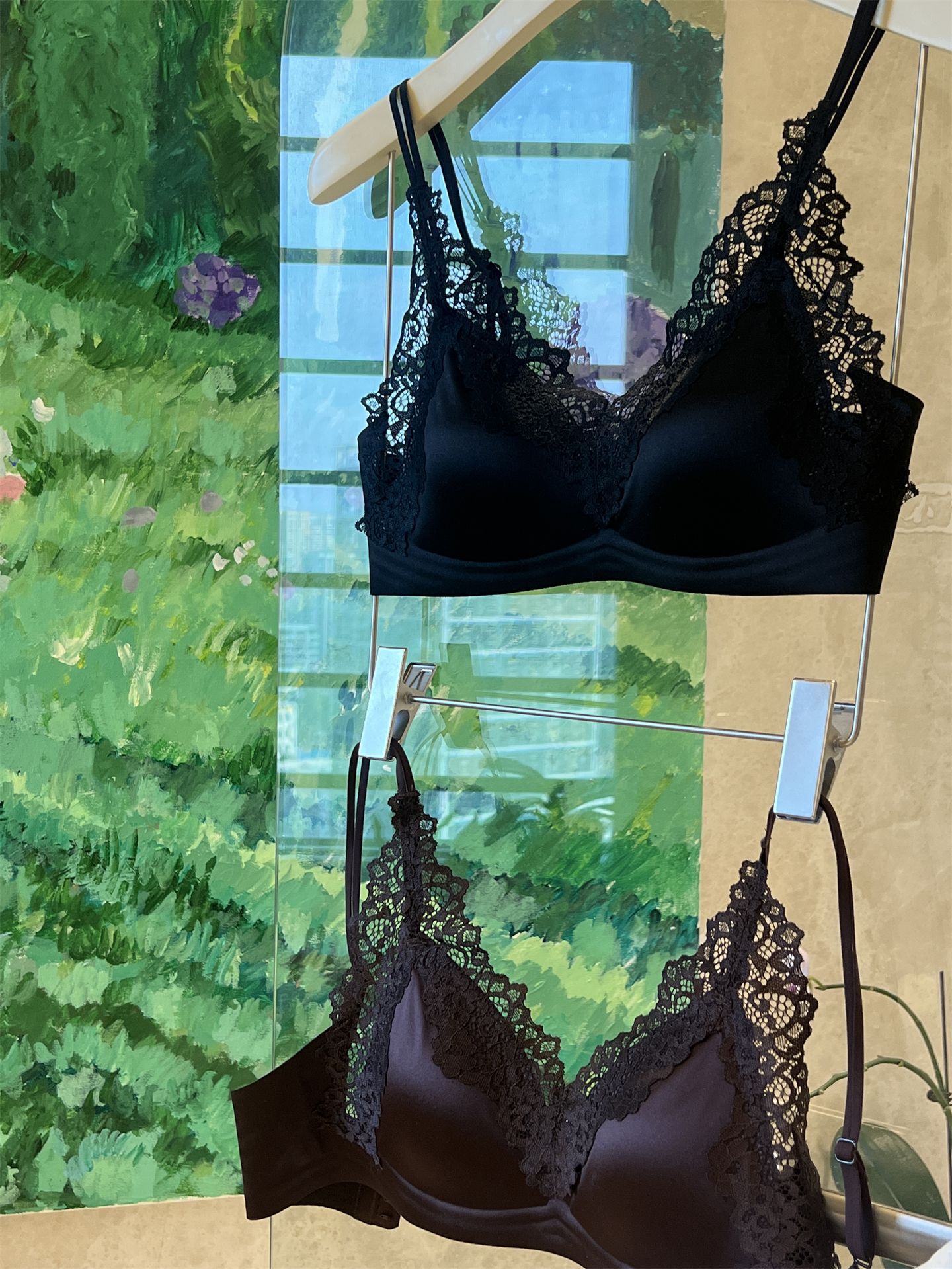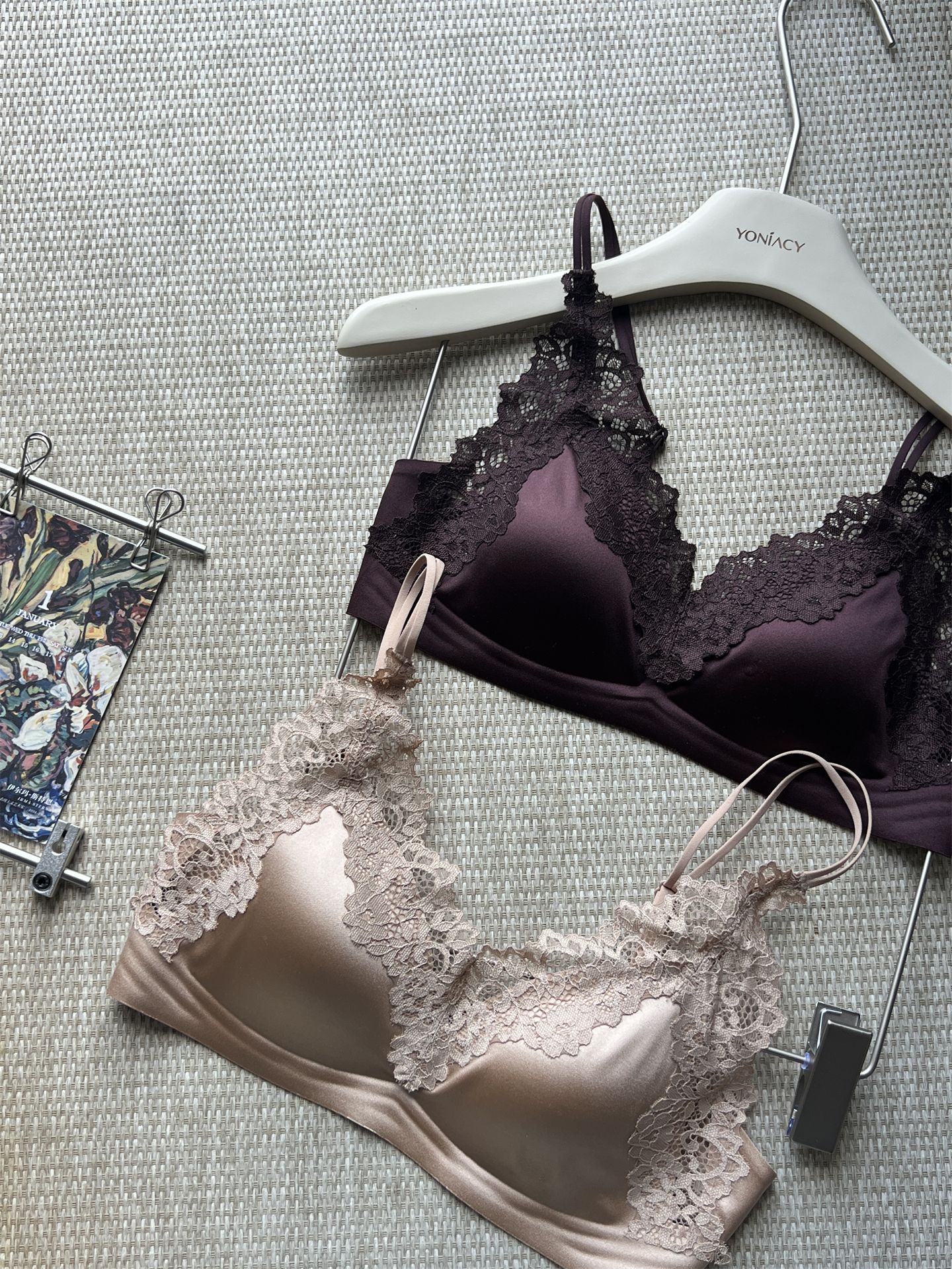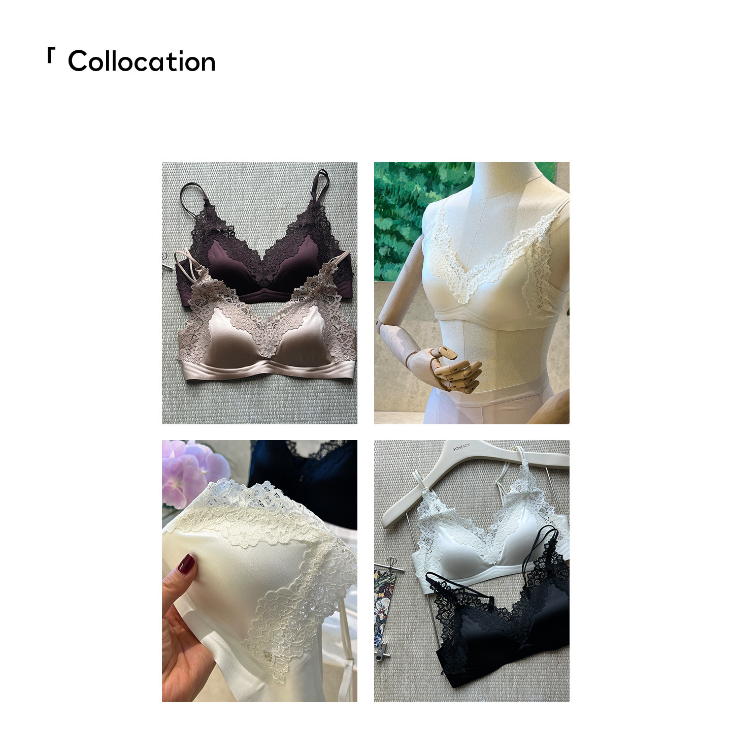 蕾丝法式~高级缎面感三角杯内衣优雅薄款大胸显小 无钢圈舒适轻盈春夏新款