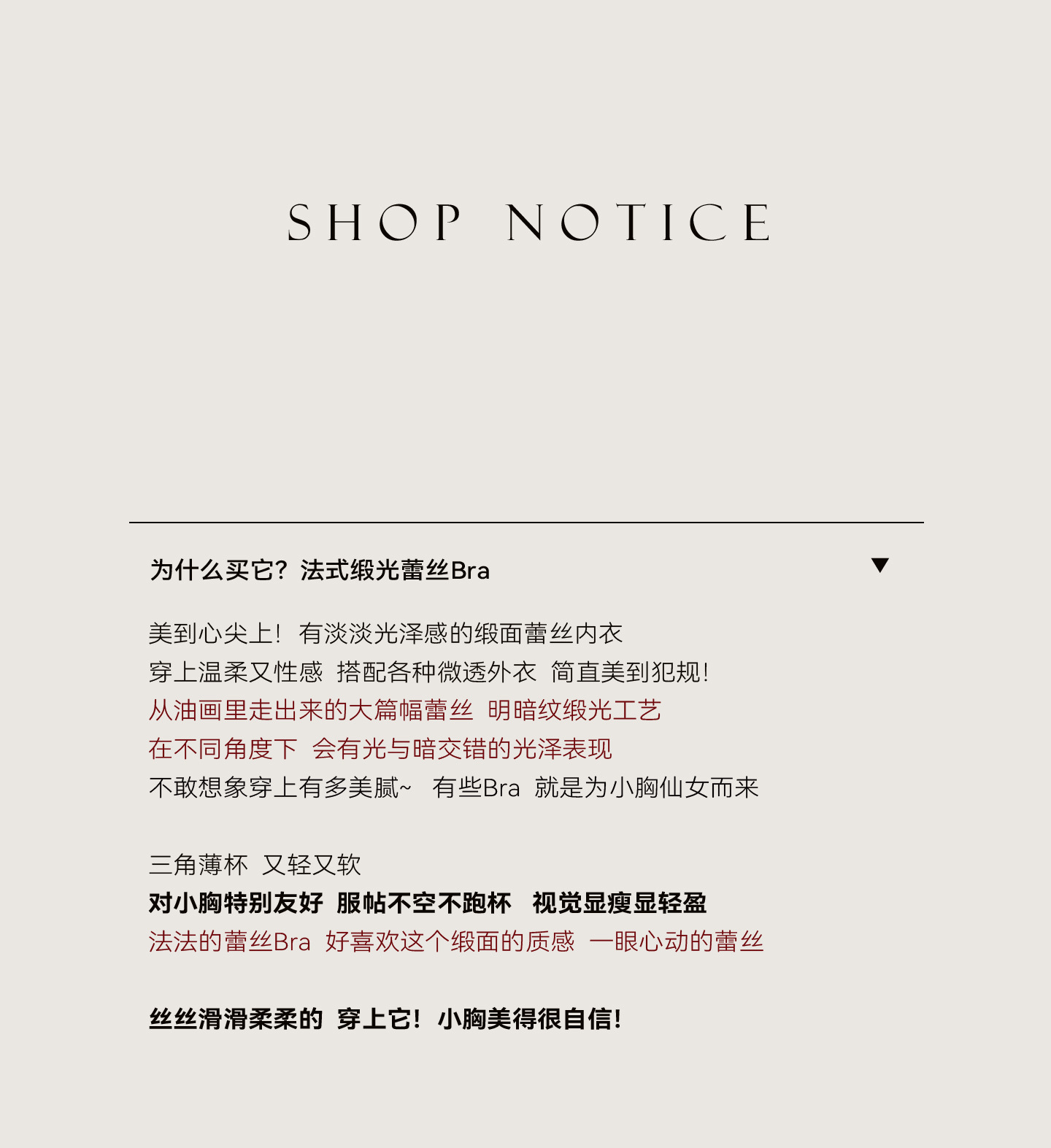 下单请注意:内衣是我们的贴身衣物,考虑到隐私卫生安全健康问题,为每一位客人负责,无质量问题不退不换,感谢理解!