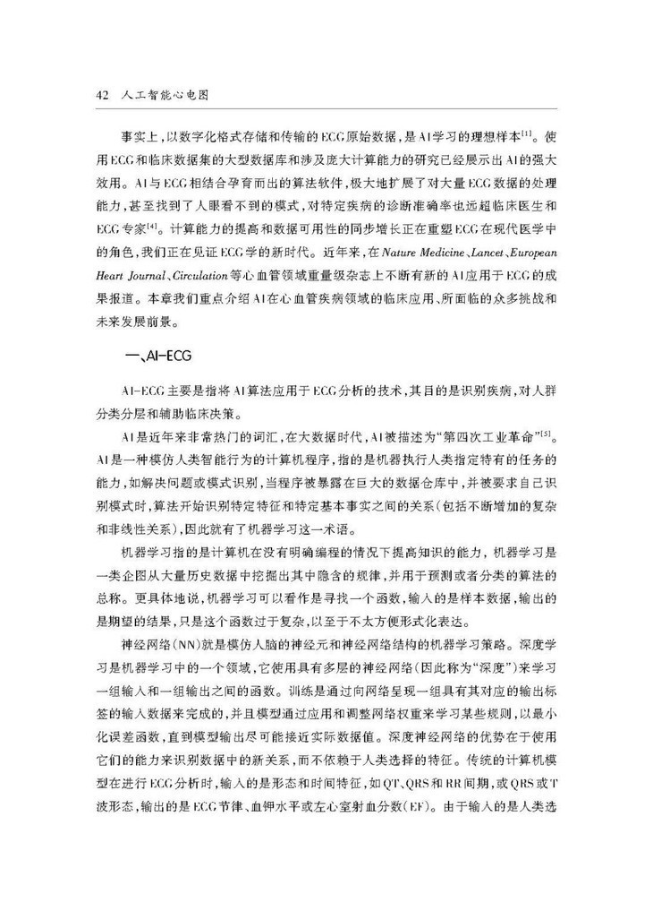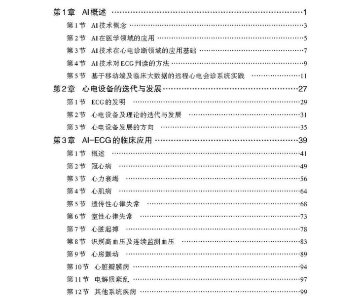展望AI-ECG未来发展前景。本书在保证内容先进、科学、专业且实用的前提下,具有非常好的引领性、前瞻性和实用性。人工智能心电图技术已进入深入研究阶段,必将造福更多患者,节约更多社会资源。