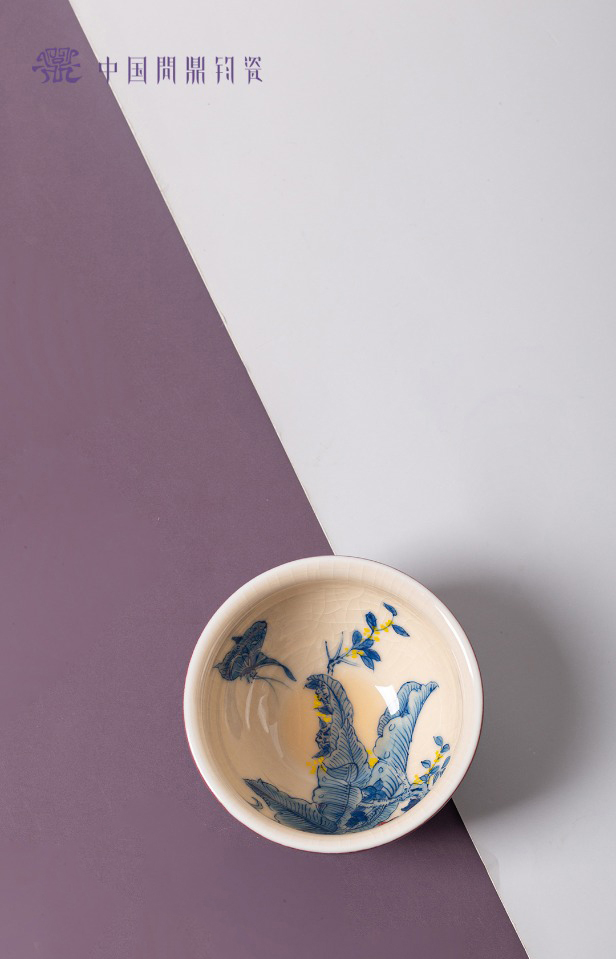 问鼎钧瓷鹅黄青花闲意杯(富贵天骄)(缺货)