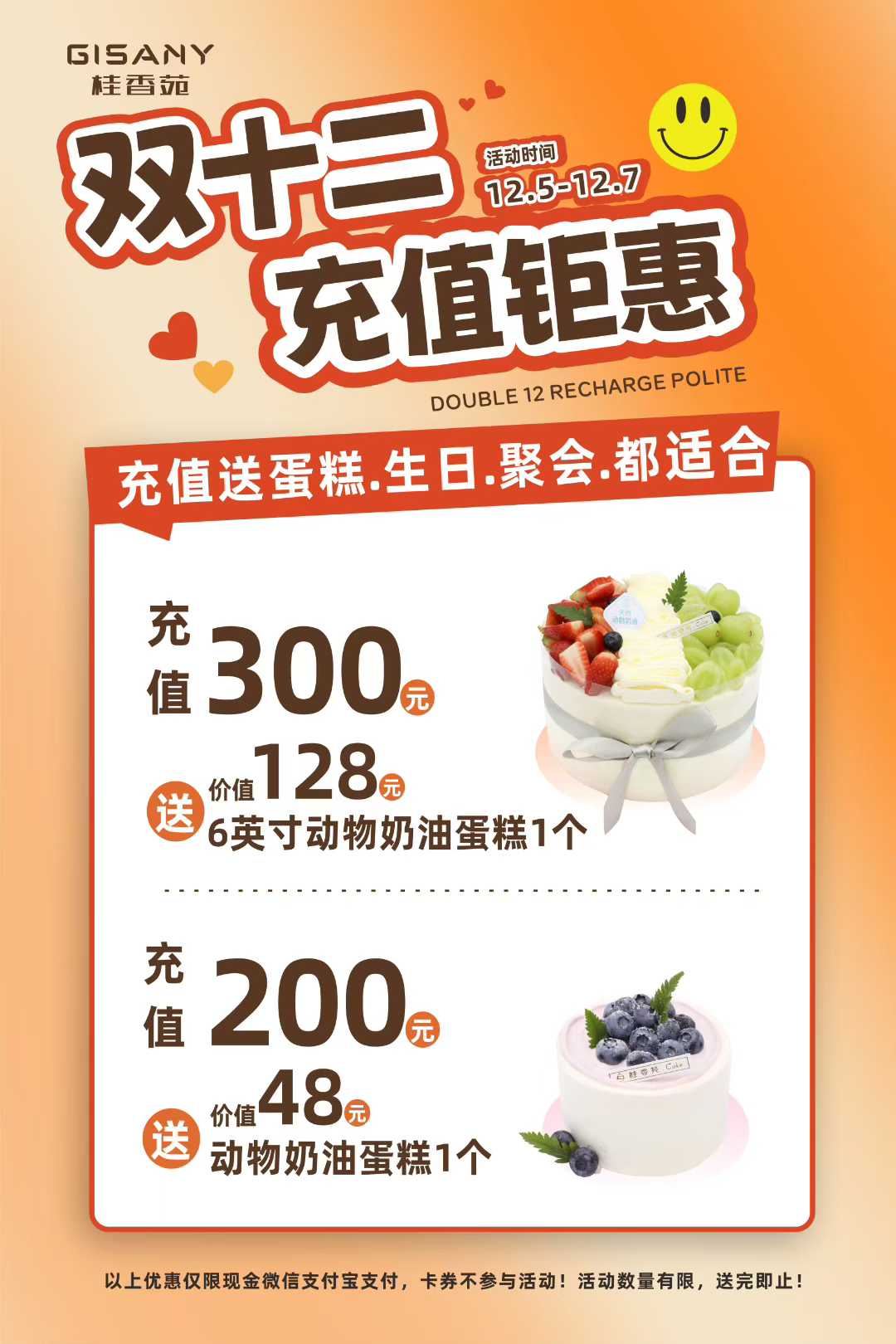 【双12福利】300元如意卡+送6英寸动物奶油蛋糕1个