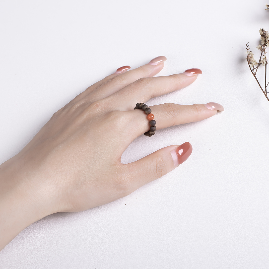 xy0462沉香小戒圈戒指,圈口约14~17,可报圈口穿搭,沉香入门体验,天然沉香,原色原味,香味自然清甜。南红、碧玉、珍珠三款,各有特色,温柔大方,戴一枚沉香戒圈,别有个性魅力哦。