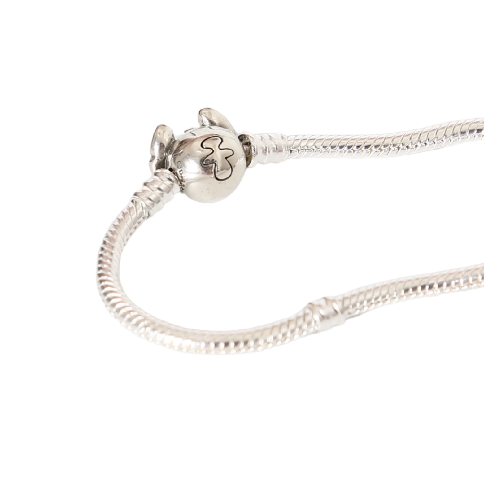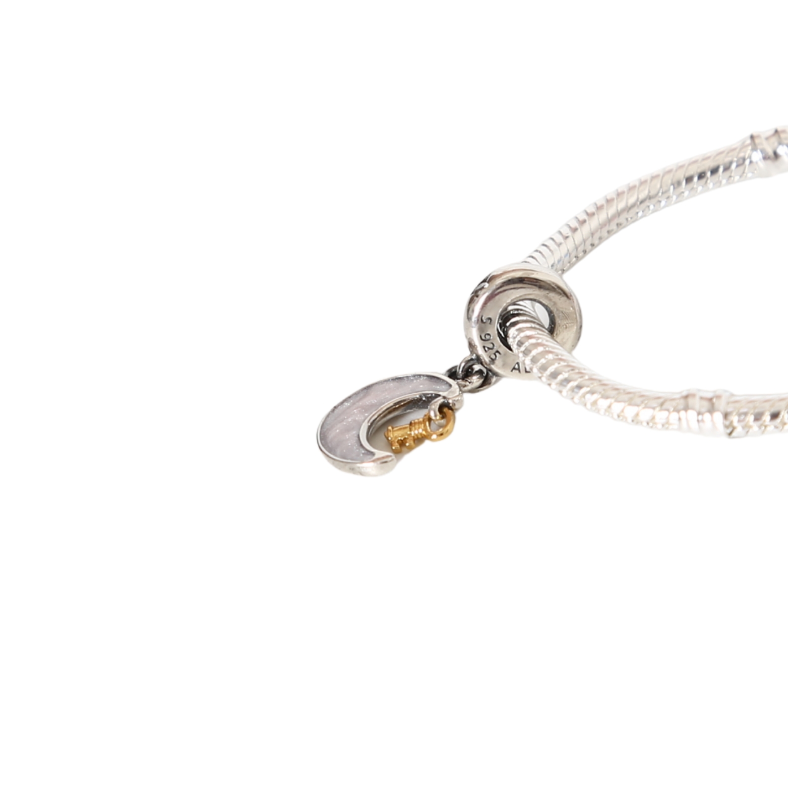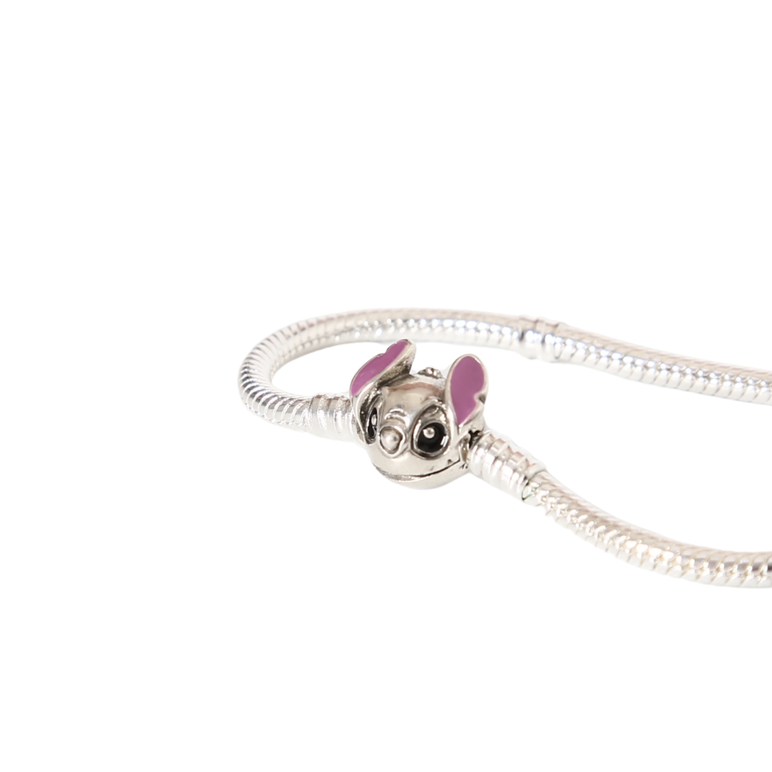 这串潘多拉 ×《星际宝贝》联名手链,是把 “童年的甜” 系在腕间的魔法。银白蛇骨链衬得肤白,蓝身大耳的史迪奇、粉糯软萌的安琪,用立体珐琅捏出动画里的鲜活神态 —— 连史迪奇圆溜溜的黑眼睛、安琪轻晃的耳朵都带着 “搞怪又温柔” 的灵气,坠着的星月吊饰更像藏了夏威夷晚风的浪漫。打磨的质感,让每颗串珠都带着细腻的光泽,既不会过分甜腻,又能在抬手间露出 “懂你的小默契”。不管是送给同爱《星际宝贝》的闺蜜,还是犒劳自己一份 “永葆天真” 的礼物,它都是 “把喜欢戴在身上” 的温柔载体 —— 毕竟 “ohana 就是家人”,而这串手链,是把偏爱和陪伴都串在了一起。