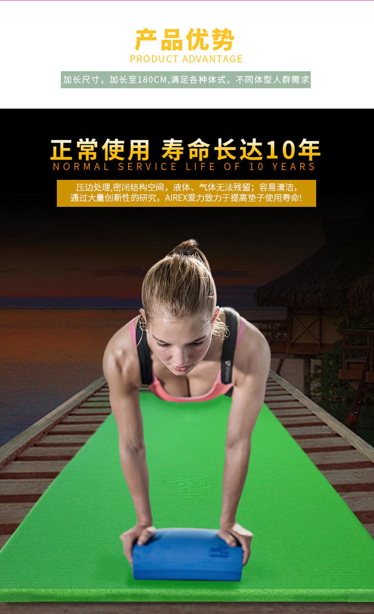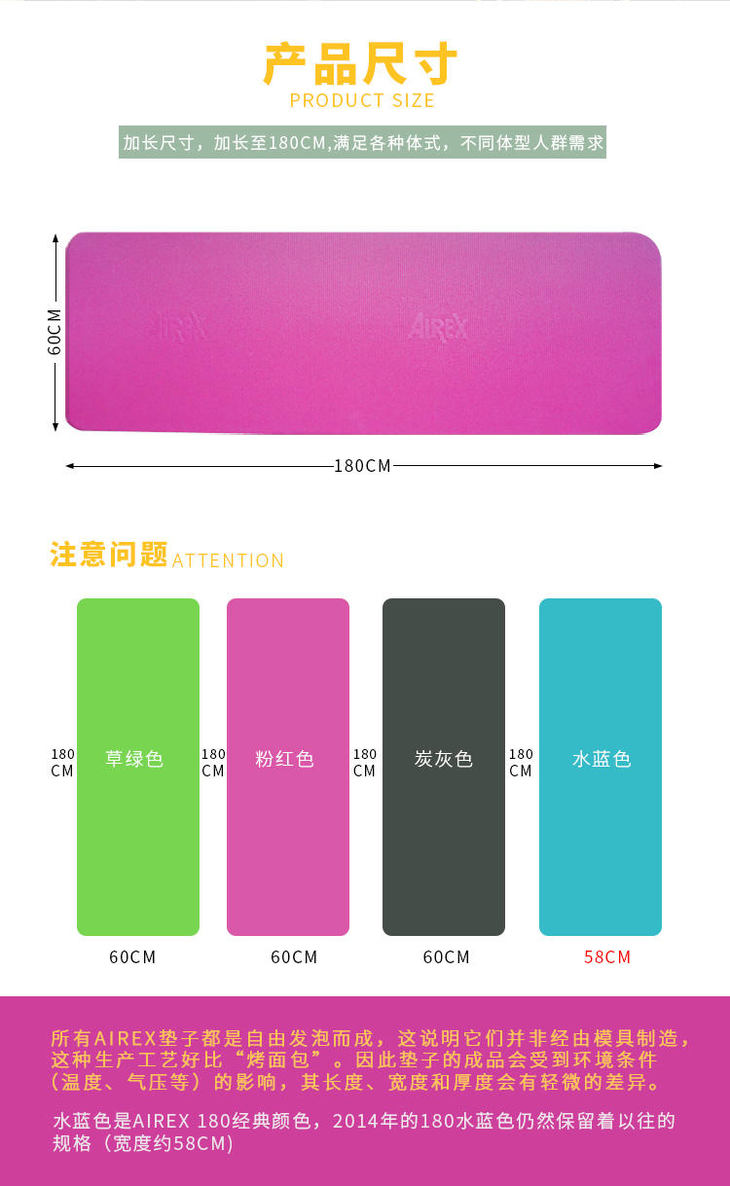 Airex瑞士爱力 专业康复训练垫 瑜伽垫(单人*180)