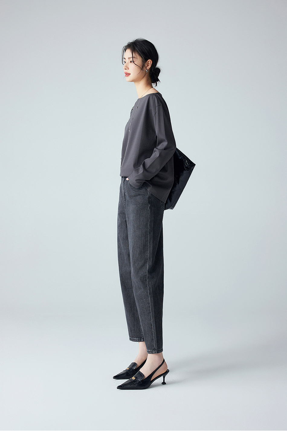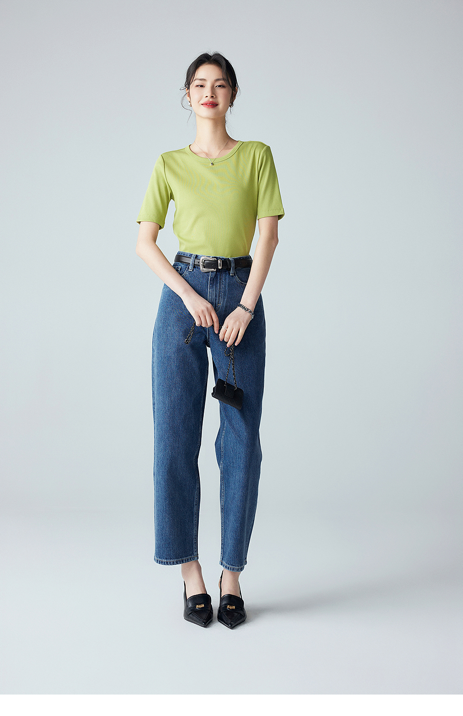 棉仓352619005-香蕉锥形九分哈伦牛仔裤全棉牛仔