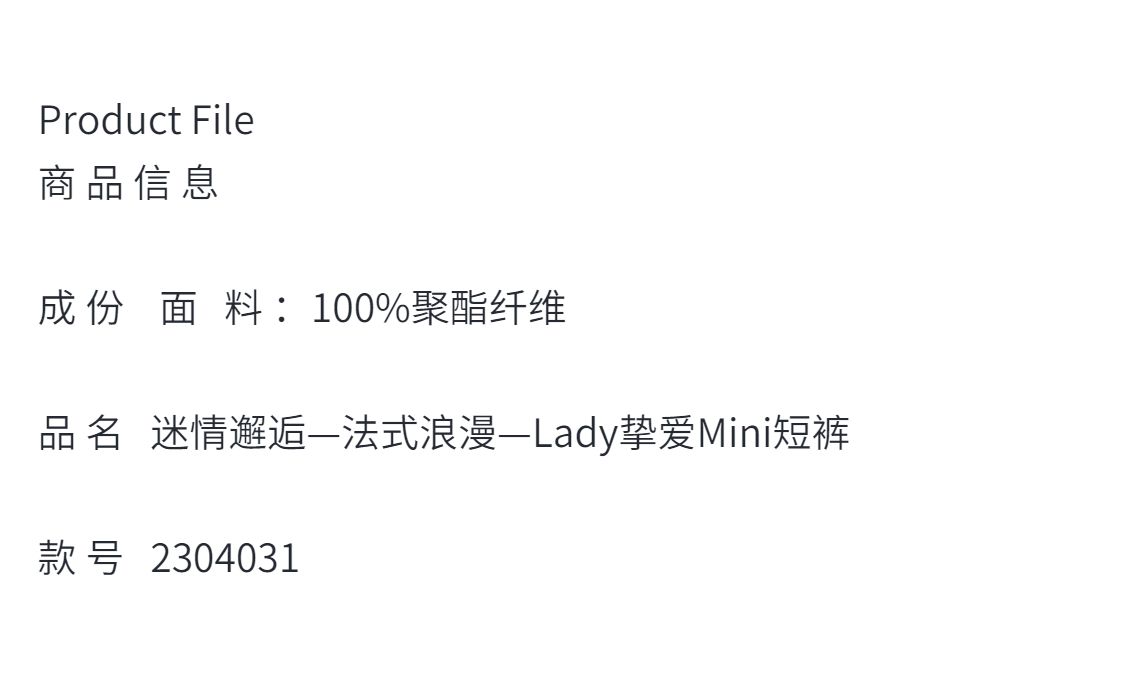 定制—迷情邂逅—法式浪漫—Lady挚爱系带缎面运动高腰短裤2304031