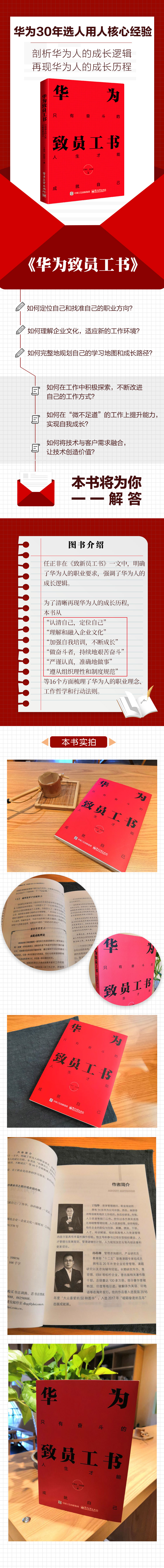 任正非在《致新员工书》一文中,明确了华为人的职业要求,强调了华为人的成长逻辑。为了清晰再现华为人的成长历程,本书从“认清自己,定位自己”“理解和融入企业文化”“加强自我培训,不断成长”等16 个方面梳理了华为人的职业理念、工作哲学和行动法则。