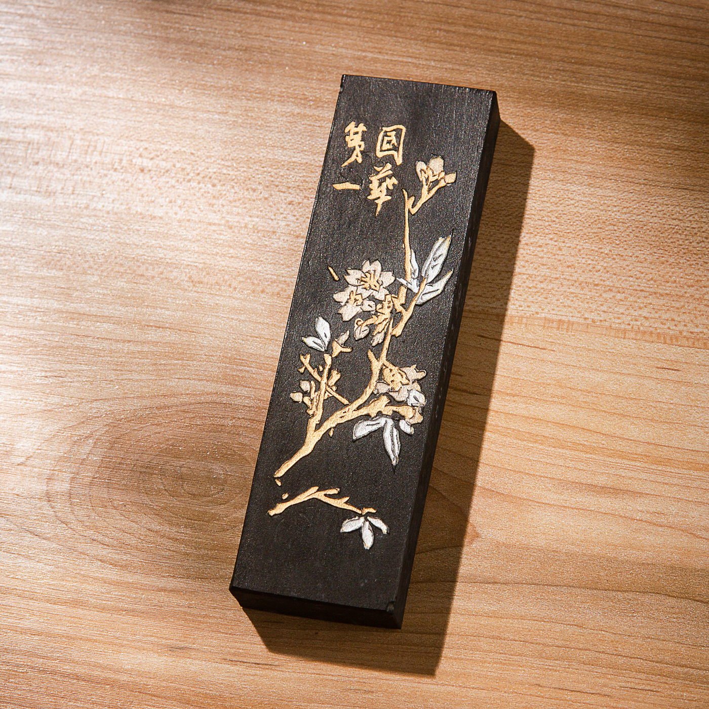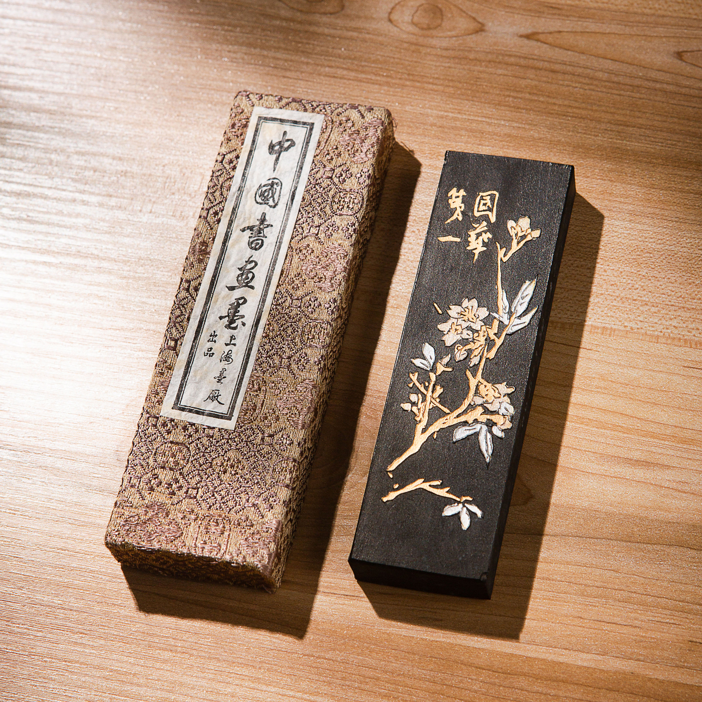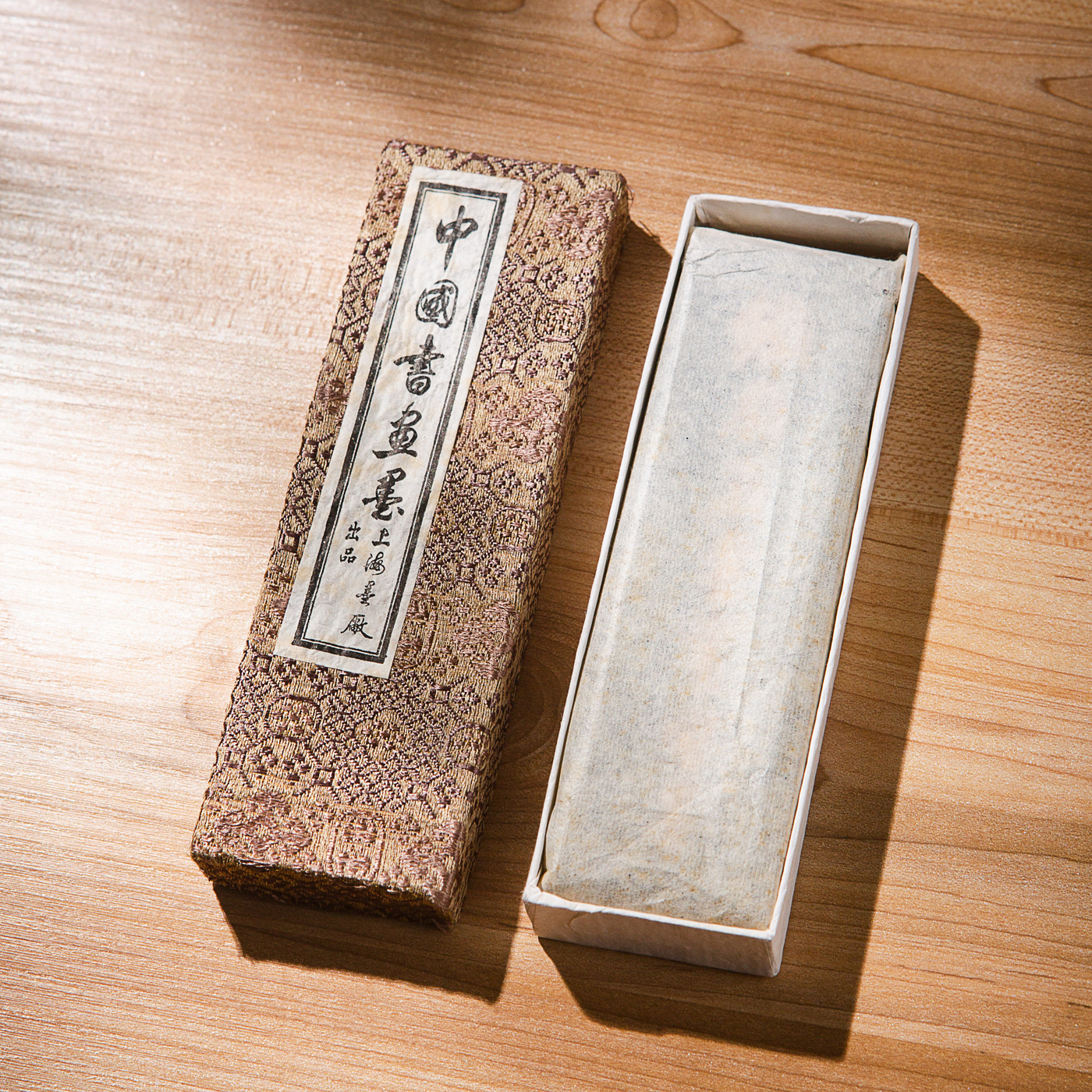 1988年上海墨厂生产铁斋翁书画宝墨,重二两,油烟101材质,用料精细,雕版精美,墨色油亮,胶性轻顺,是难得之佳品。