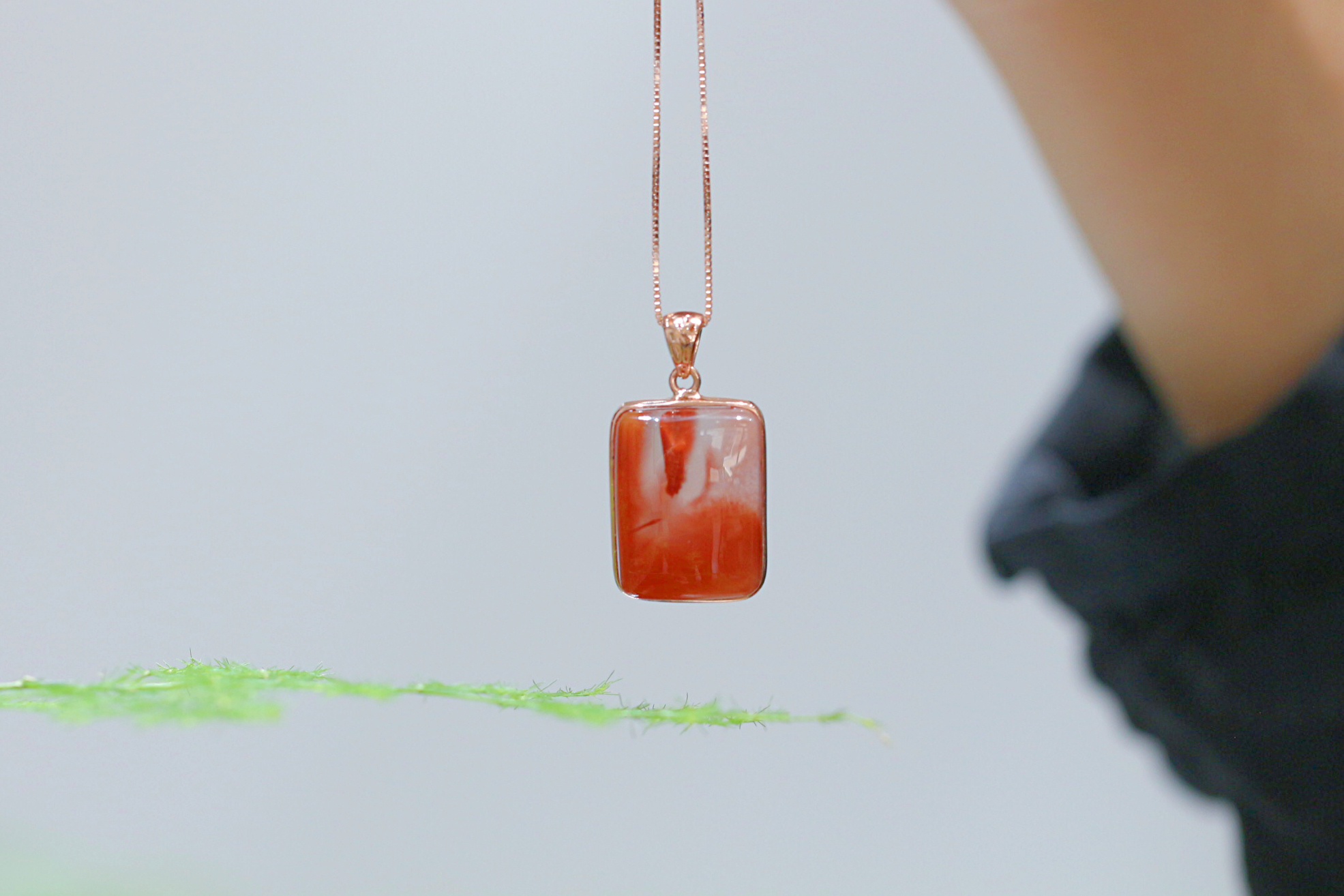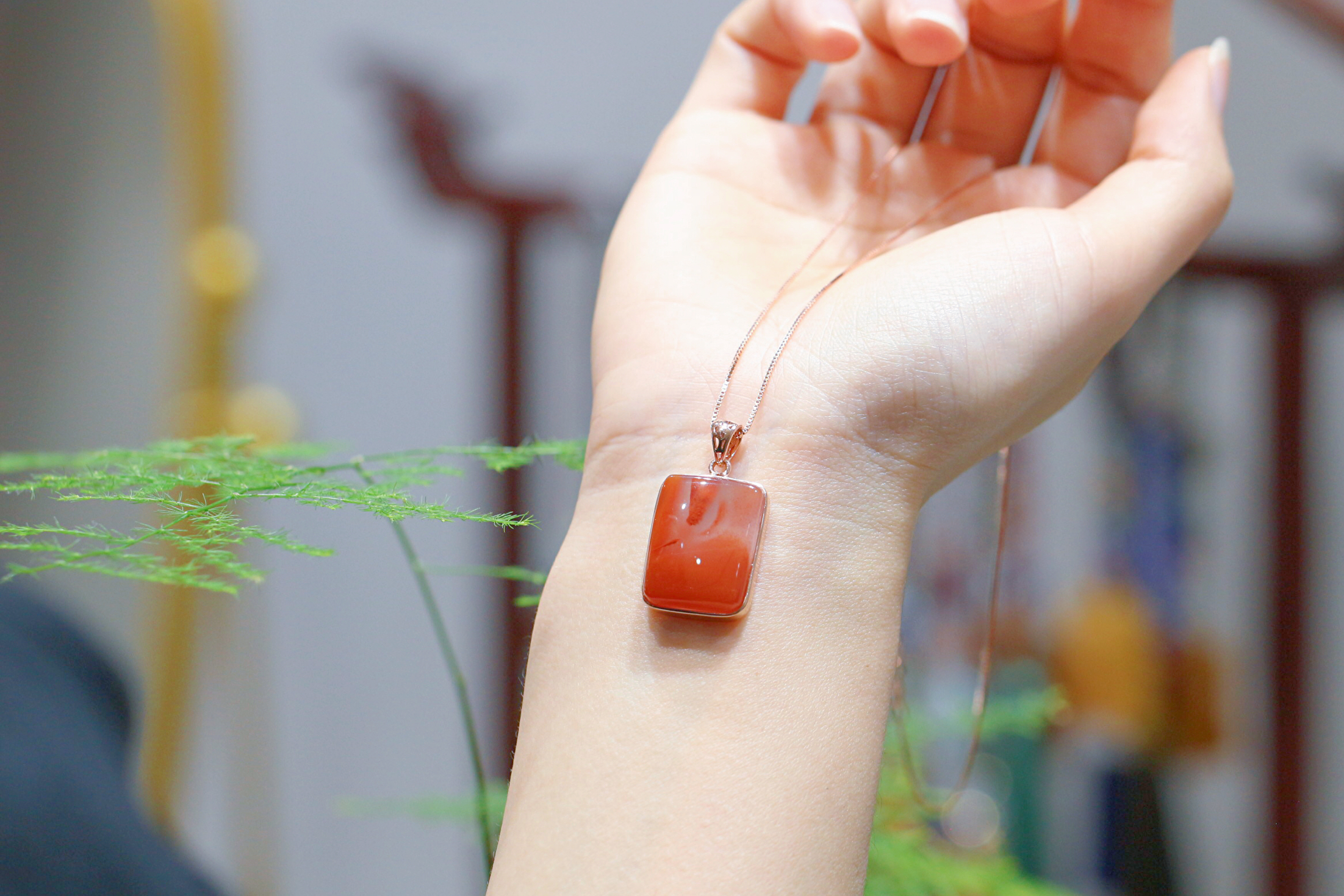 南红冰飘吊坠,冰透水润,晶莹剔透,色泽鲜艳红润,靓丽吸睛,925银镶,精致好看,当锁骨链美美哒。
