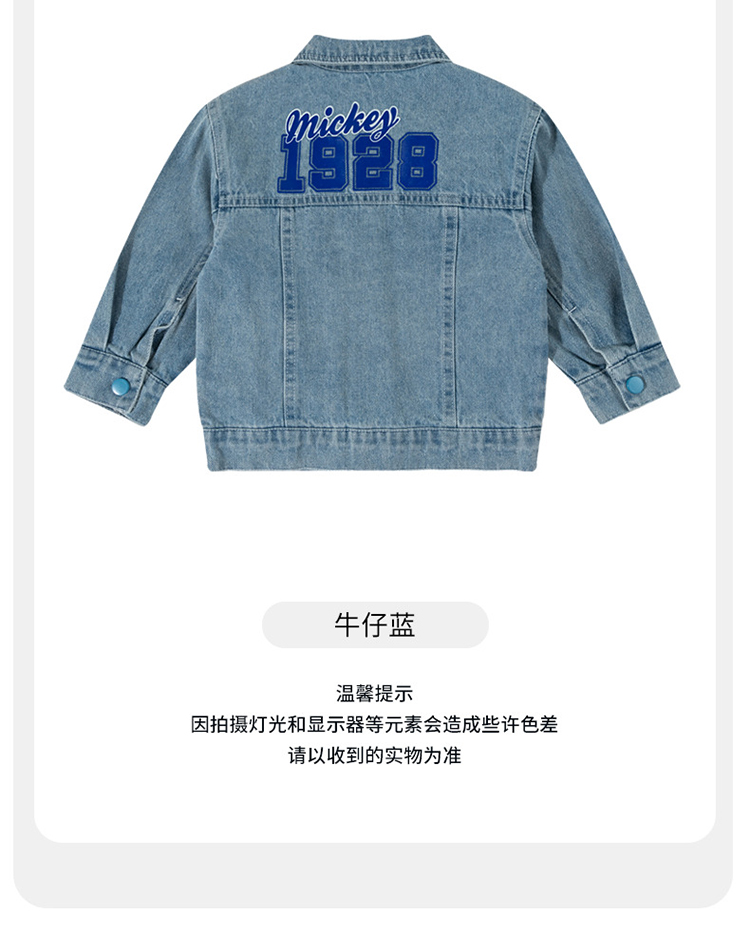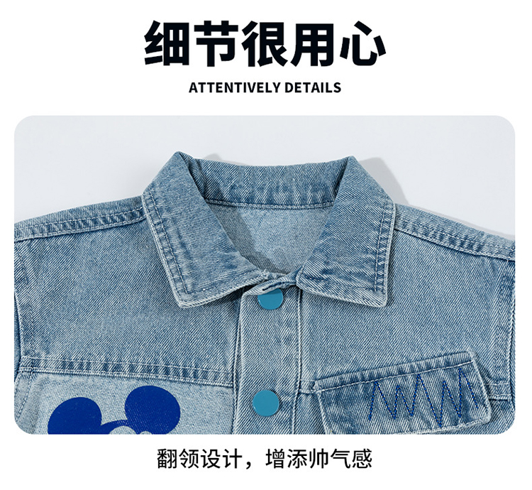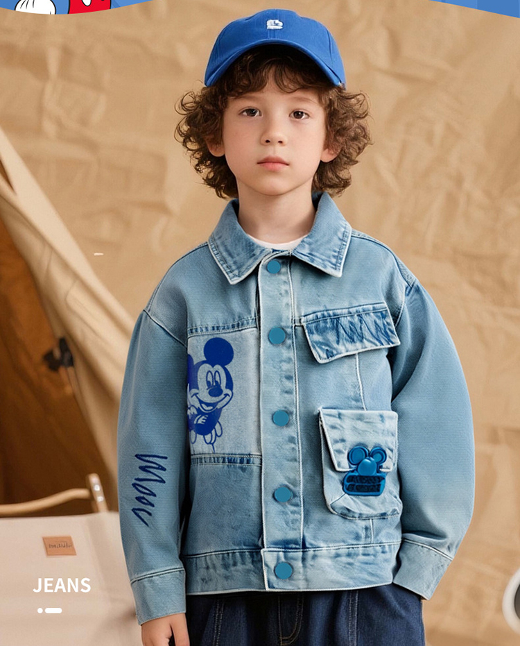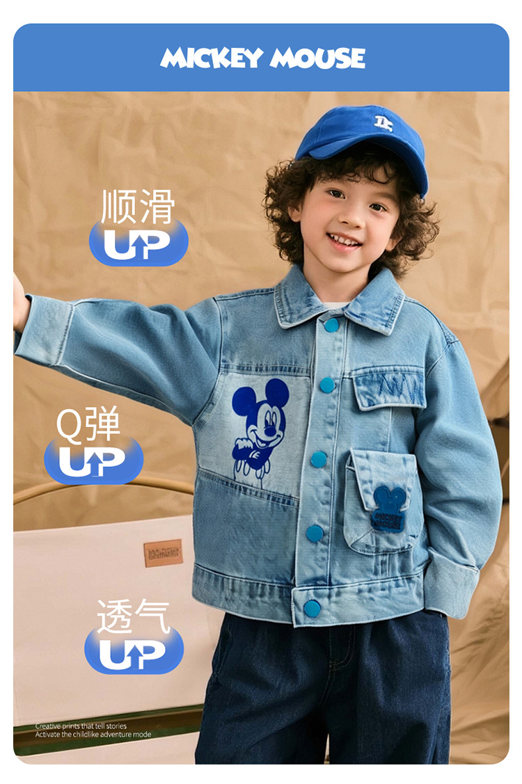 迪士尼2025春秋季新款男童柔软休闲牛仔外套中大童潮流酷帅牛仔夹克XD3DS046