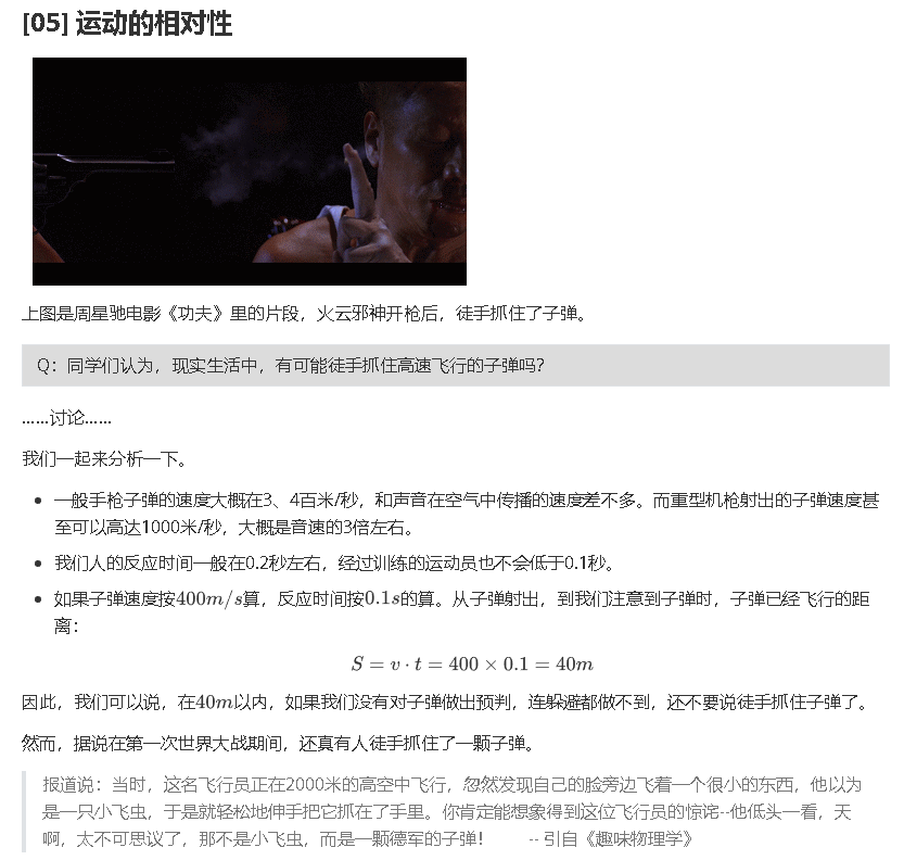 例1:通过“徒手抓子弹”探究“运动的相对性”